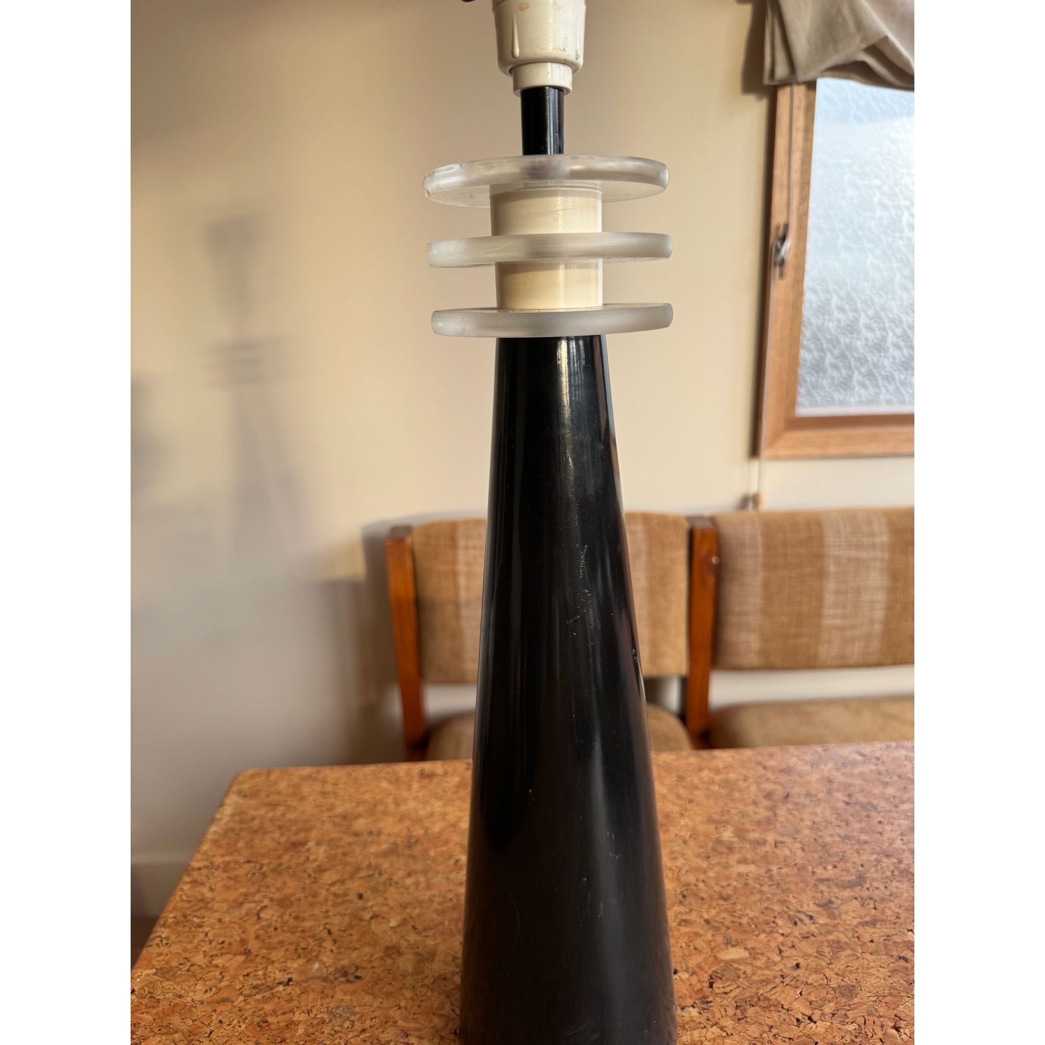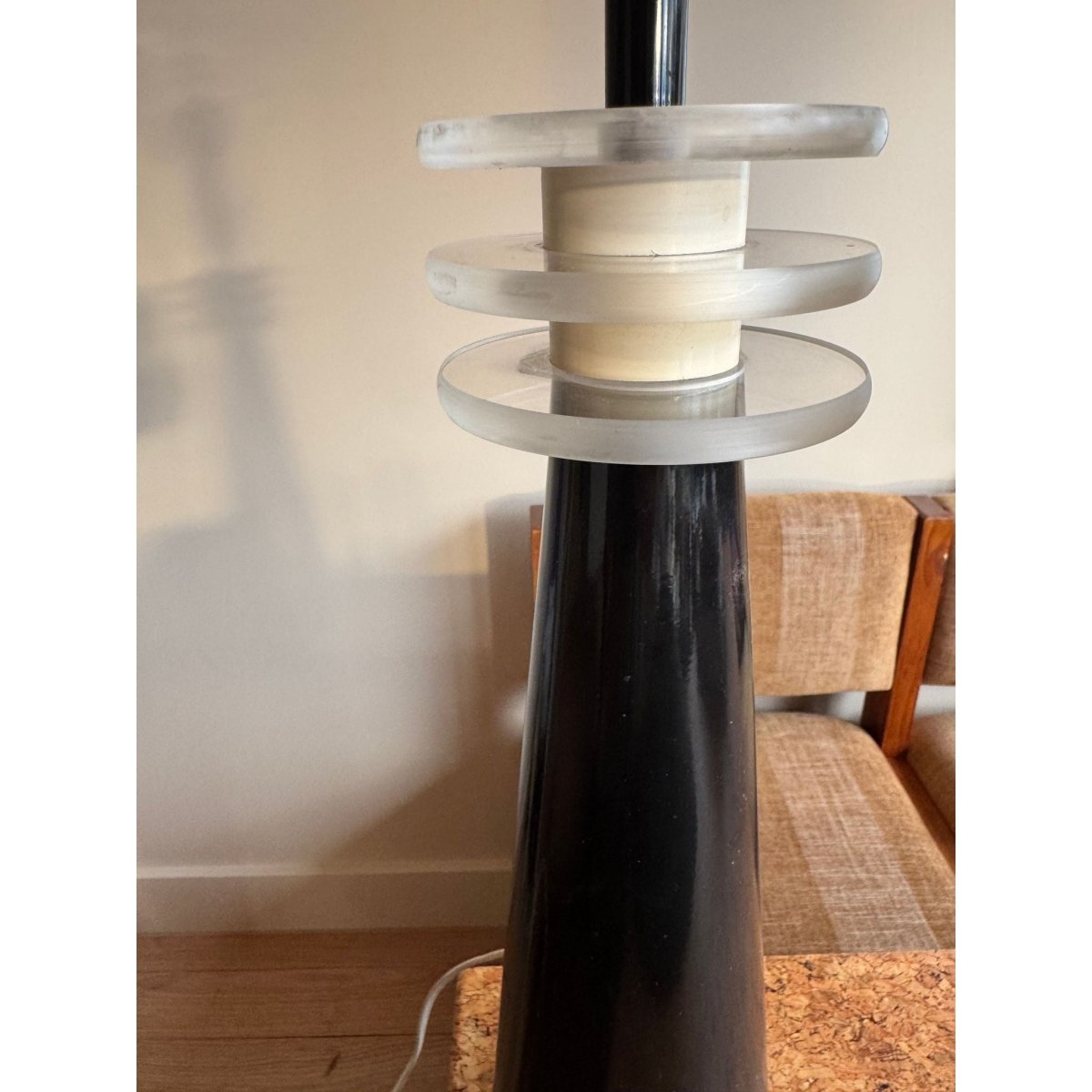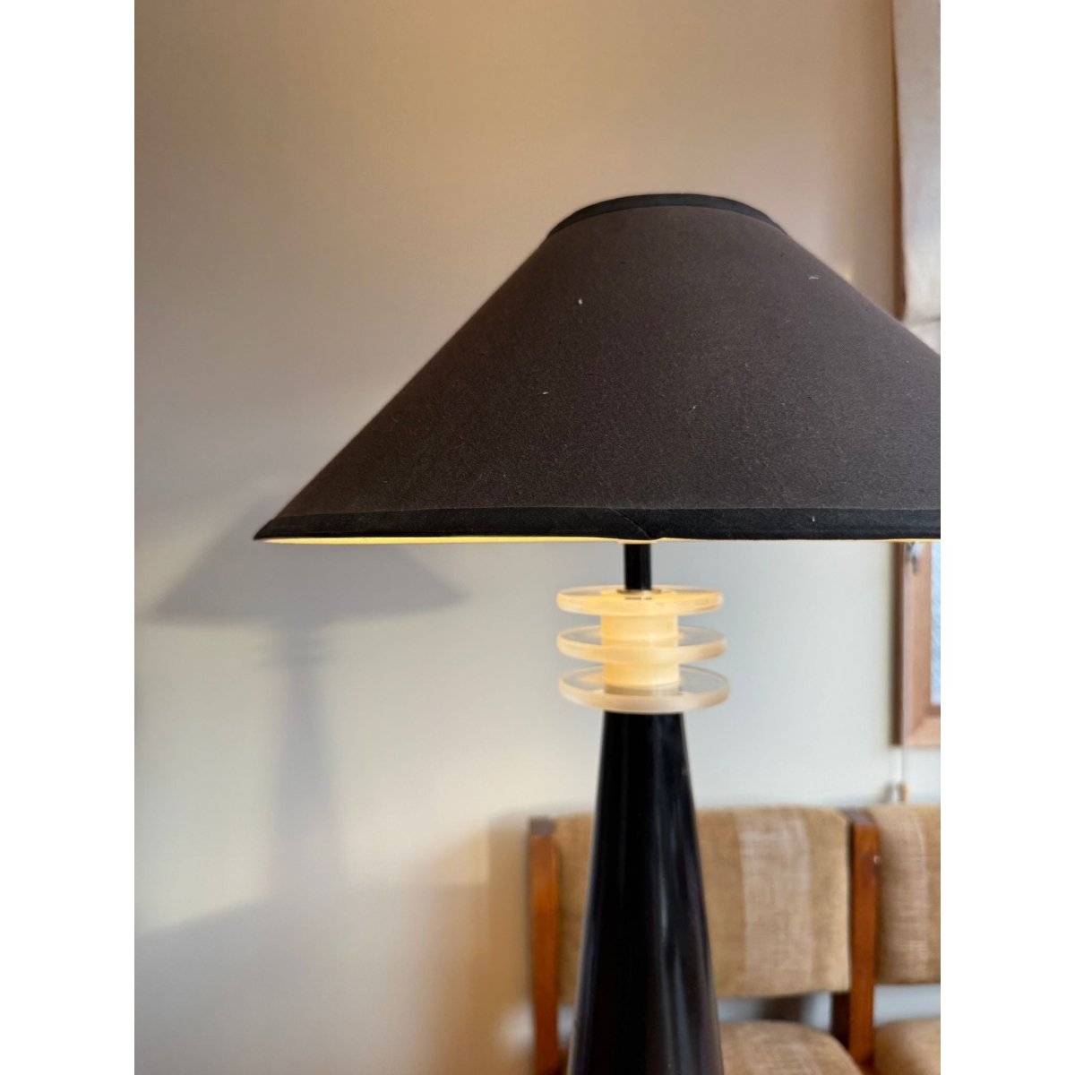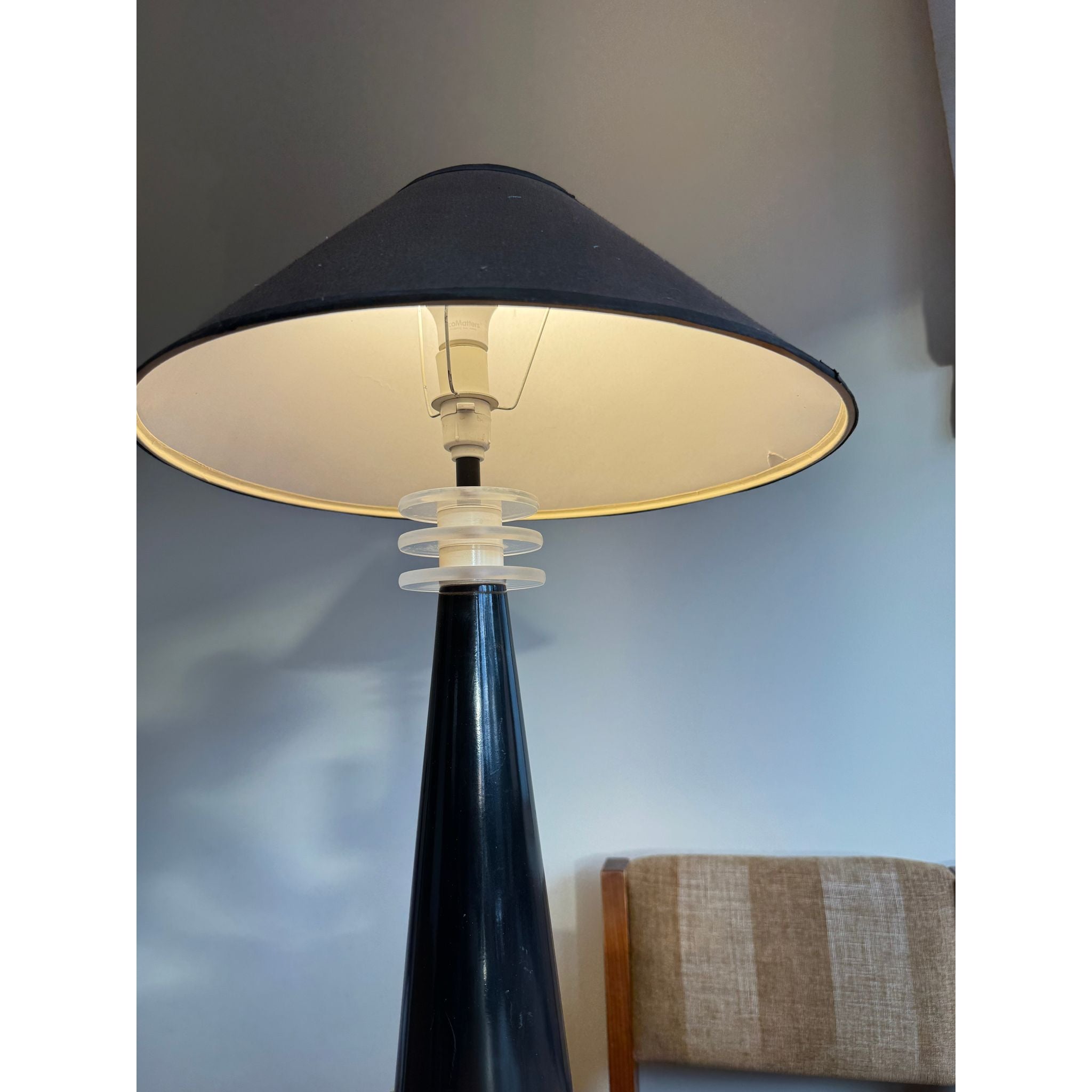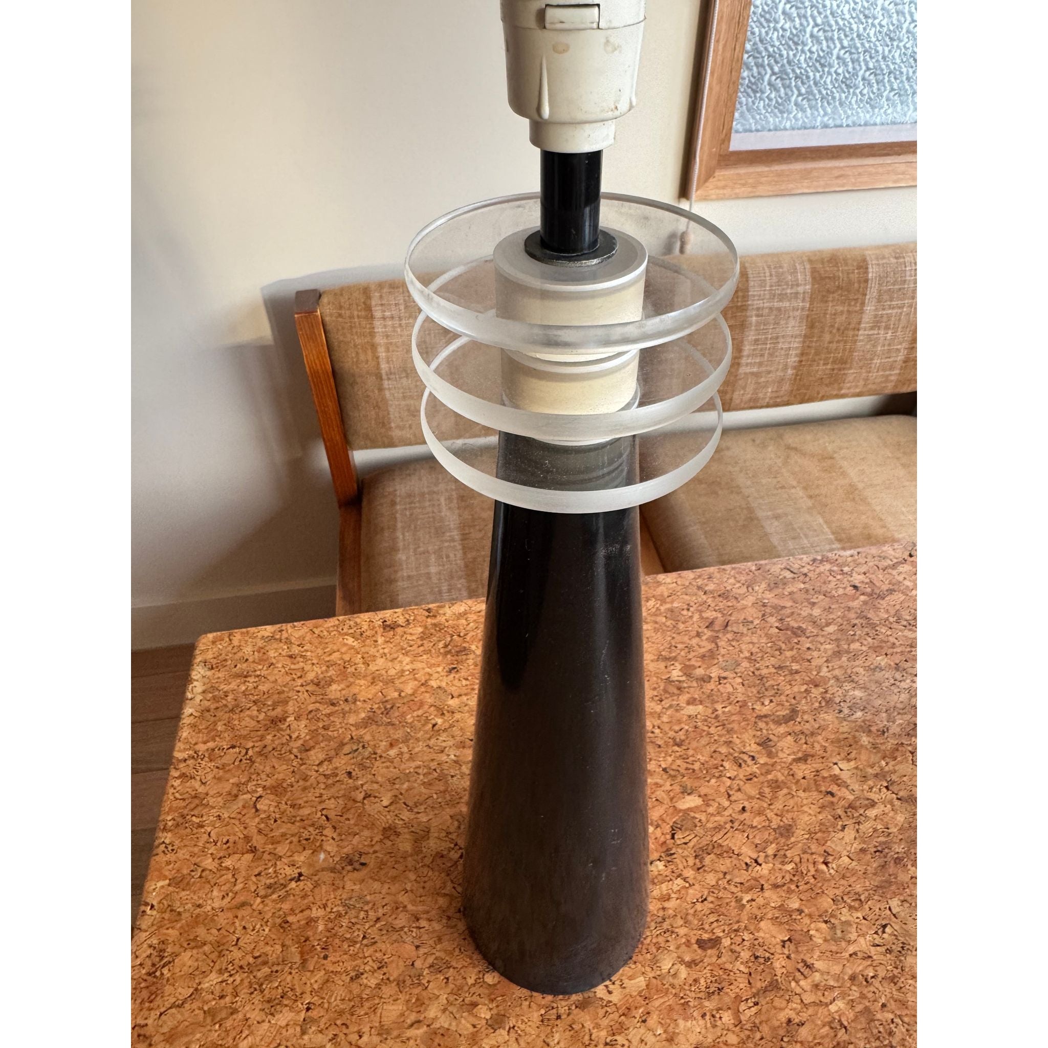 Gorgeous vintage gloss black ceramic lamp with lucite detail.