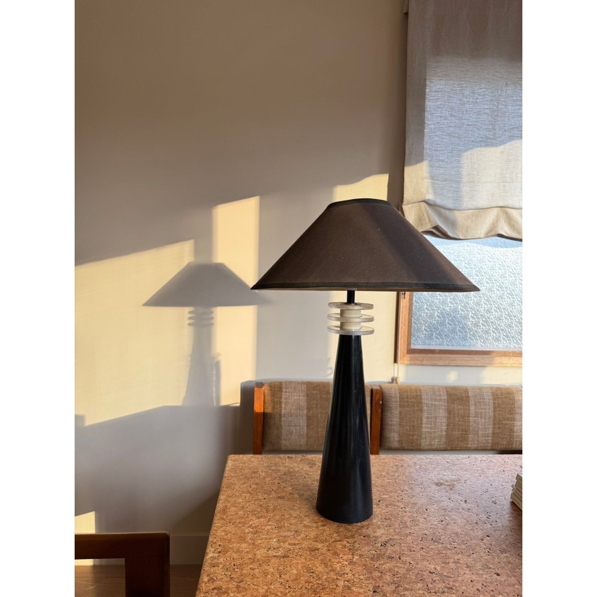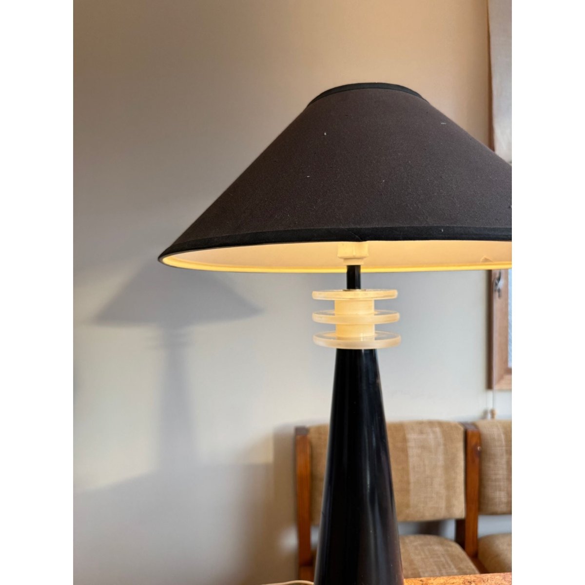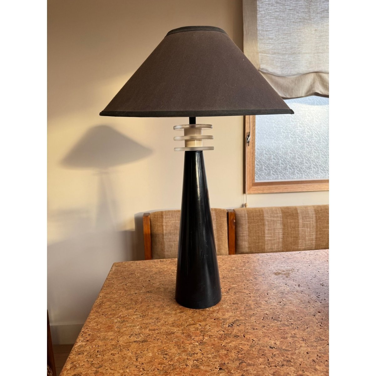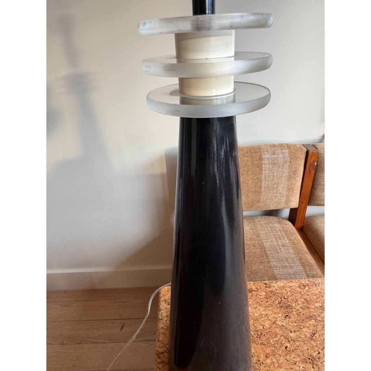 Gorgeous vintage gloss black ceramic lamp with lucite detail.