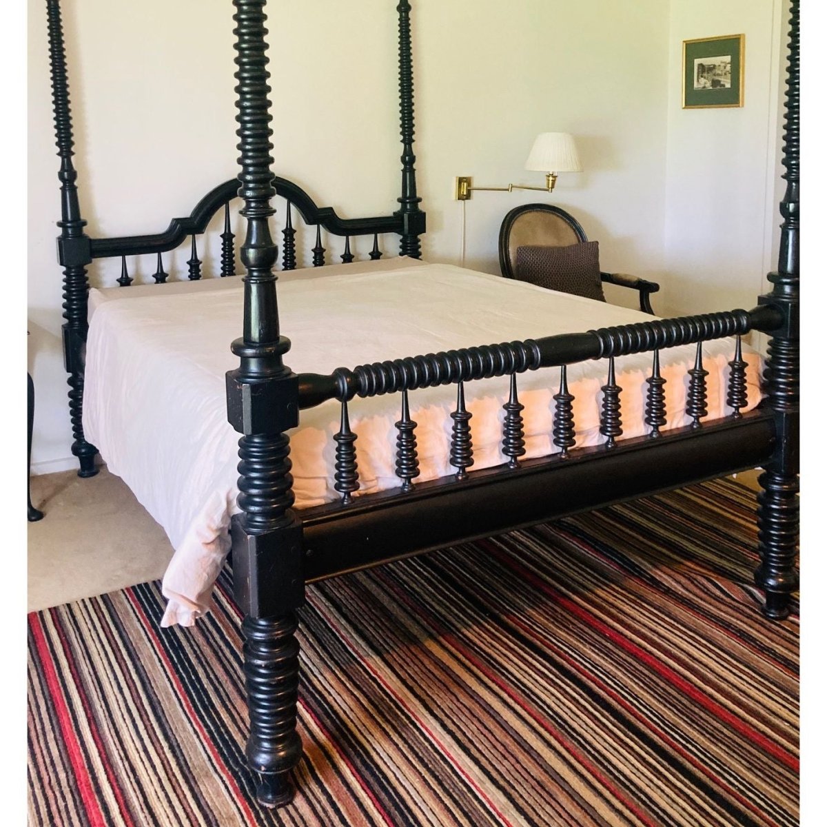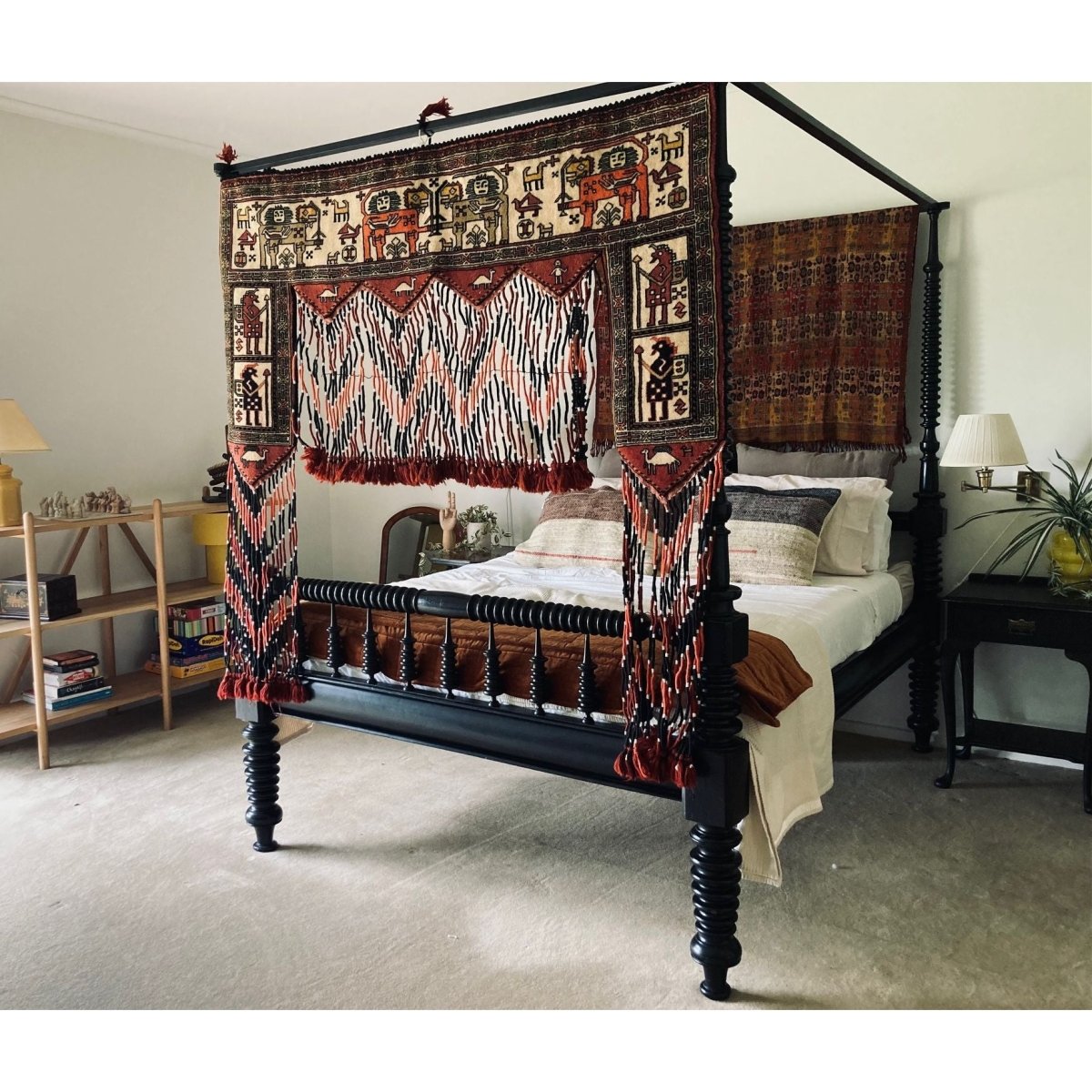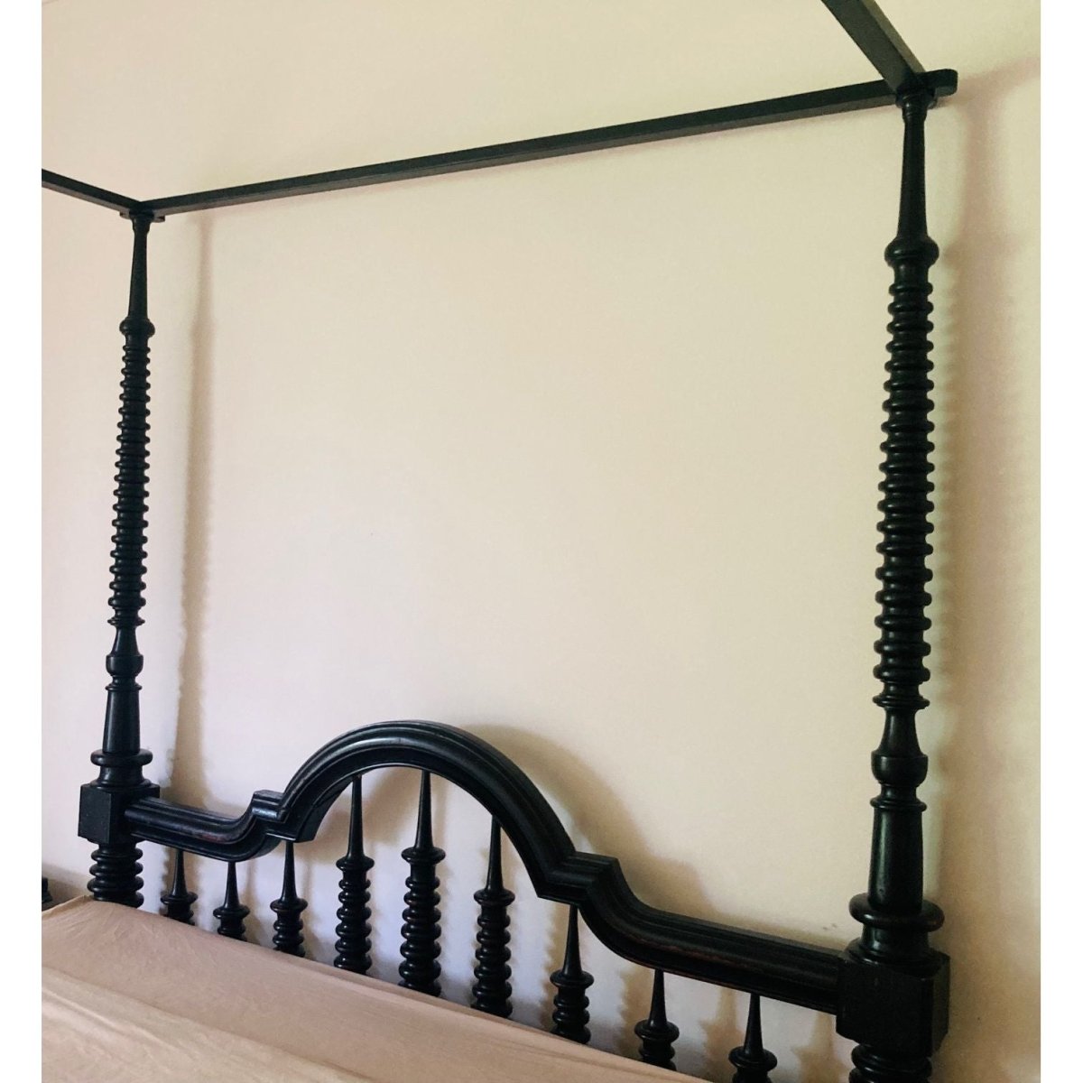Amazing solid ebonised teak 4-poster canopy bed from India or Malaysia c1900 - standard queen size (as new low profile memory foam mattress included). Can be disassembled for transport. Very good condition - some chips to paint/wood consistent with age.