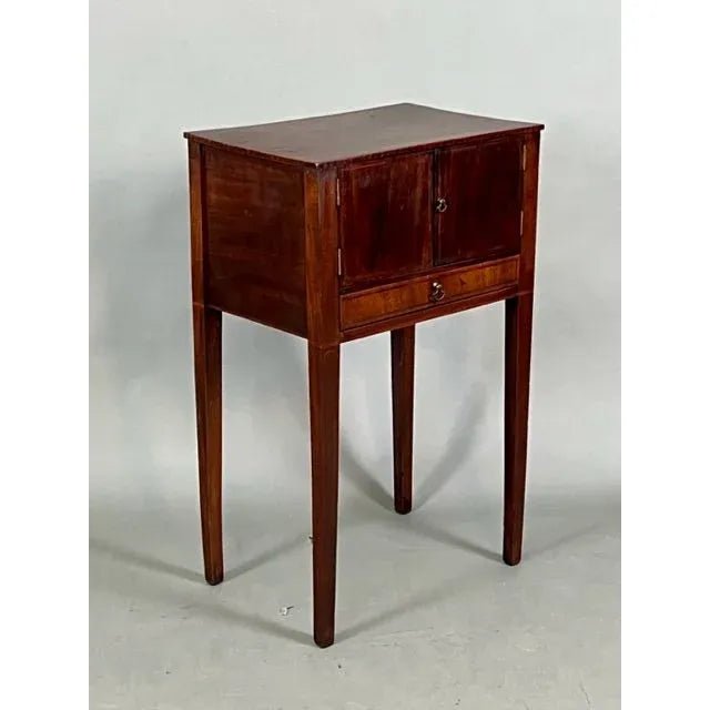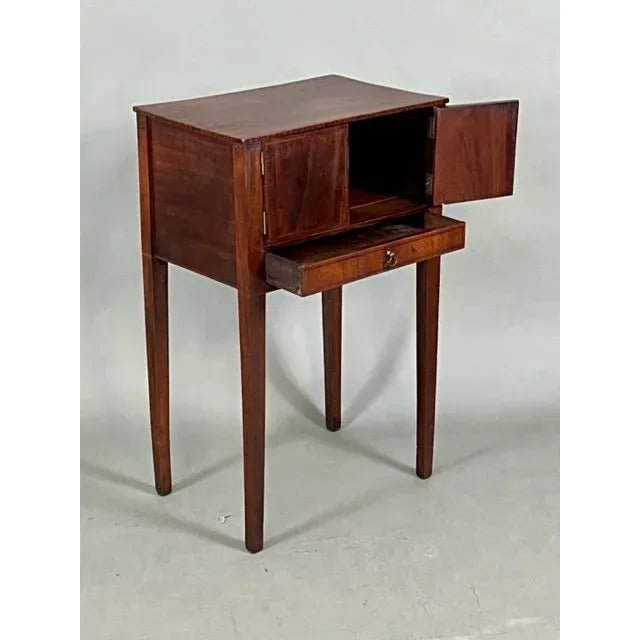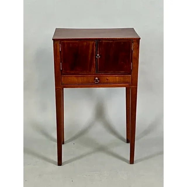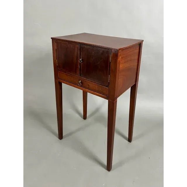 This is a most versatile piece of furniture as technically it is a superior quality example of a genuine antique English George III period circa 1800 Bed Side Cabinet however it can be used for other purposes any where it will fit either as a small Side Cabinet or between two chairs as an occasional table.