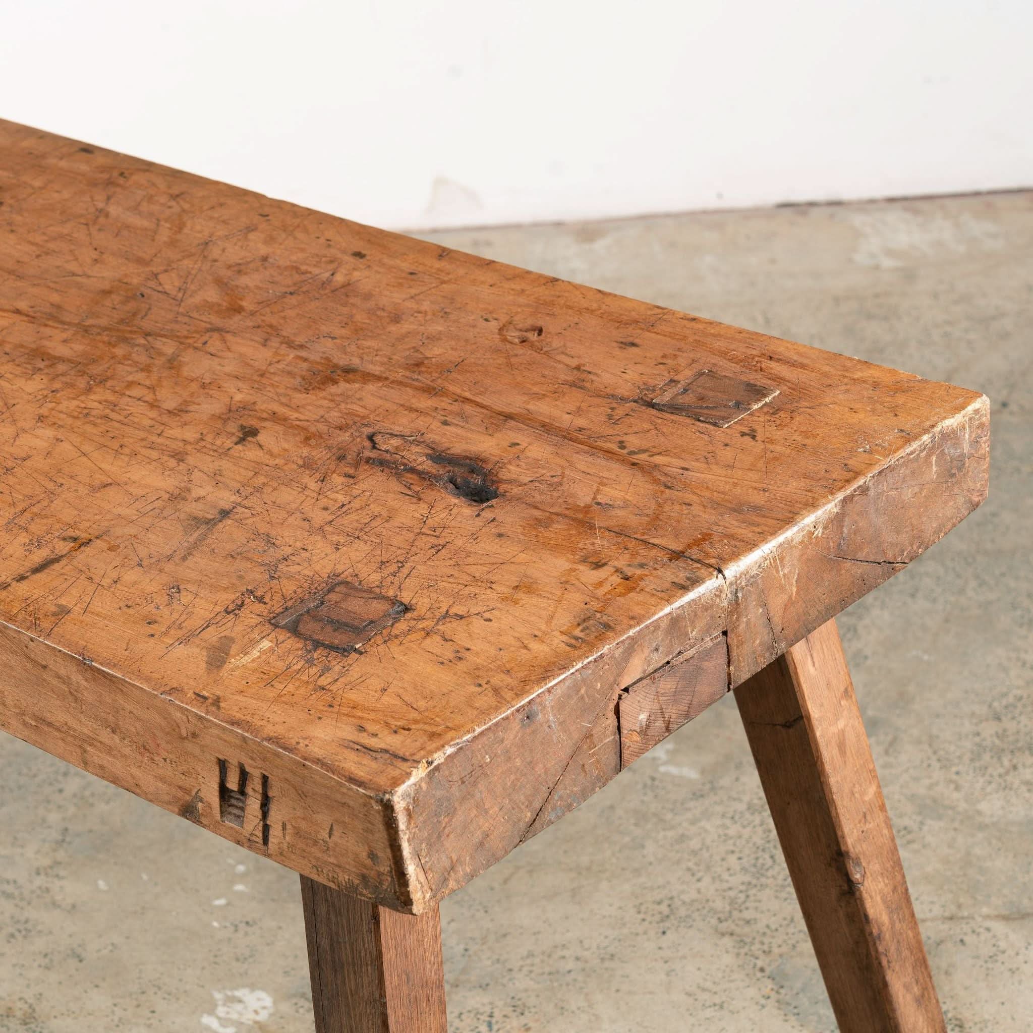 A Primitive Butchers Block Side Table/Bench