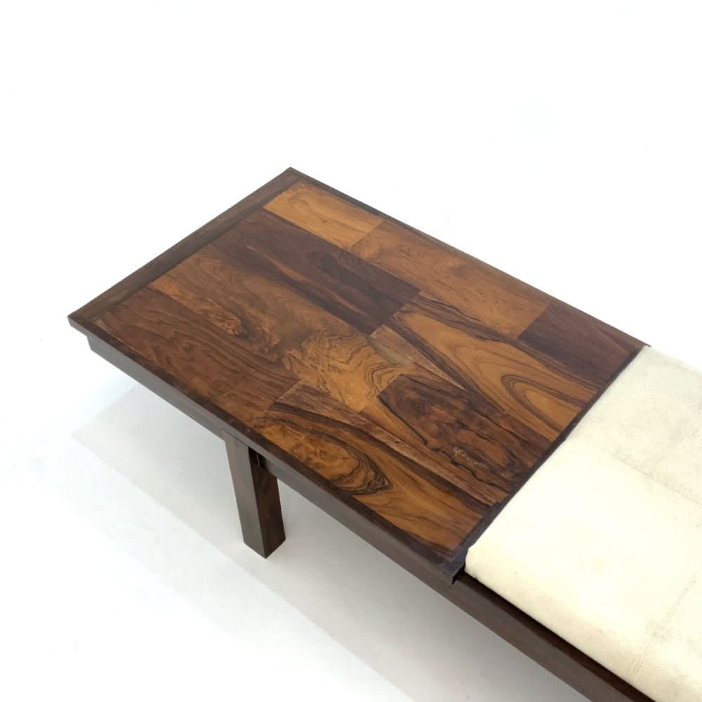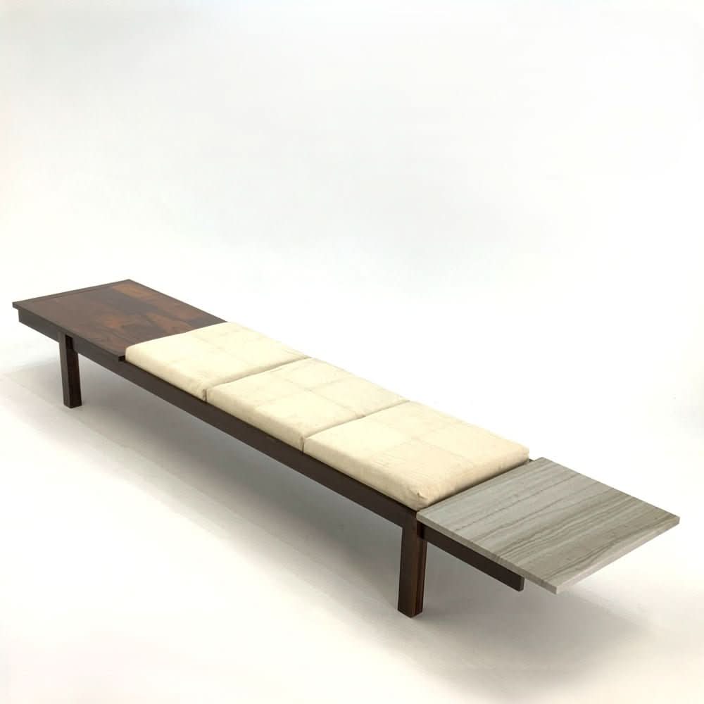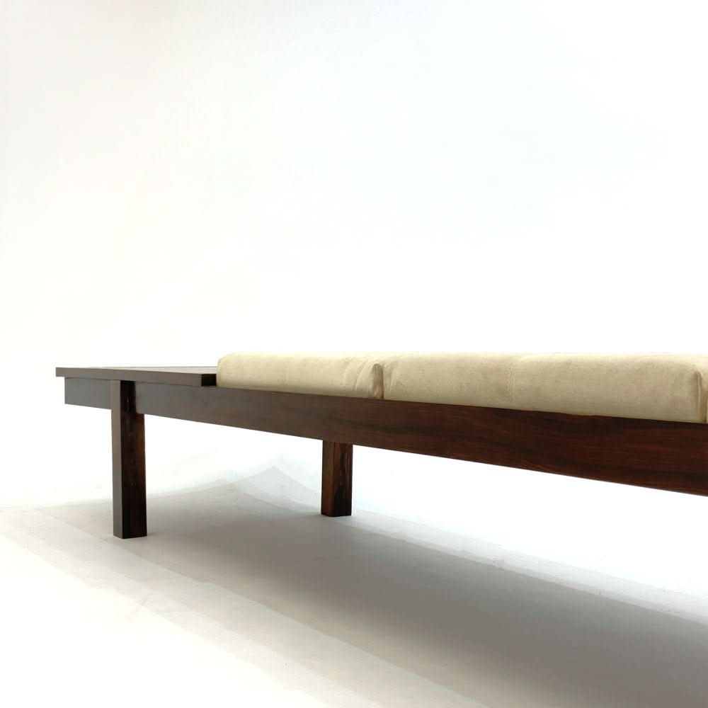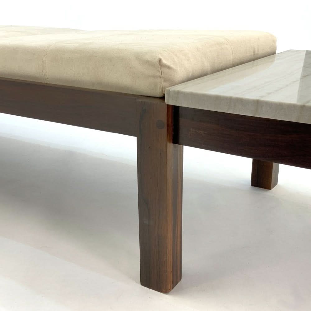 Jorge Zalszupin Banco Bench. Brazilian rosewood with marble end table and 3 upholstered cushions.