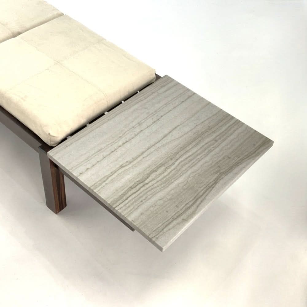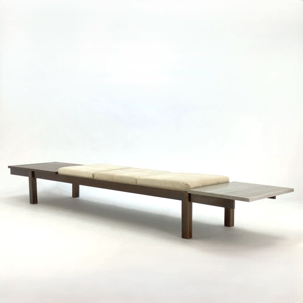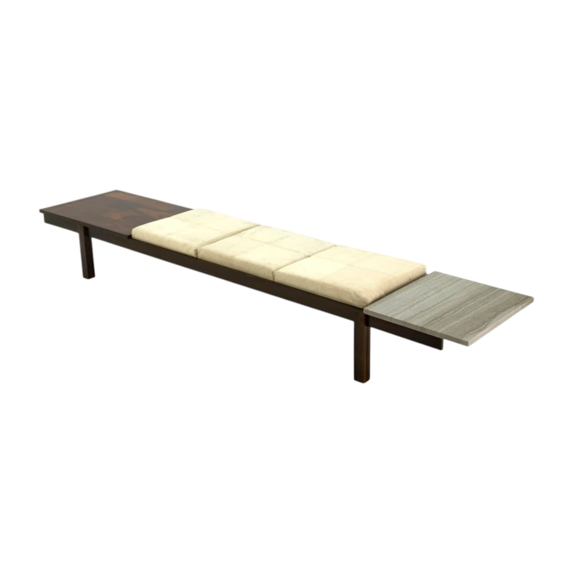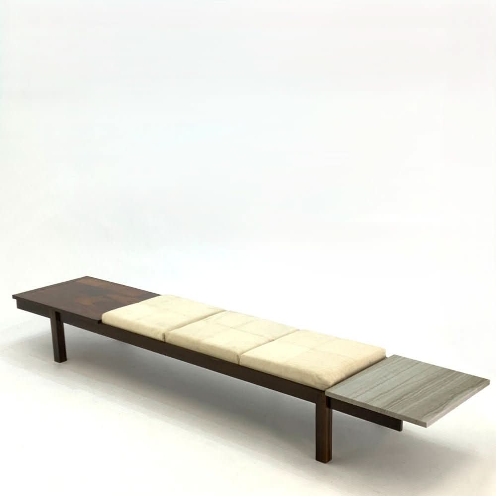 Jorge Zalszupin Banco Bench. Brazilian rosewood with marble end table and 3 upholstered cushions.
