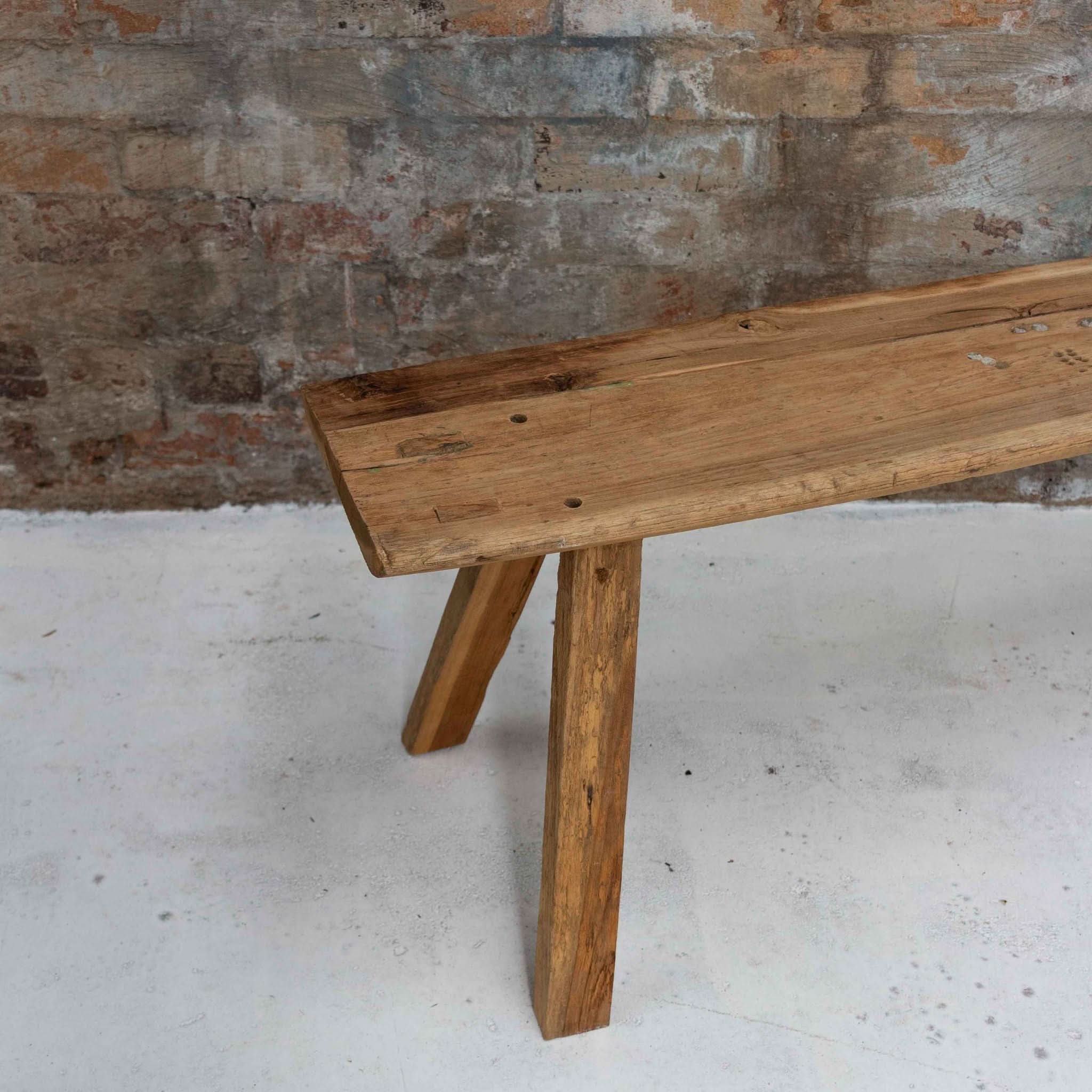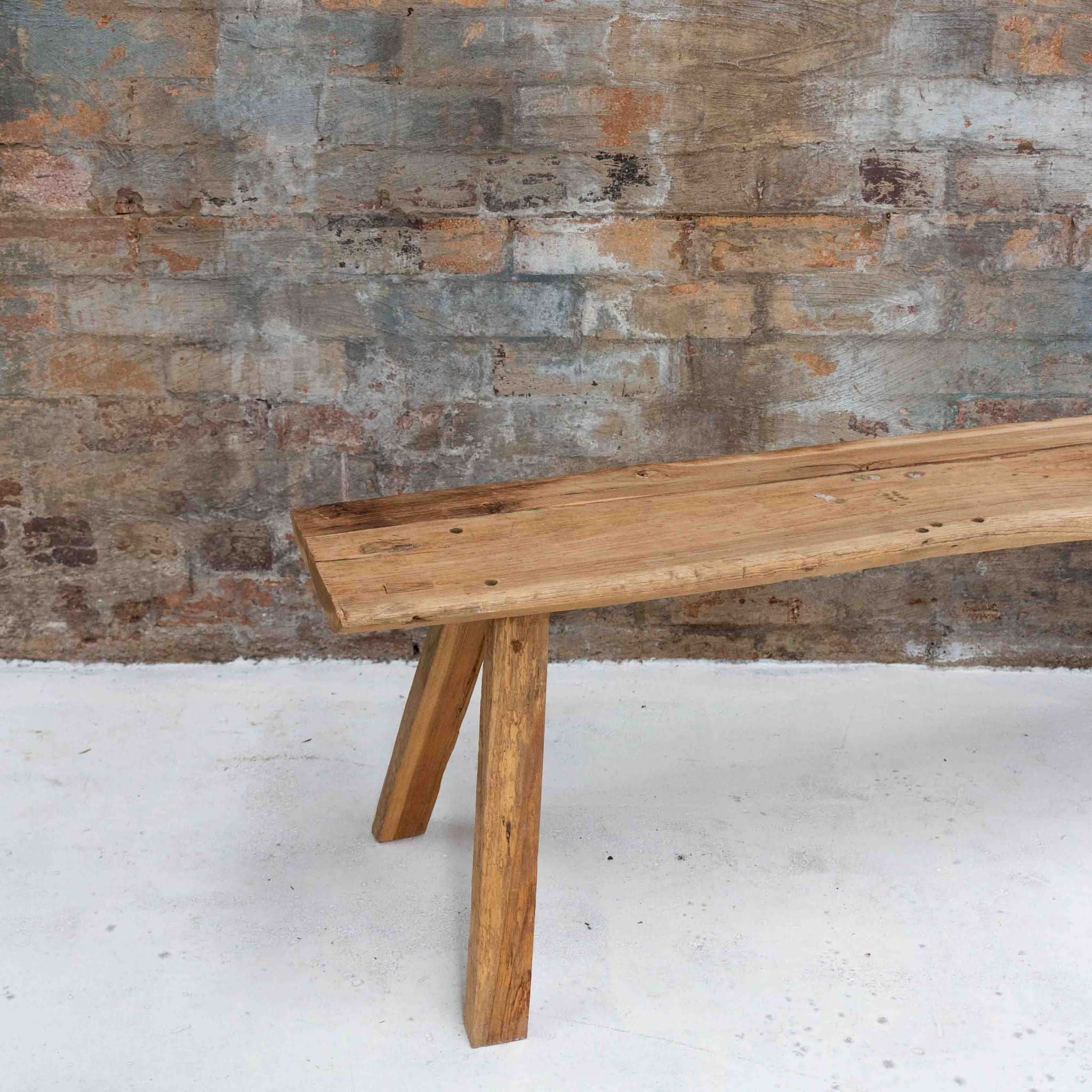 Recycled teak wood bench seat featuring grains and characteristics that instil rustic charm into your interior or exterior space, with no two bench seats being the same.