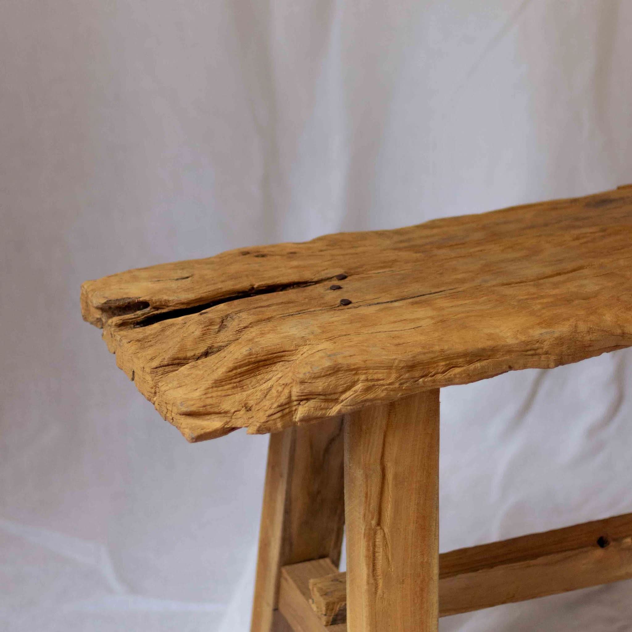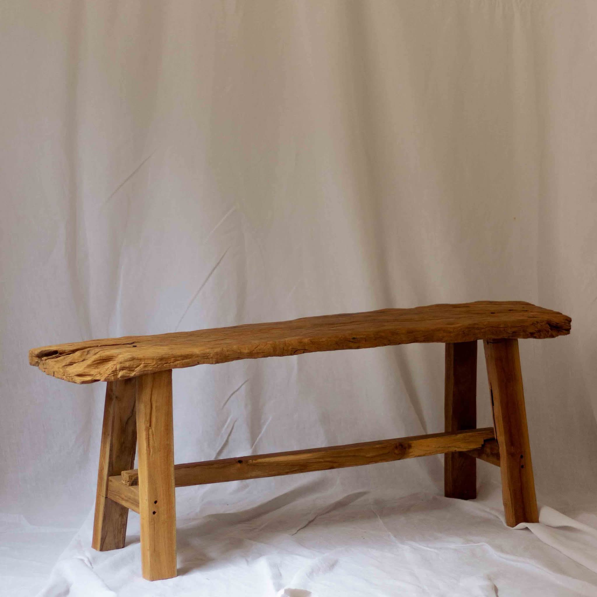 Recycled teak wood bench seat featuring grains and characteristics that instil rustic charm into your interior or exterior space, with no two bench seats being the same.
