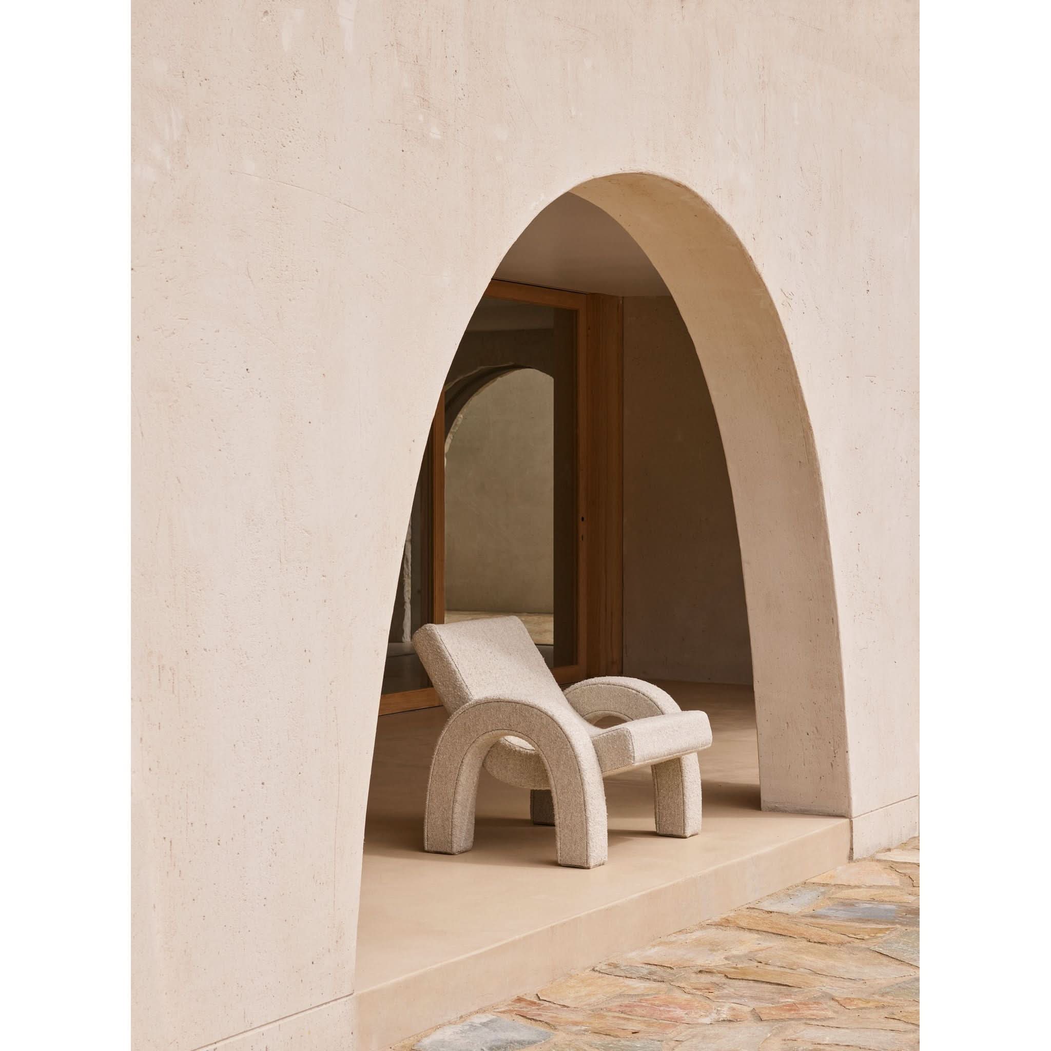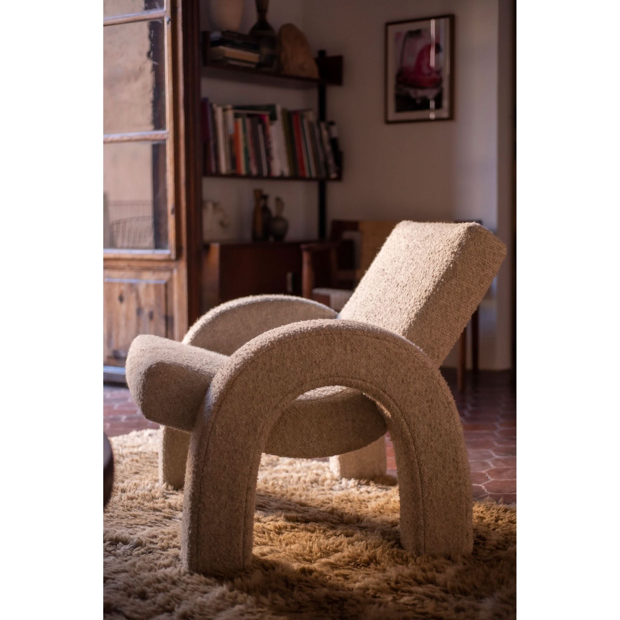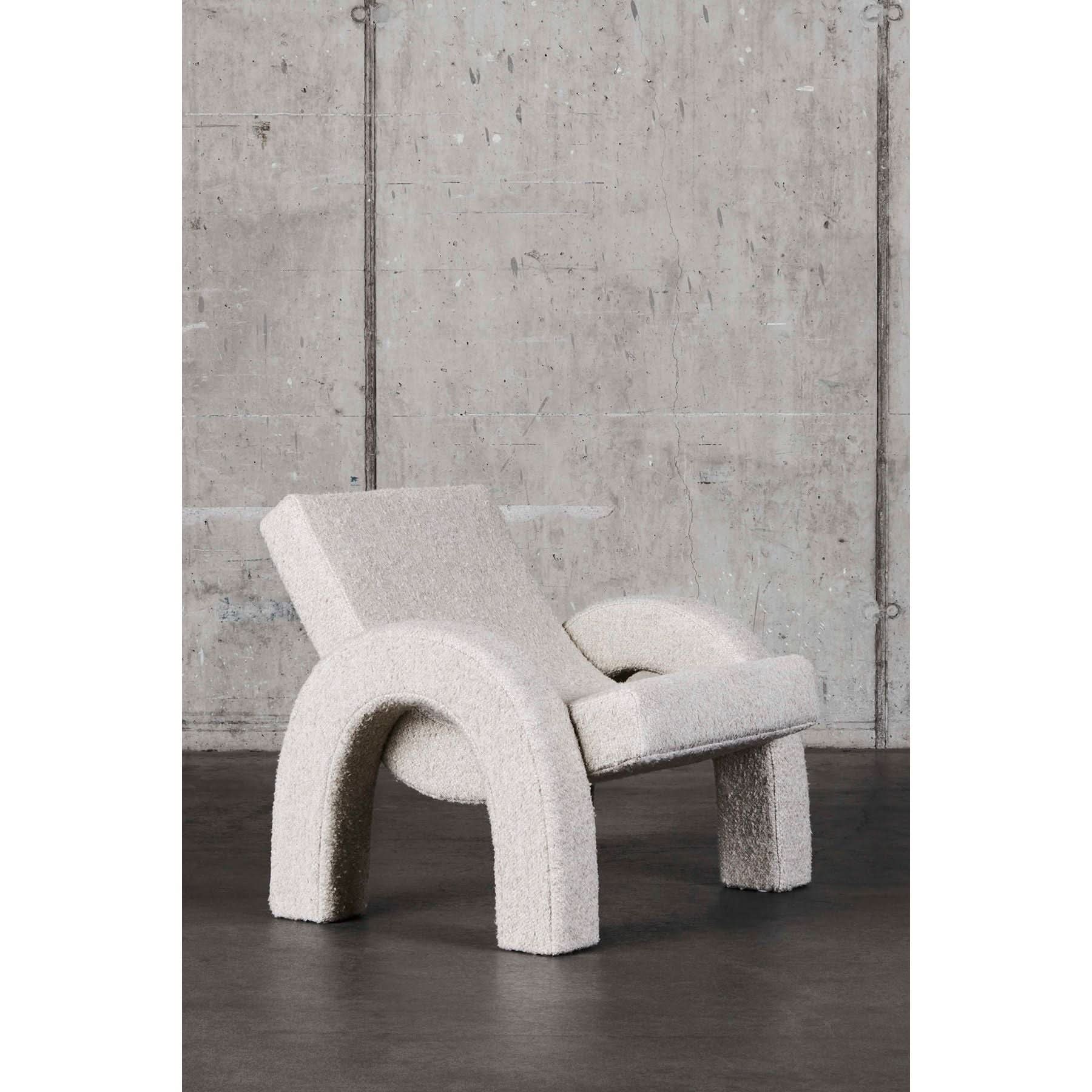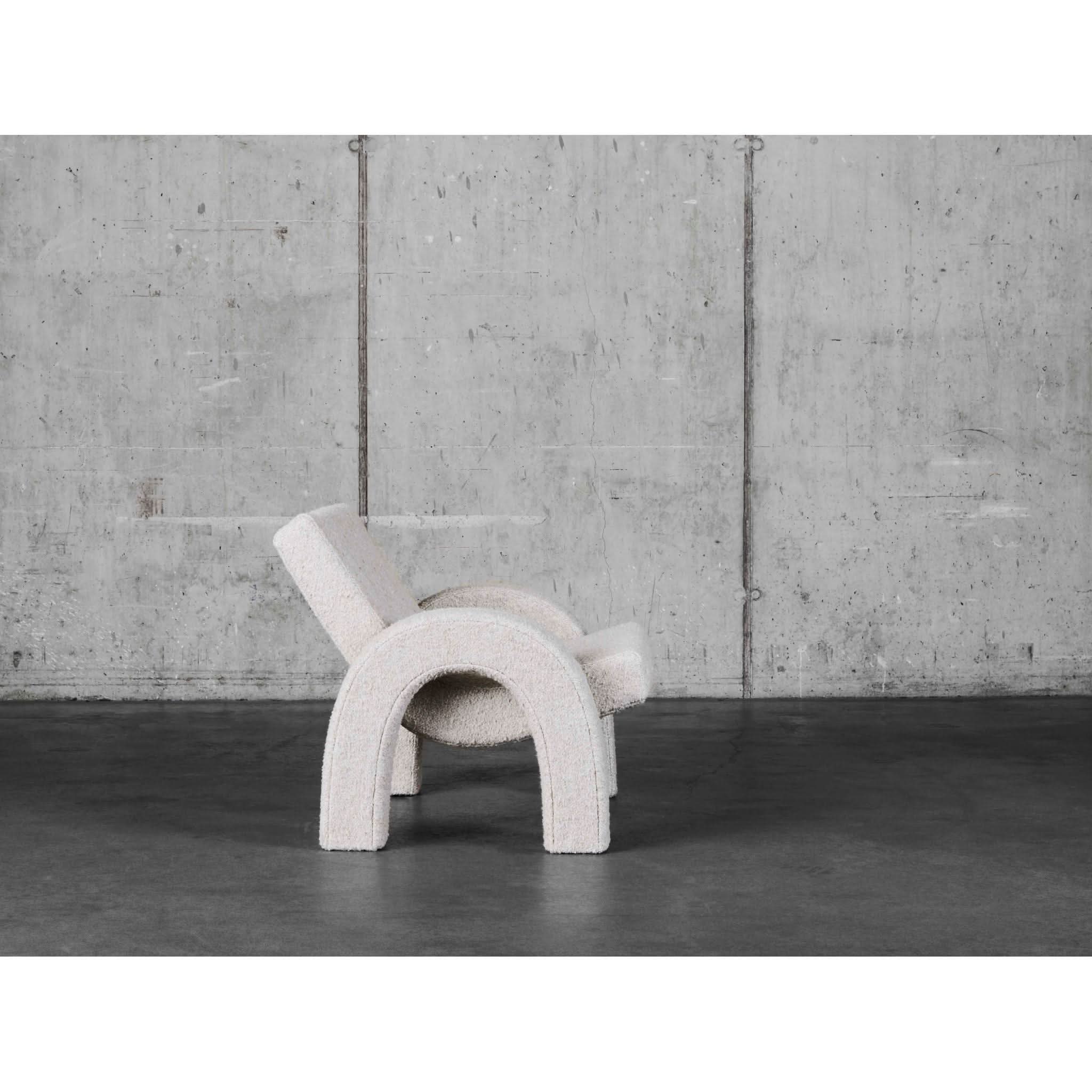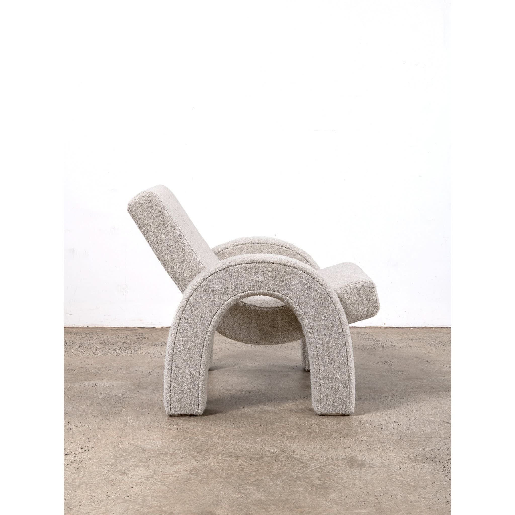 Dusty Deco Arco Lounge Chair in Astrid Mons Natural Boucle Upholstery.