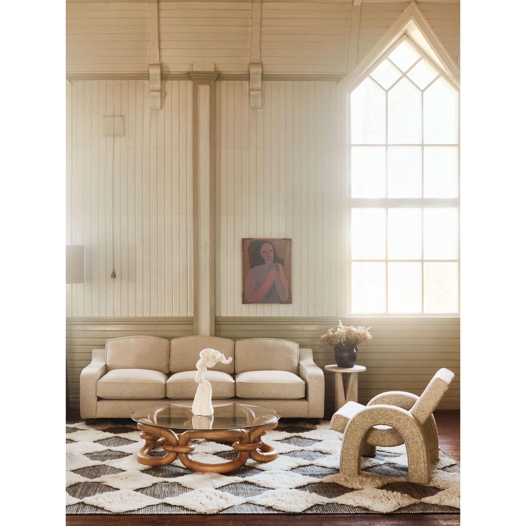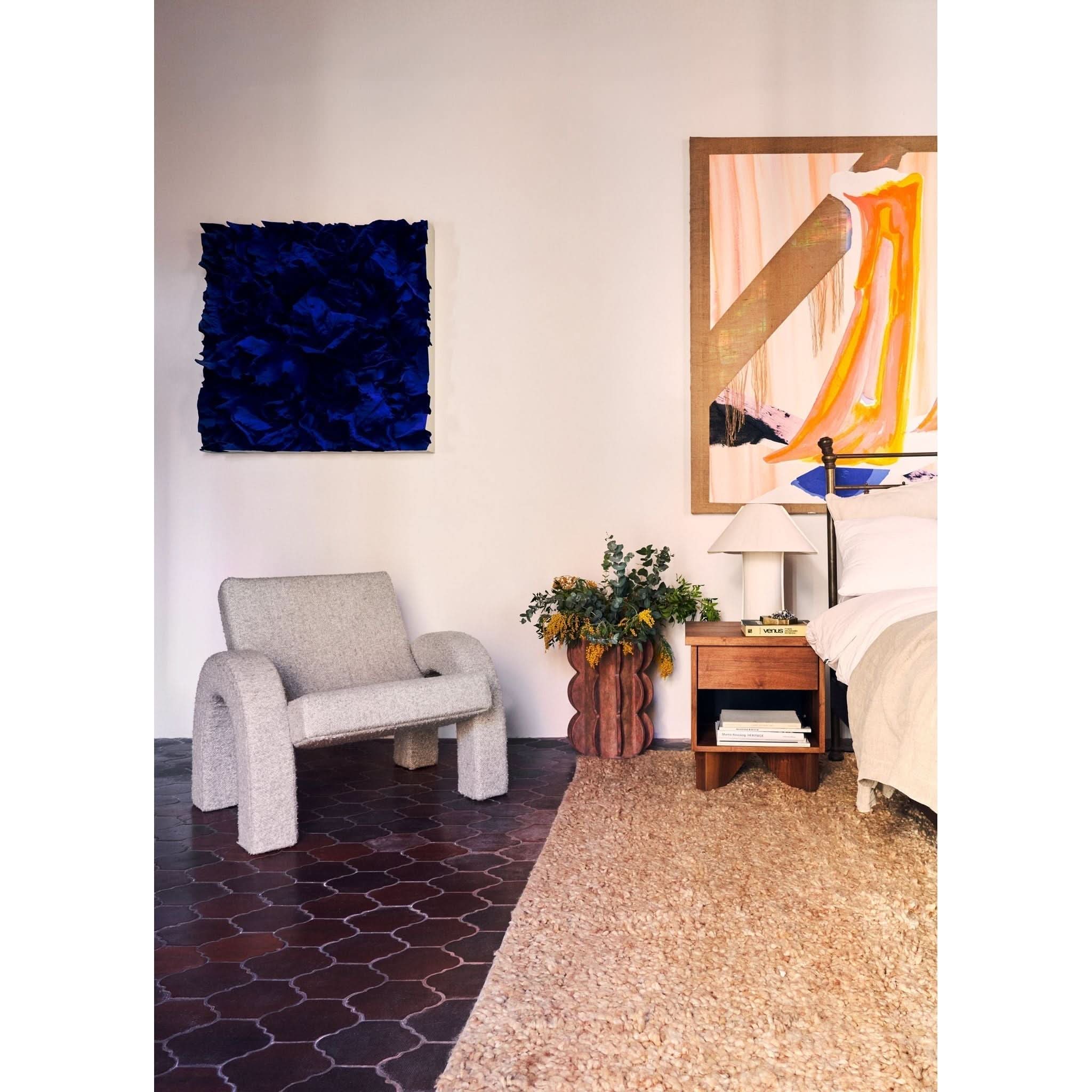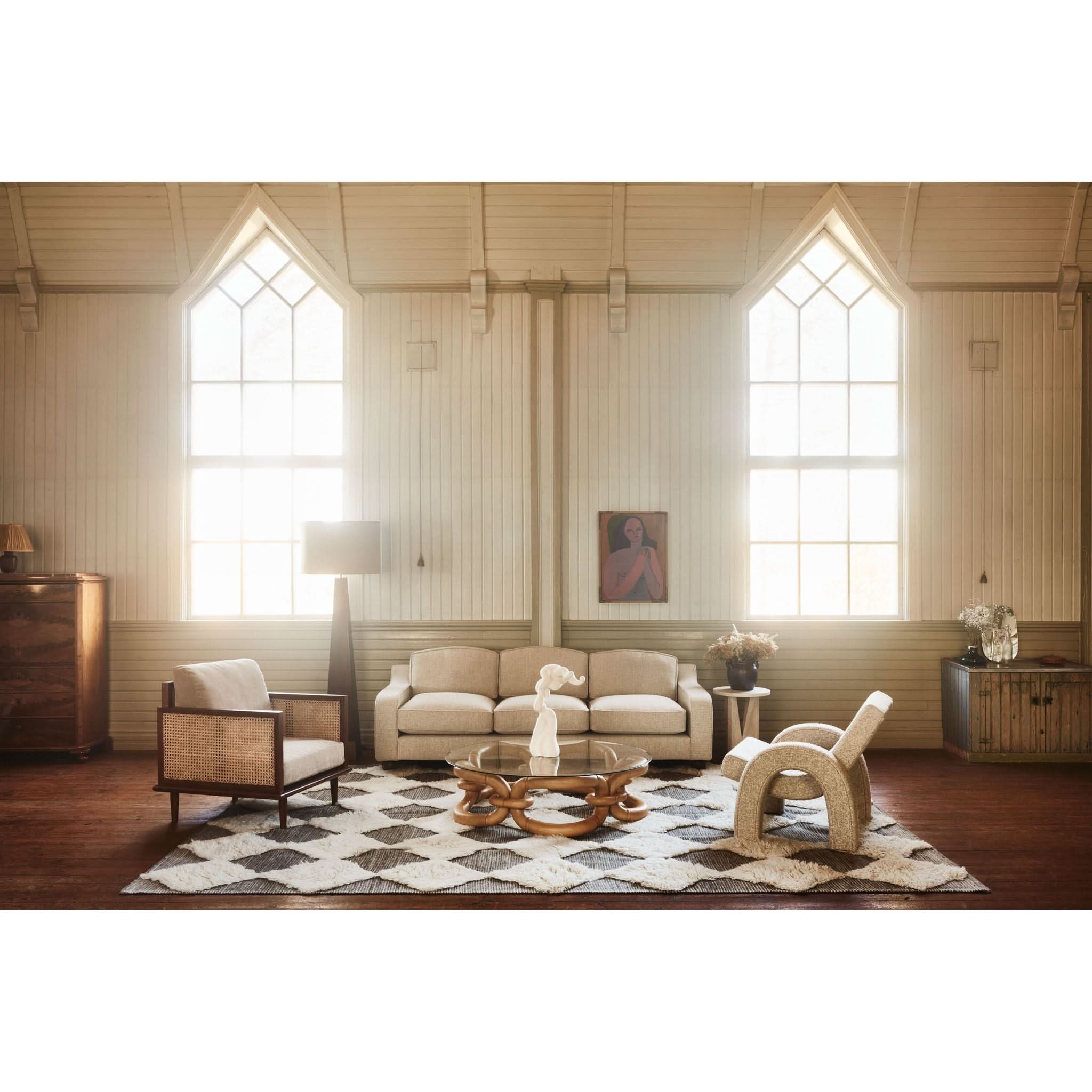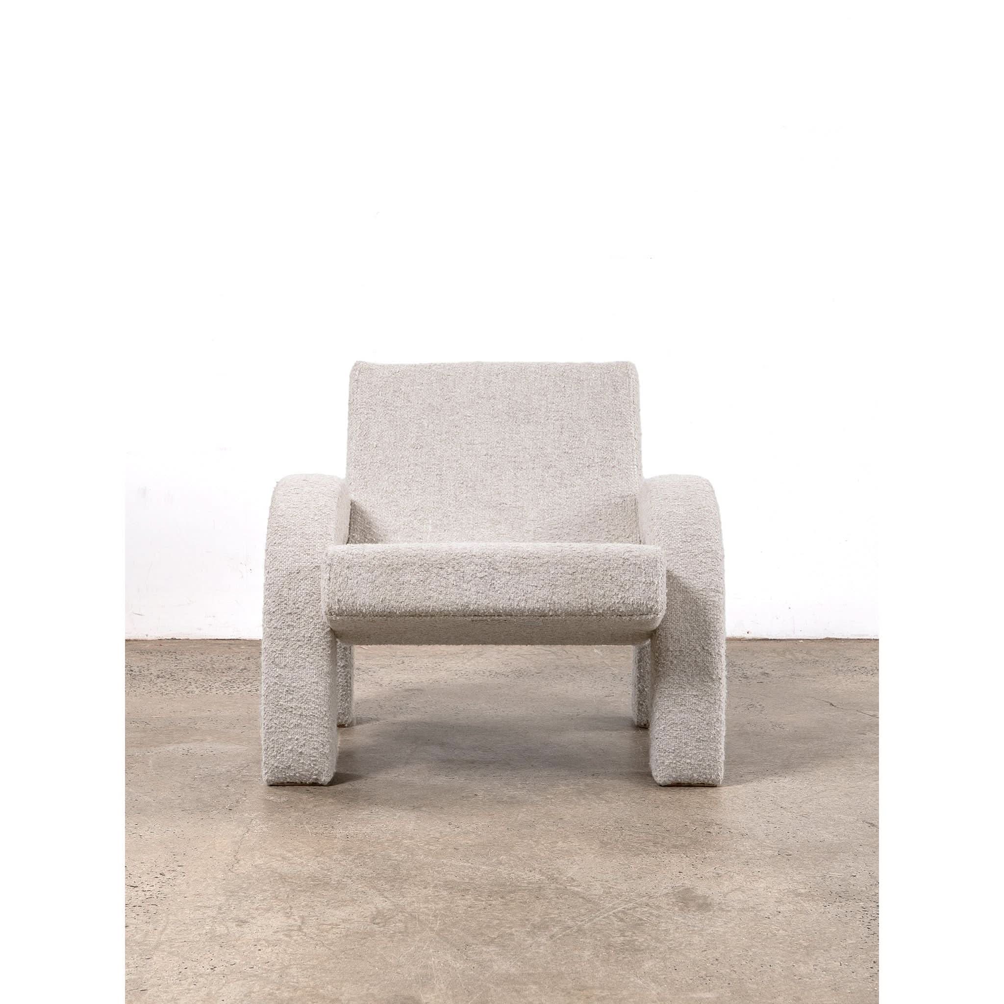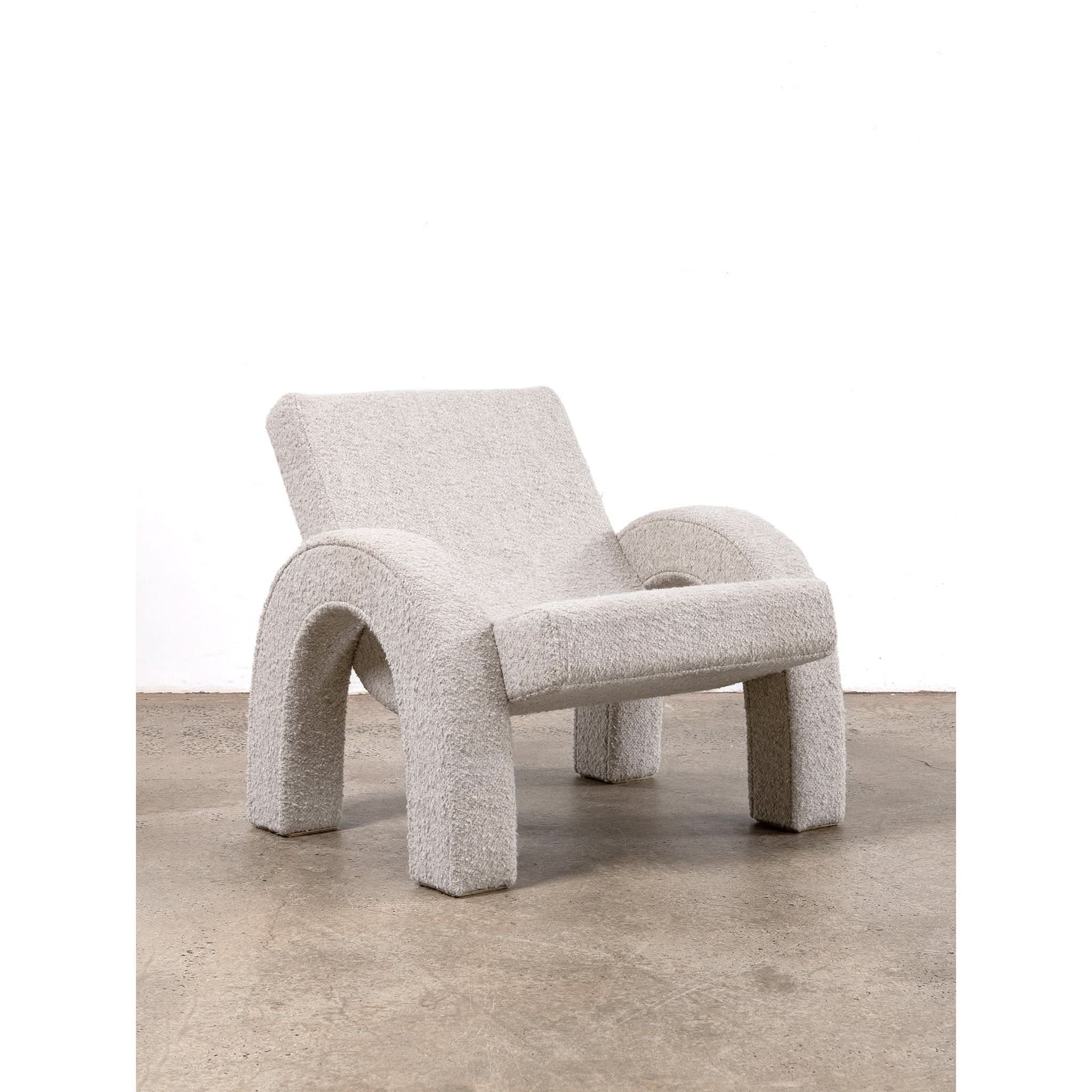Dusty Deco Arco Lounge Chair in Astrid Mons Natural Boucle Upholstery.
