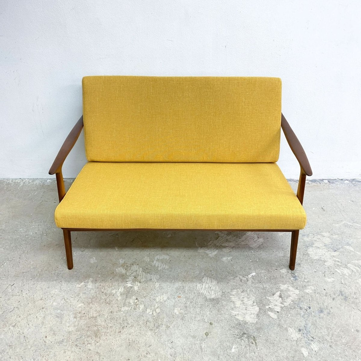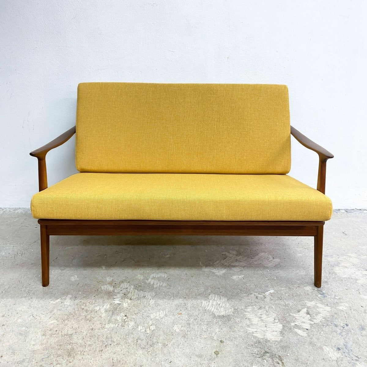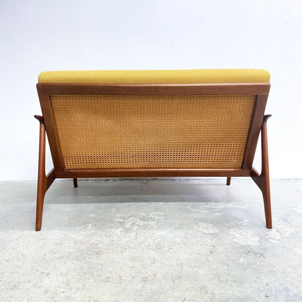 Fabulous mid century Parker rattan back 2 seater sofa lounge. Newly upholstered with all new strapping, new foam inserts and new covers.   Also has been restored including new rattan.