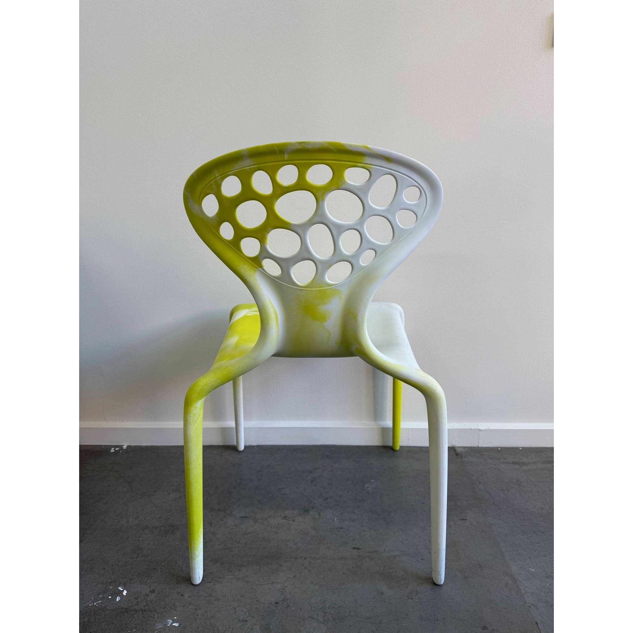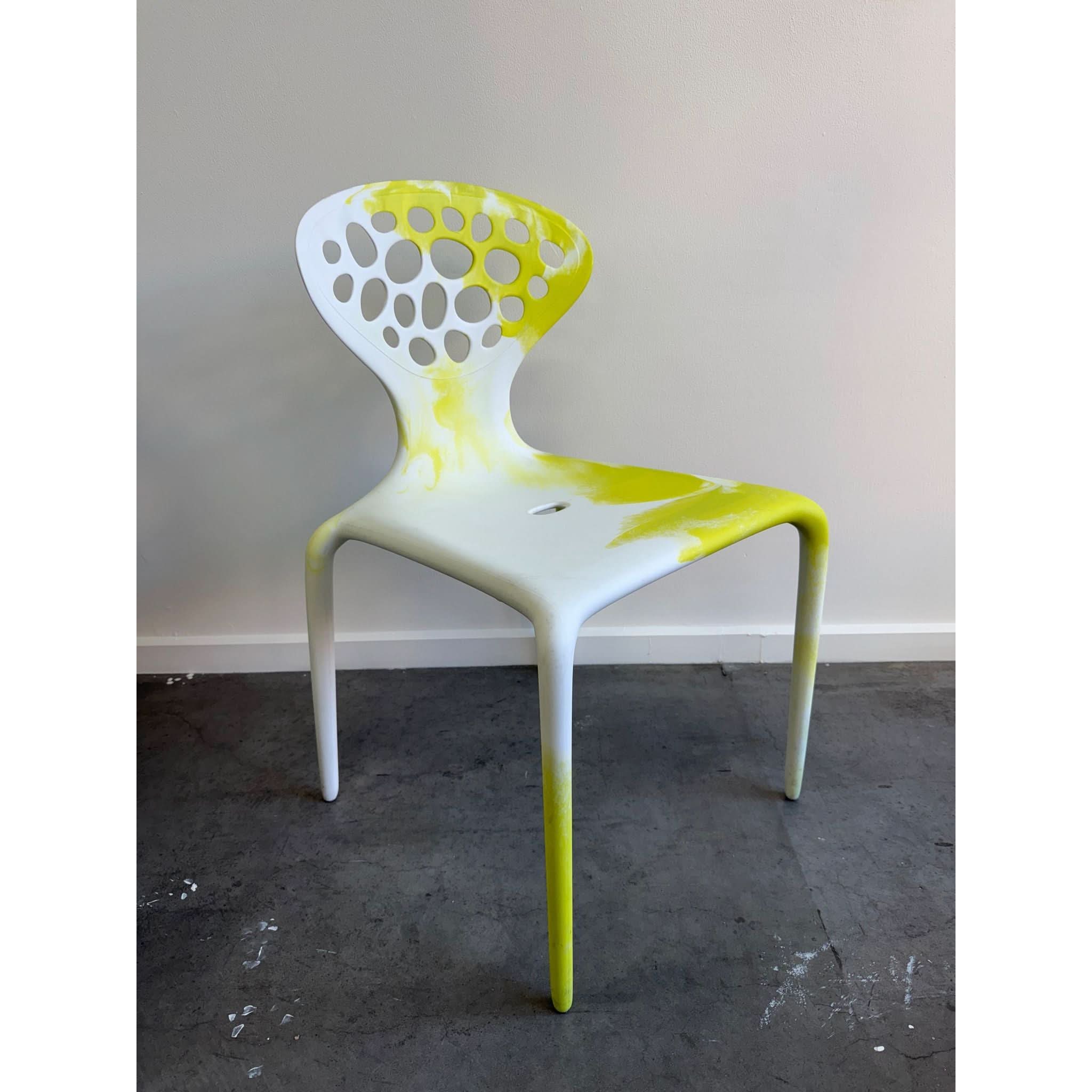 Constructed from durable injection-moulded polypropylene, the Supernatural Chair is lightweight, stackable, and suitable for both indoor and outdoor use—perfect for design-forward interiors, galleries, cafes, or collectors of contemporary furniture.