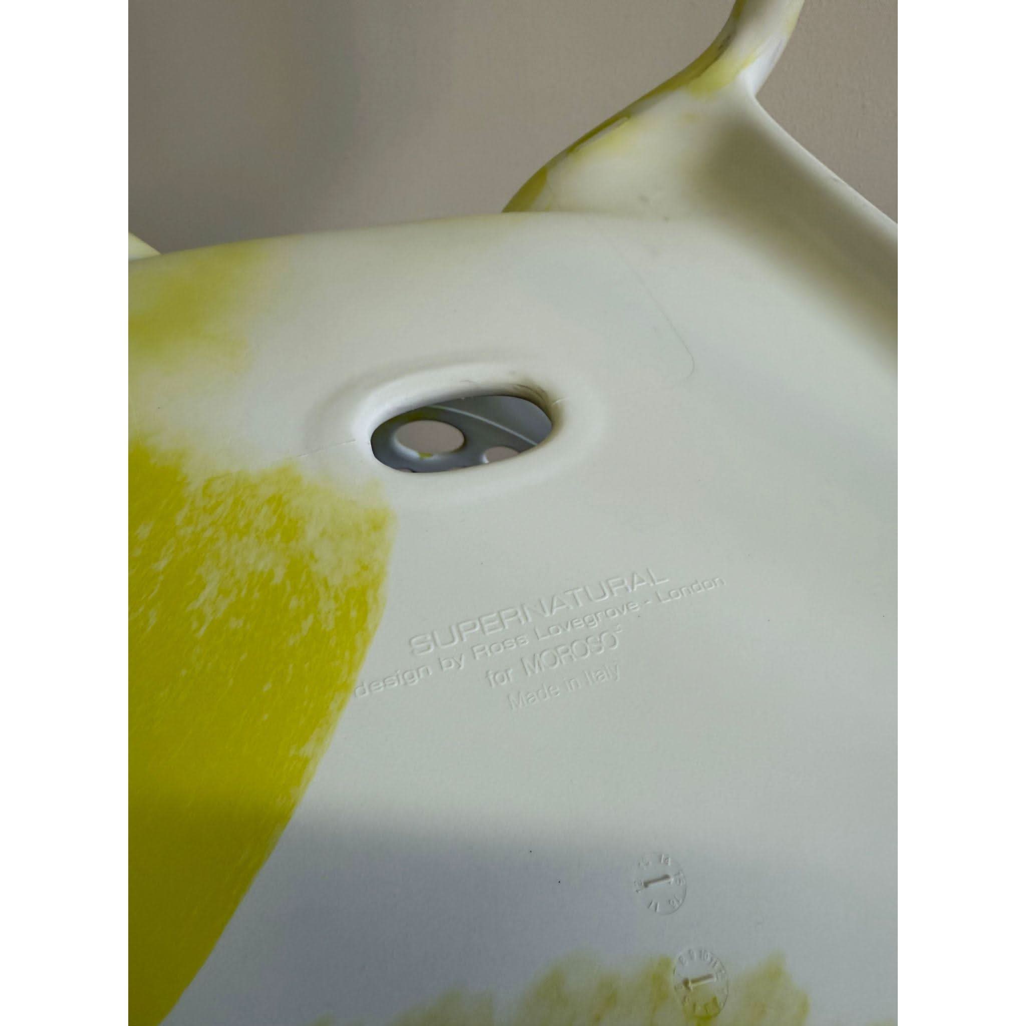 A vibrant design icon by Ross Lovegrove for Moroso, the Supernatural Chair is a modern classic that blurs the line between sculpture and function. This rare bi-colour edition in white and yellow features the signature perforated backrest and fluid form, embodying Lovegrove’s vision of organic minimalism.