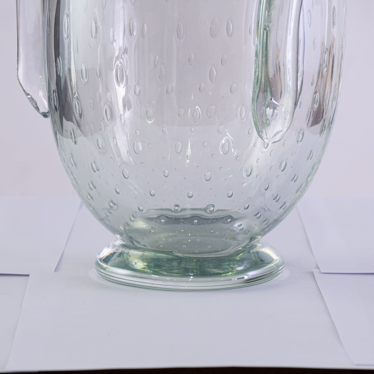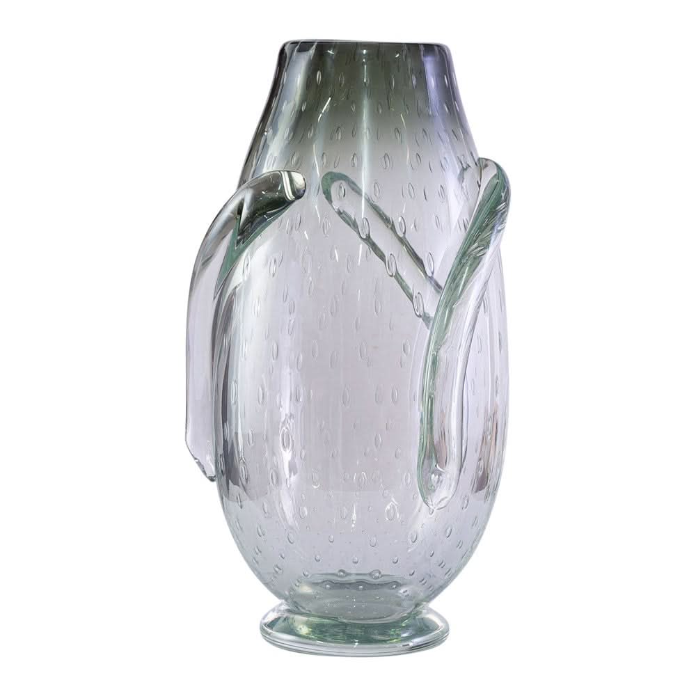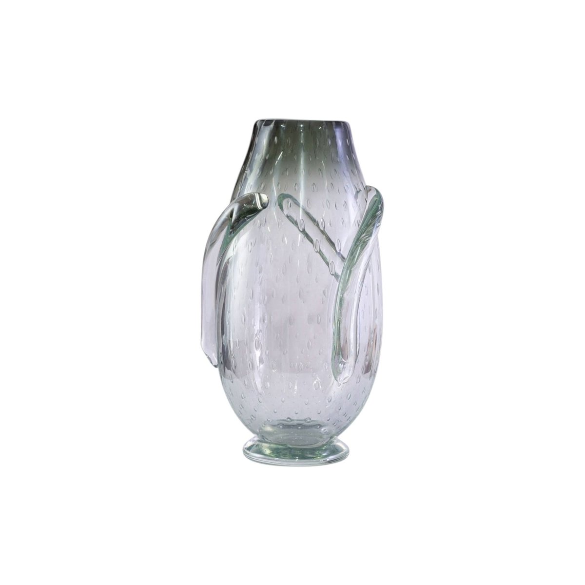 of ovoid form, in green and clear glass with bullicante technique (bubbless) throughout and applied strap work
