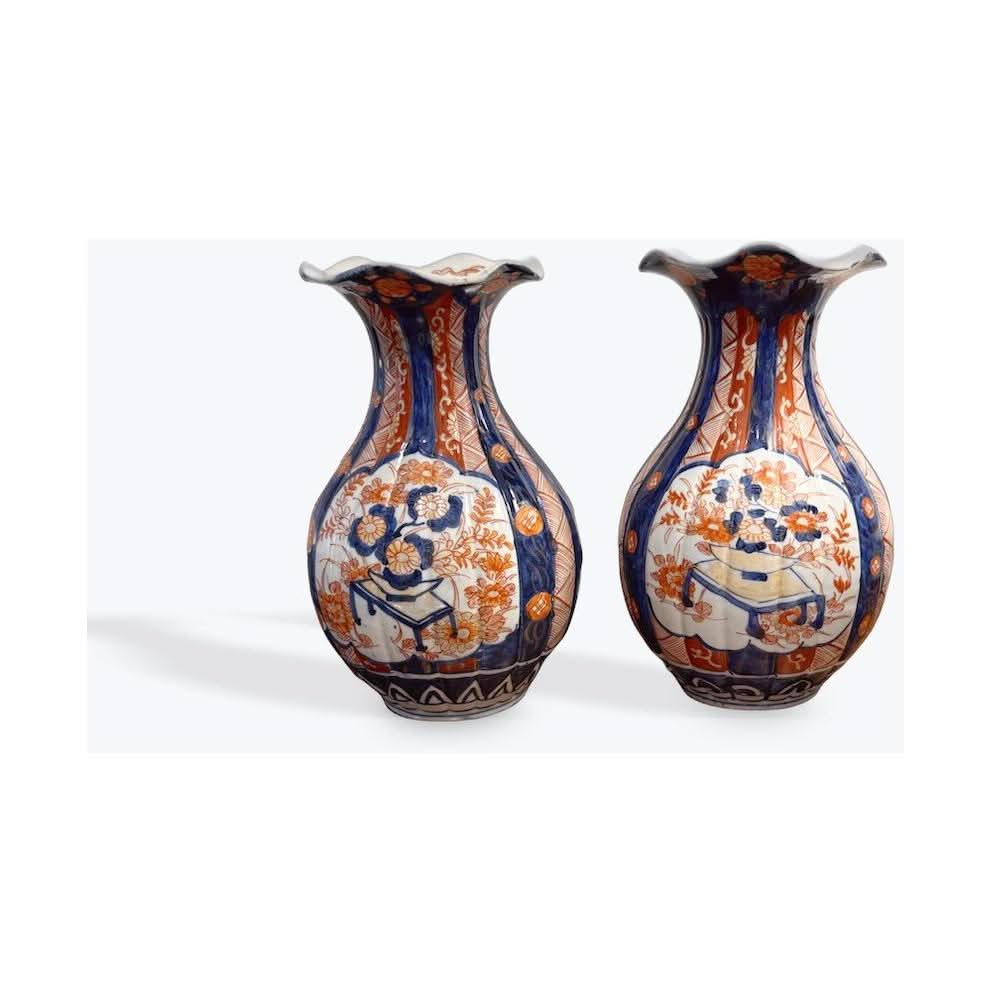 A pretty pair of antique Japanese imari vases with frilled tops. size: 24.5cm h x 15cm w