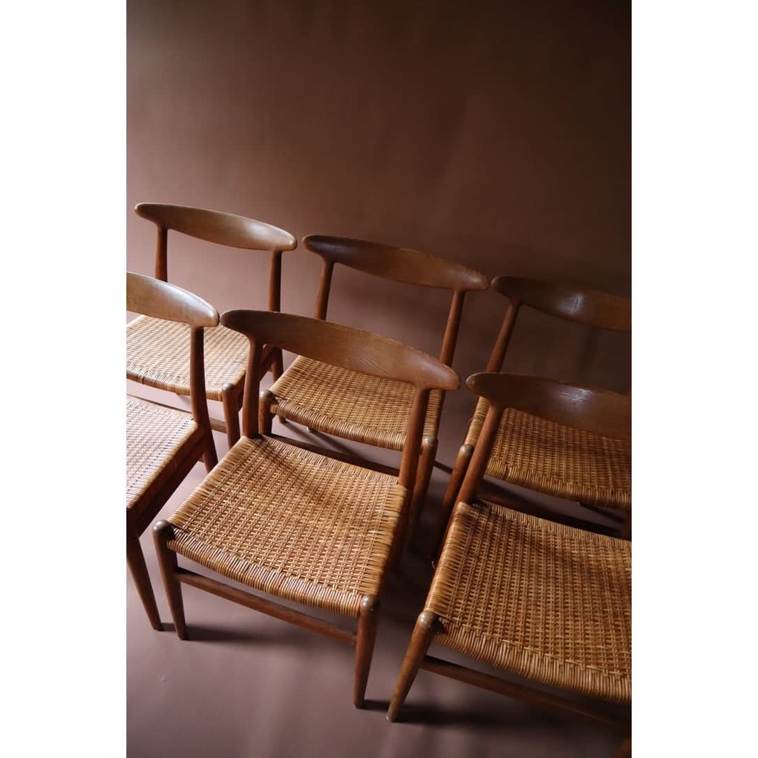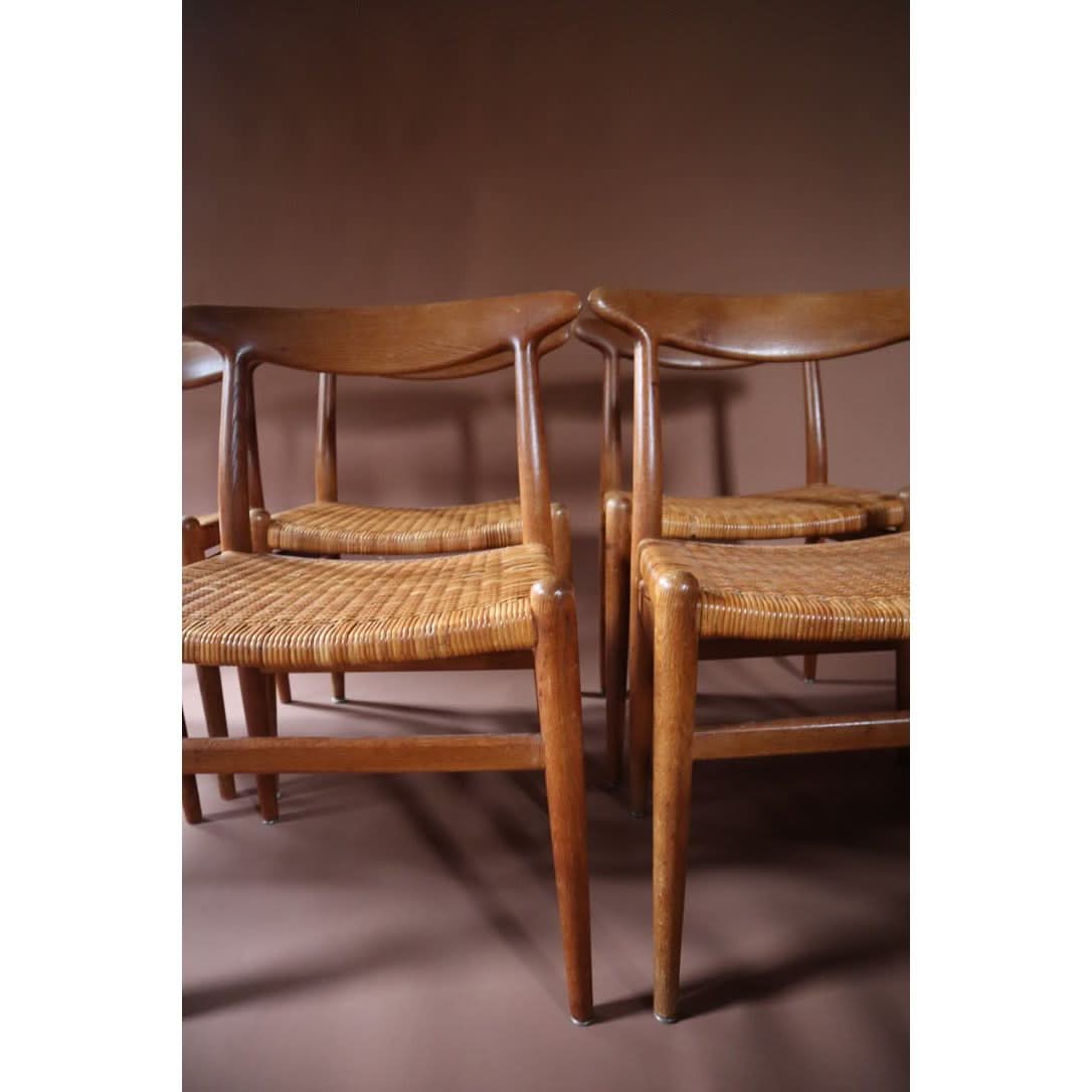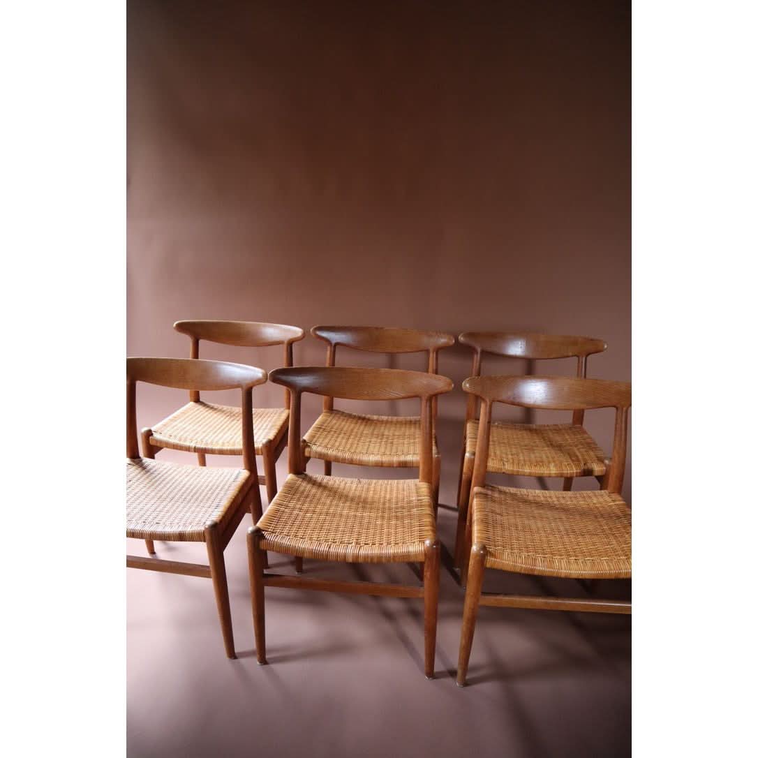 Set of 6 chairs with an oak structure and rattan seating. Denmark c.1960
