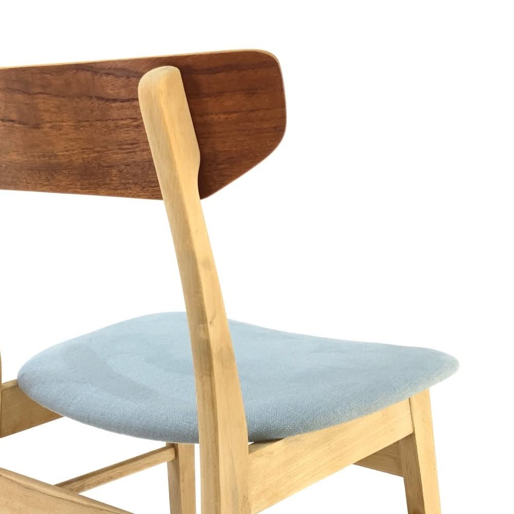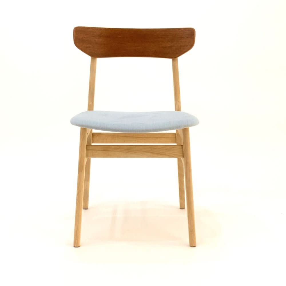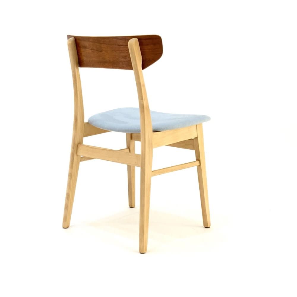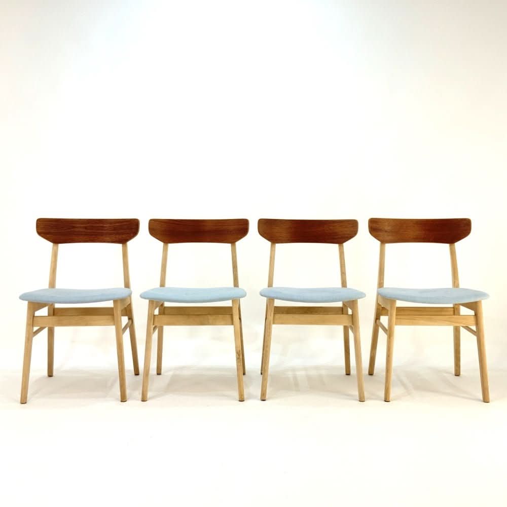 Set of 4 restored Danish Sax Teak and Beech Dining Chairs. Oiled teak back rest, soaped beech frame with new linen upholstery. Sold as a set of 4. Please enquire for exact dimensions (below is a shipping estimate).
