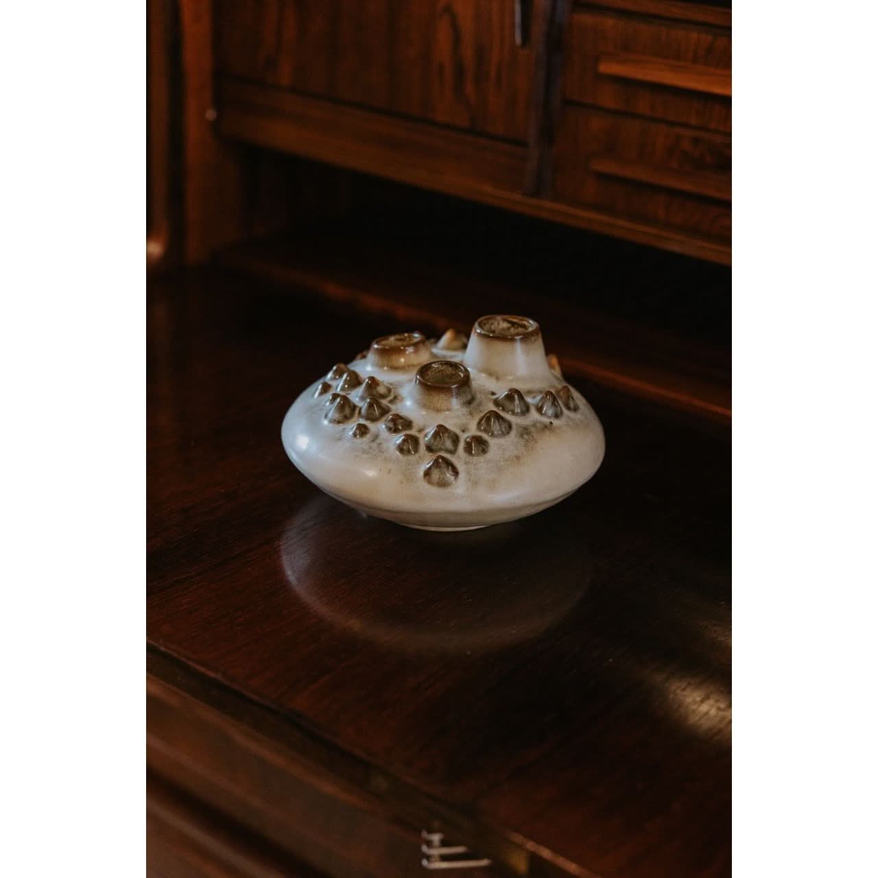 In the style of EINAR JOHANSEN VASE FOR SOHOLM POTTERY, C.1960 Danish designer made for Soholm Pottery, textured design with three holes .