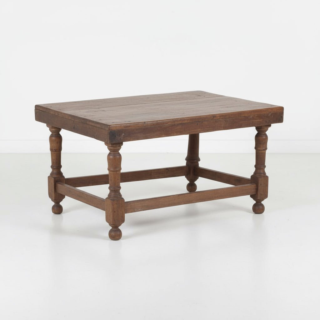 This vintage coffee table features a beautifully crafted teak cross stretcher base that adds both stability and timeless appeal. The turned legs showcase exquisite craftsmanship, bringing a touch of classic elegance to any living space. Perfect for relaxing moments, it offers a sturdy and stylish surface for your coffee, books, or décor. Its rich wood finish invites warmth and character, making it a charming centerpiece in your home where comfort meets vintage style.