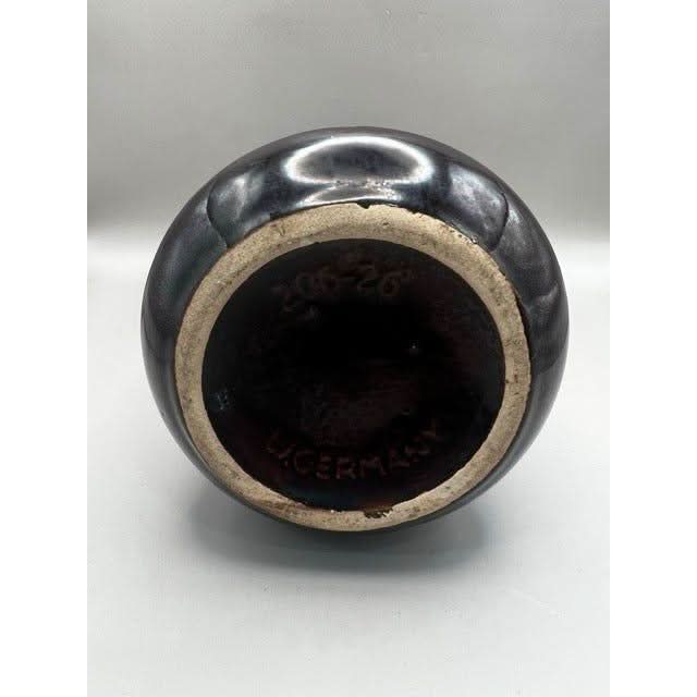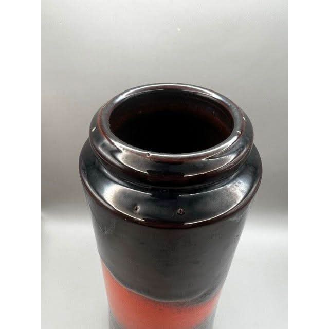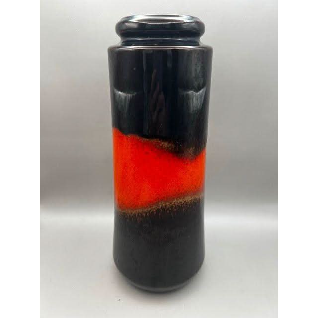 Add a bold statement to your mid-century décor with this striking WGP Scheurich Fat Lava Vase, model 206-26. A true example of West German Pottery craftsmanship, this piece features the iconic "fat lava" glaze with a rich, glossy brown base accented by a vibrant orange lava band, creating a dramatic and timeless aesthetic.