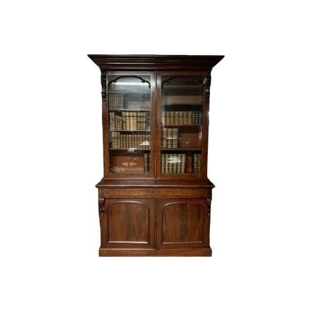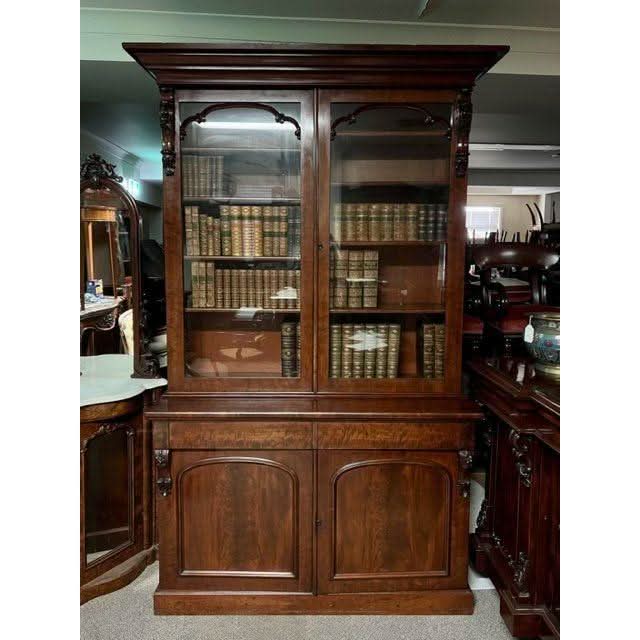 Make no mistake this is a very superior quality example of a genuine antique antique early to mid Victorian two height Book Case. The cabinets are well crafted from quality solid Mahogany parts have then been finished in selected decorative nicely figured feature Mahogany veneers.