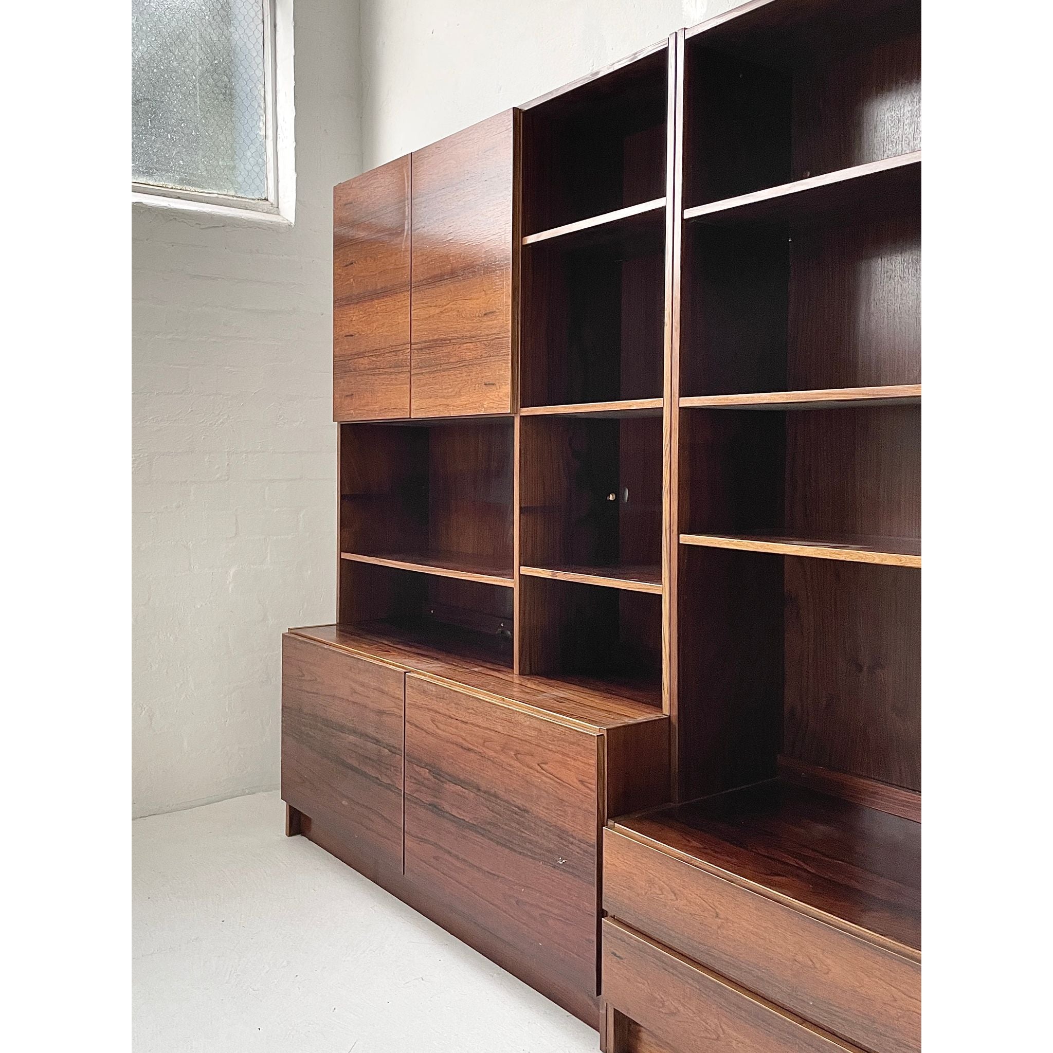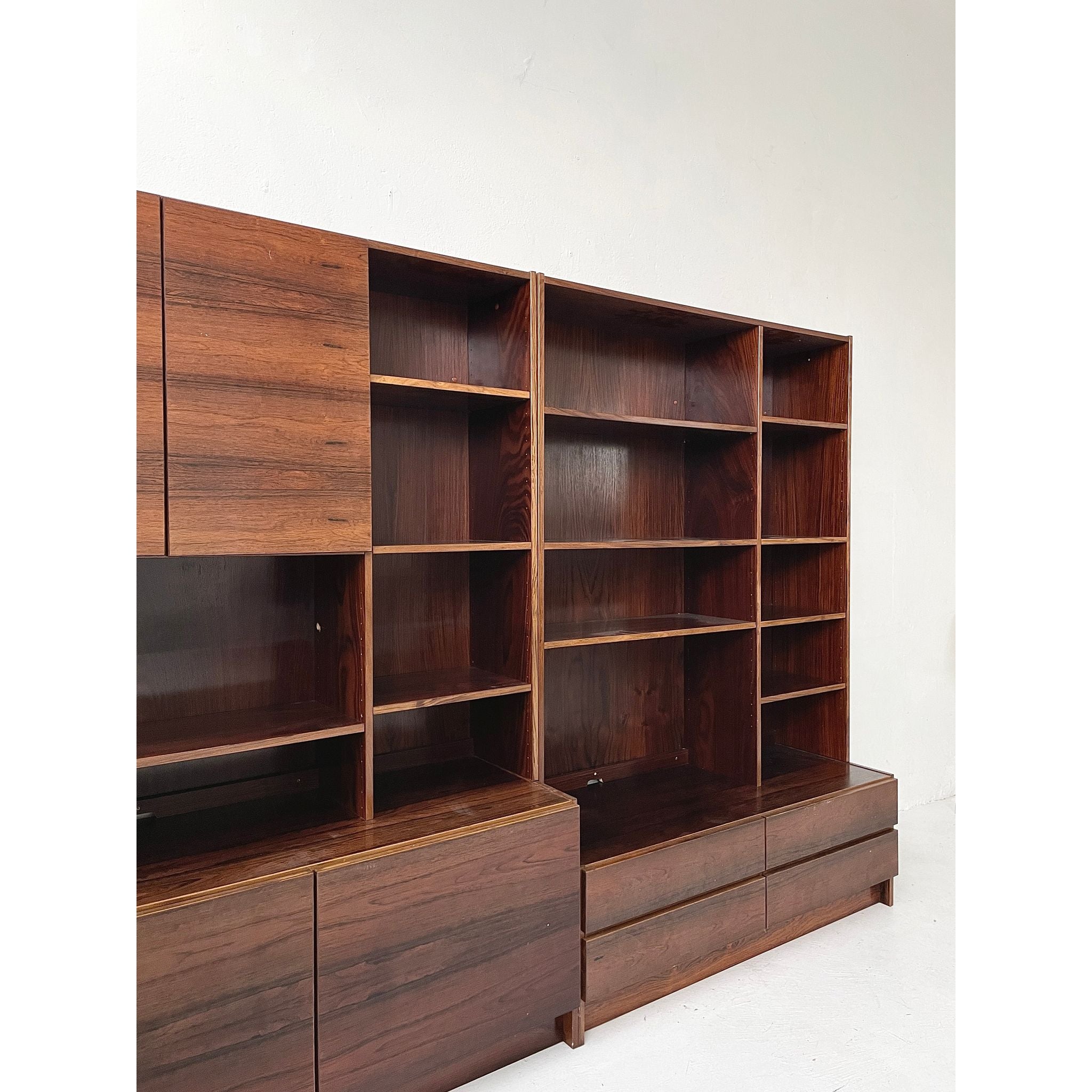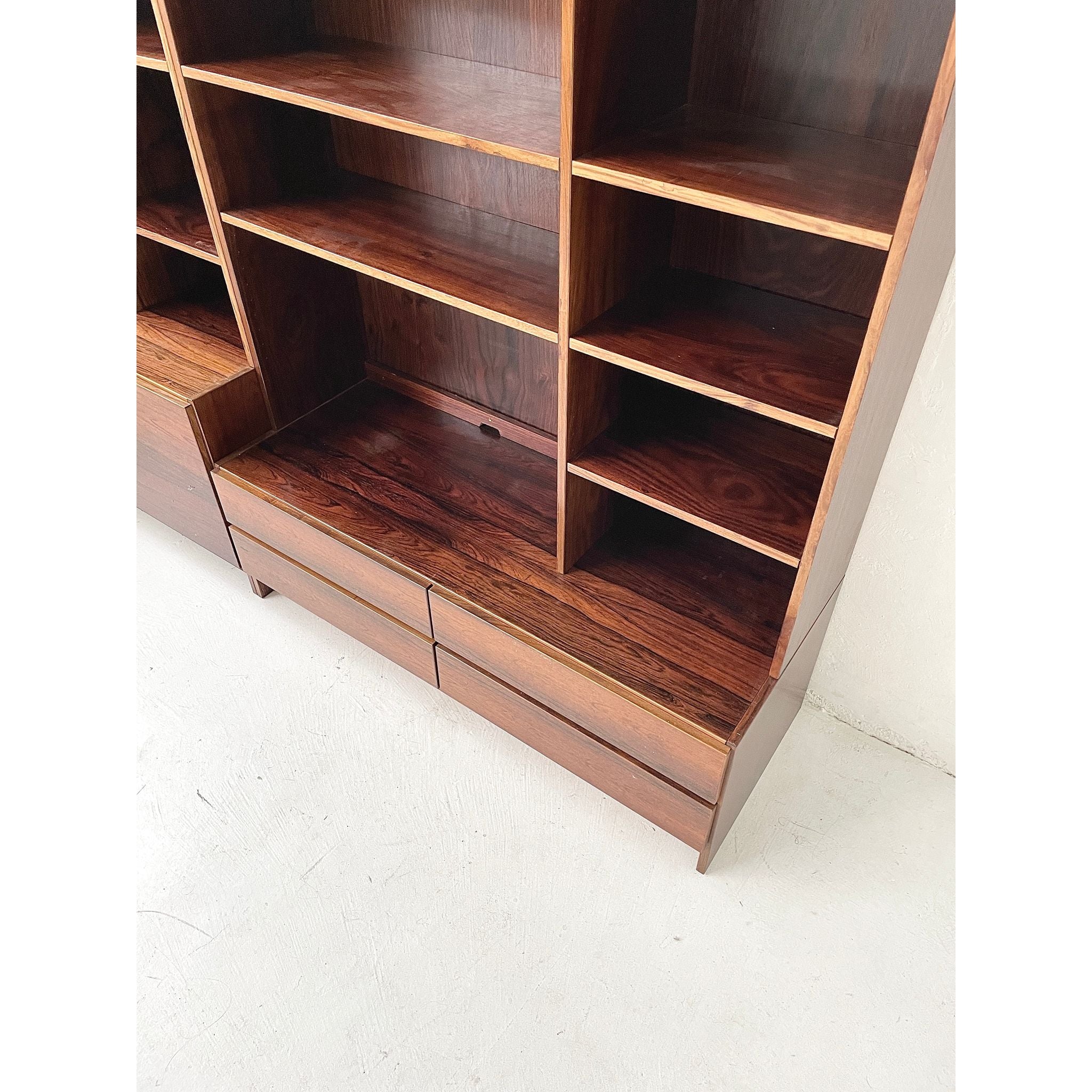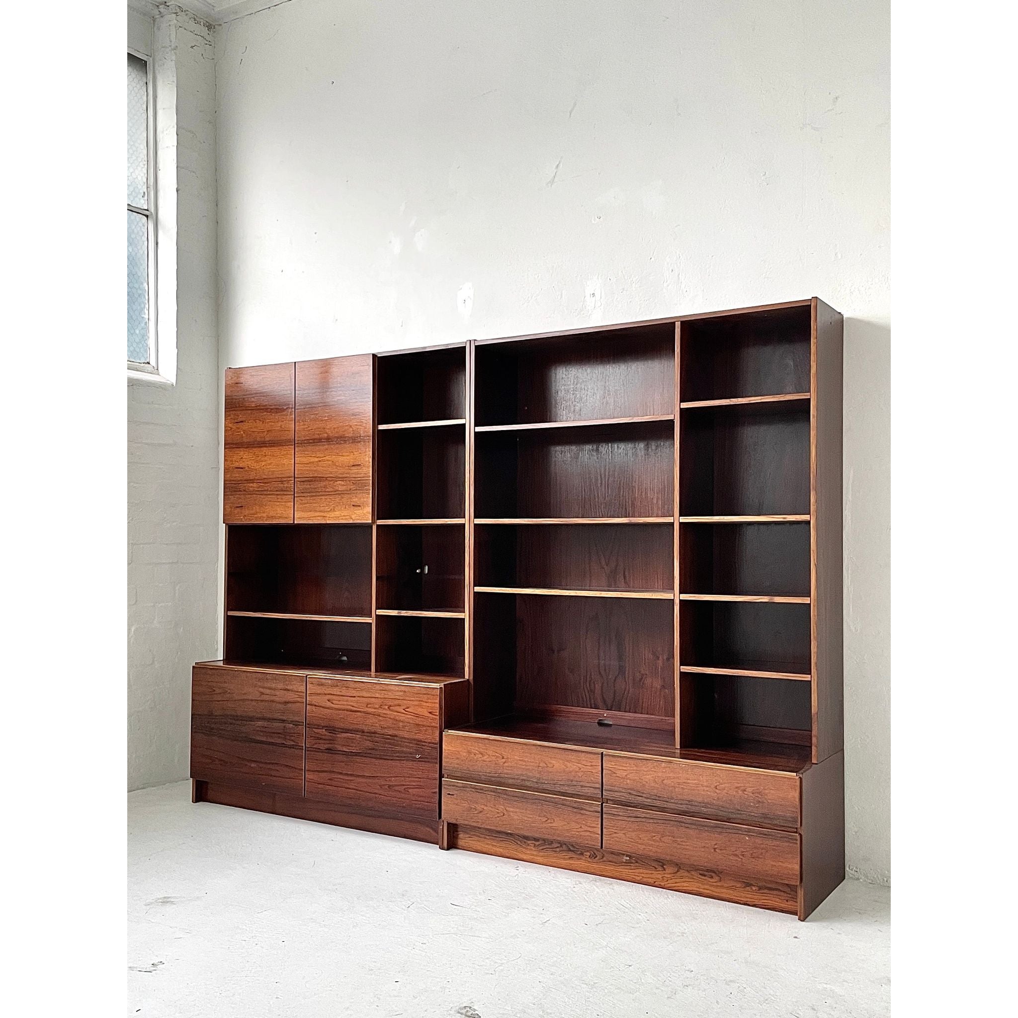 Two-section, four unit Brazilian rosewood wall system. In good original condition.