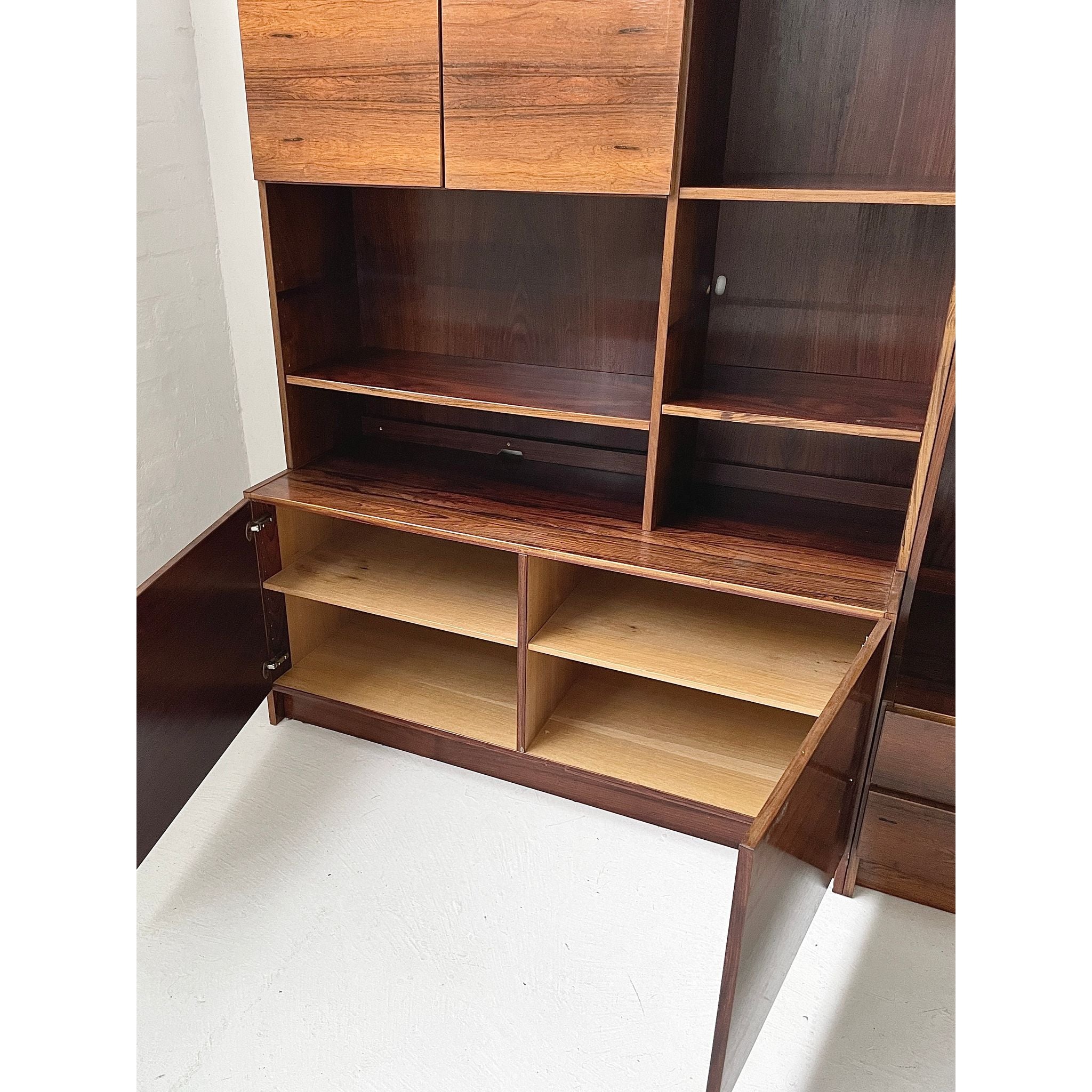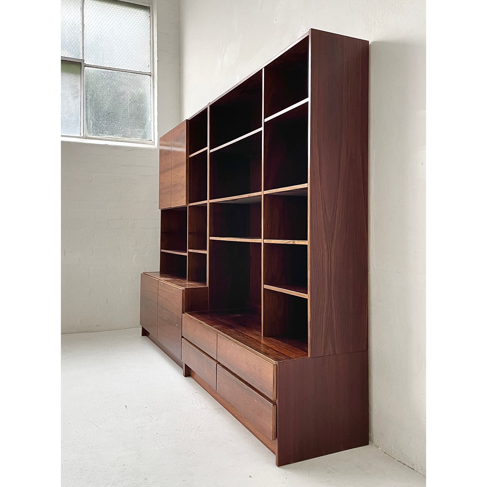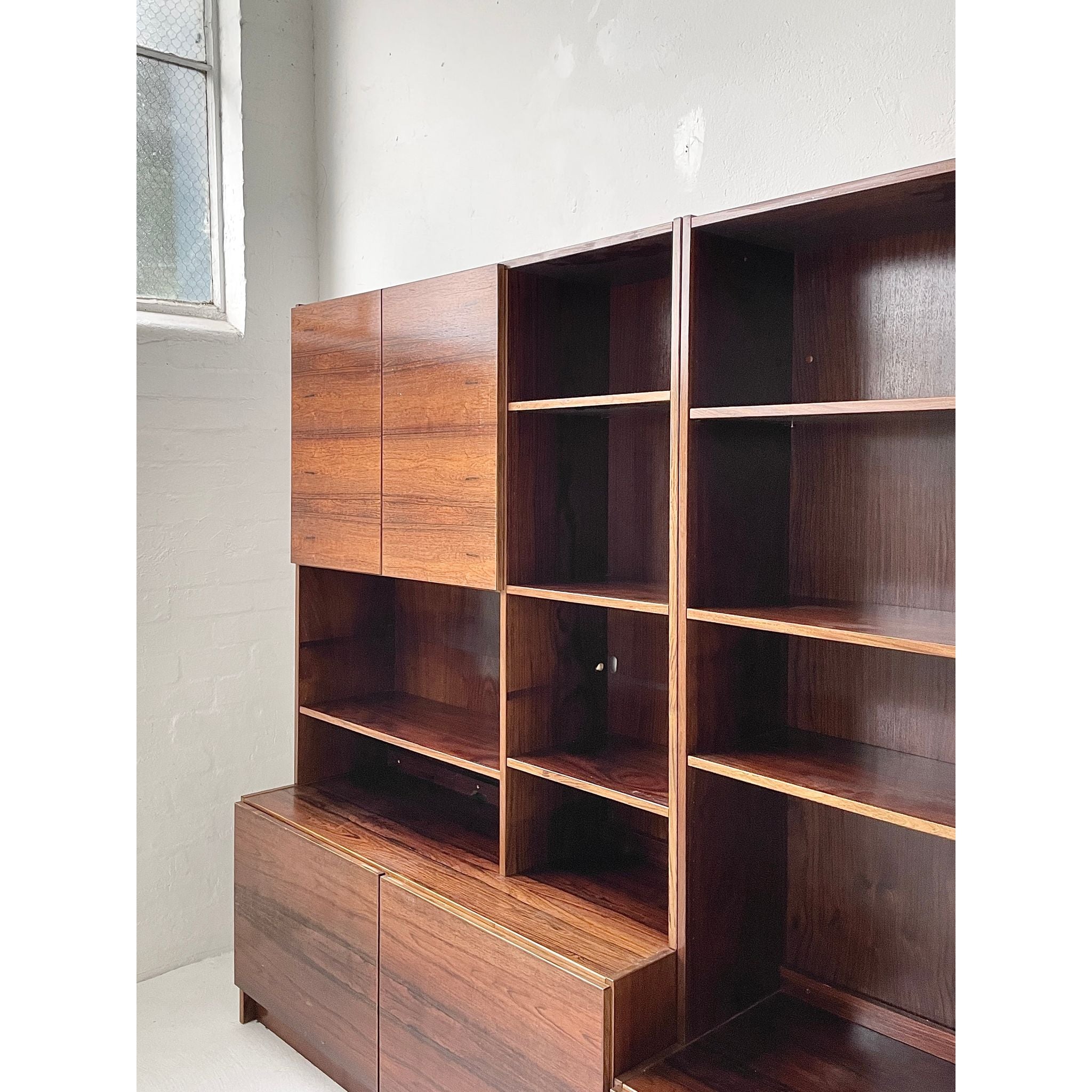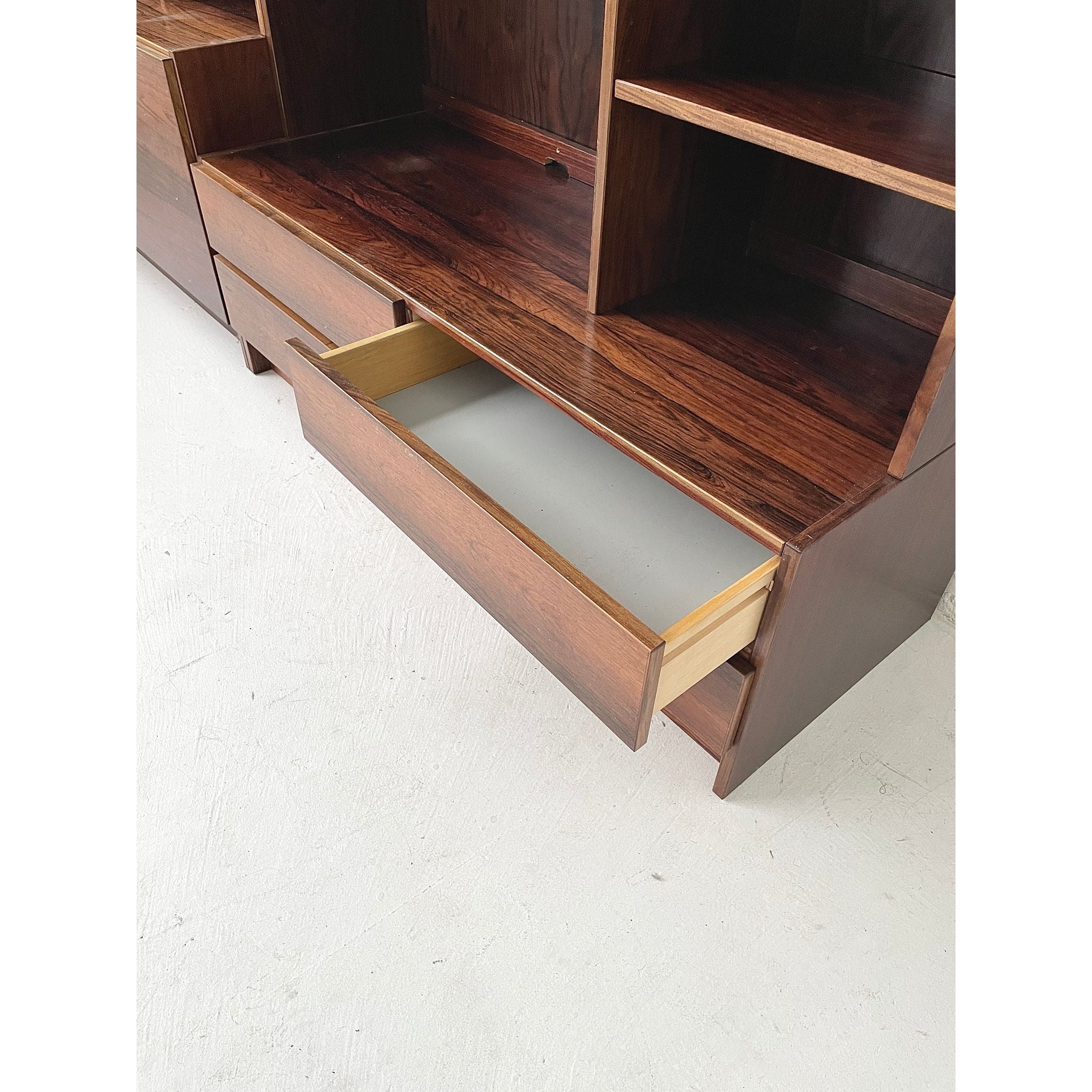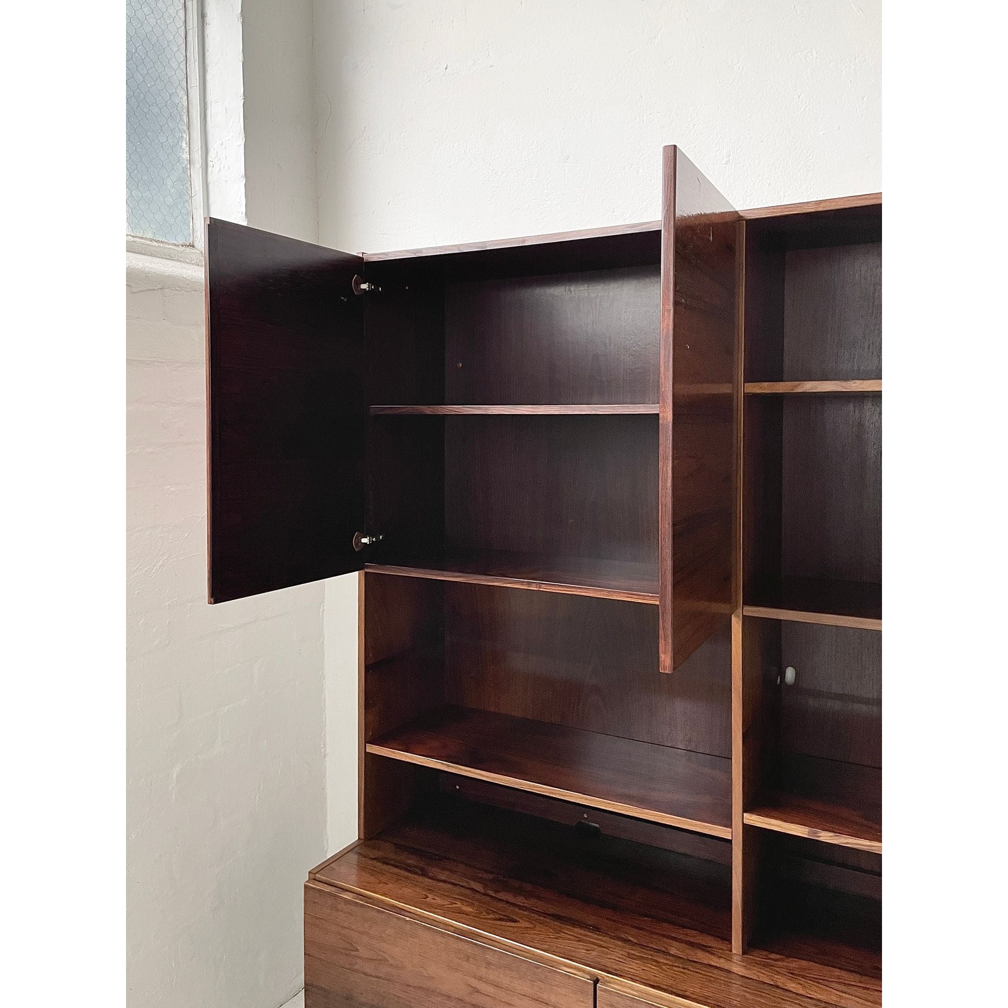 Two-section, four unit Brazilian rosewood wall system. In good original condition.