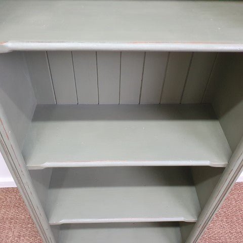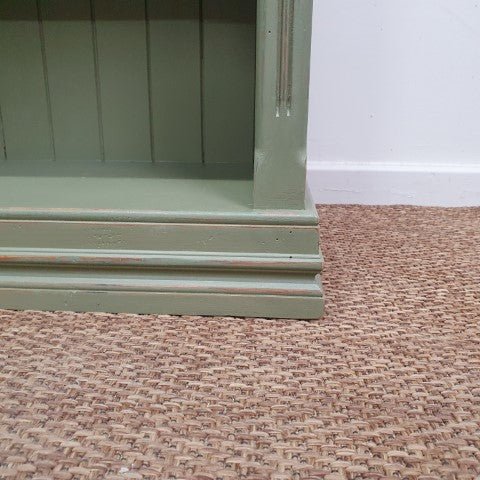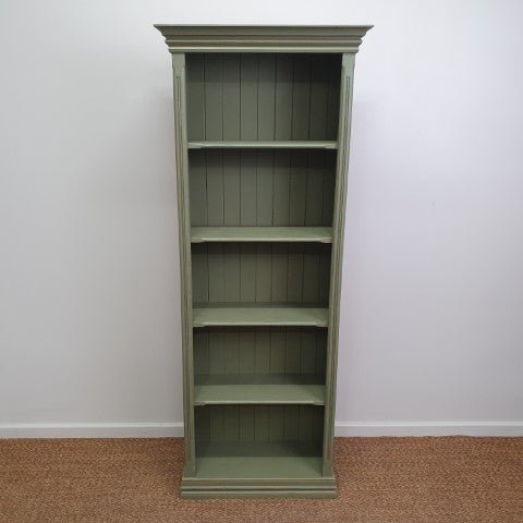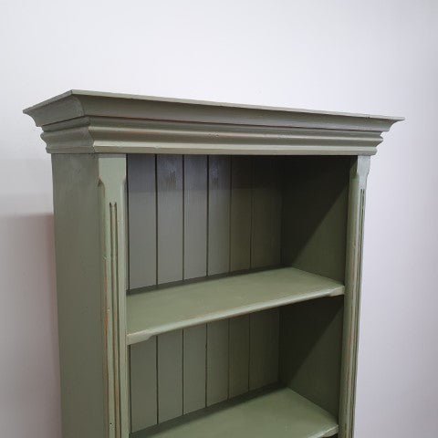 This narrow and tall bookcase is painted by Daniel in Olive Annie Sloan Chalk Paint and lightly distressed for subtle character. Measuring 69.5cm wide, it offers a stylish way to display books, decorative items, or collectibles. Its elegant proportions and timeless design make it a versatile addition to living areas, bedrooms, or hallways.