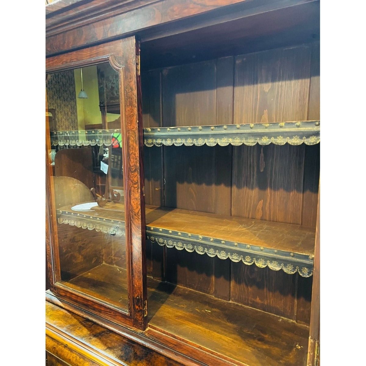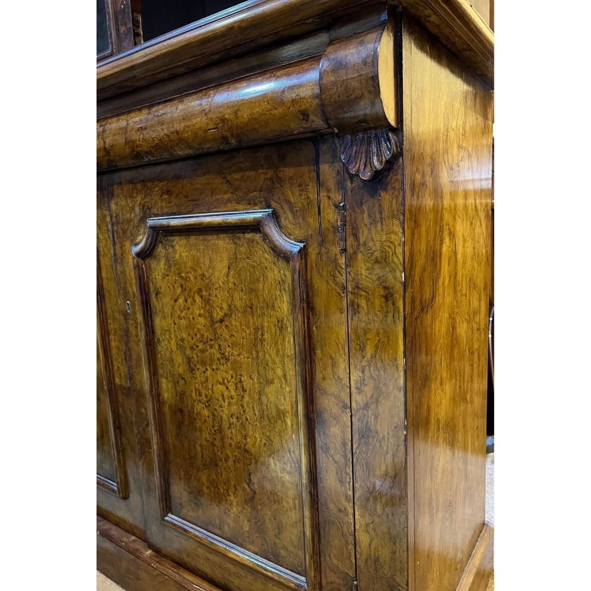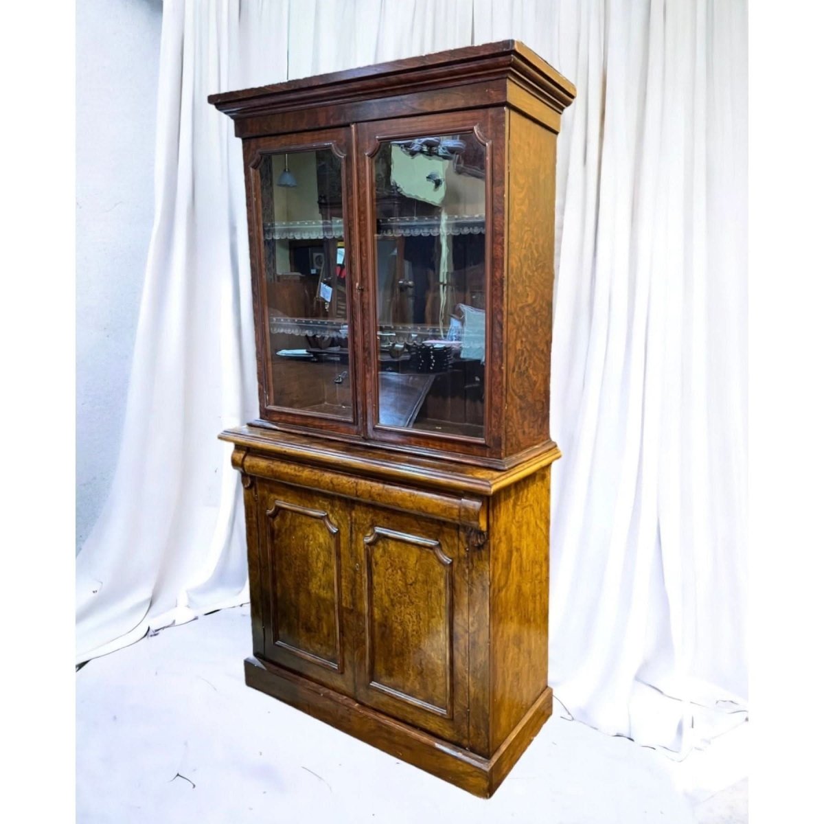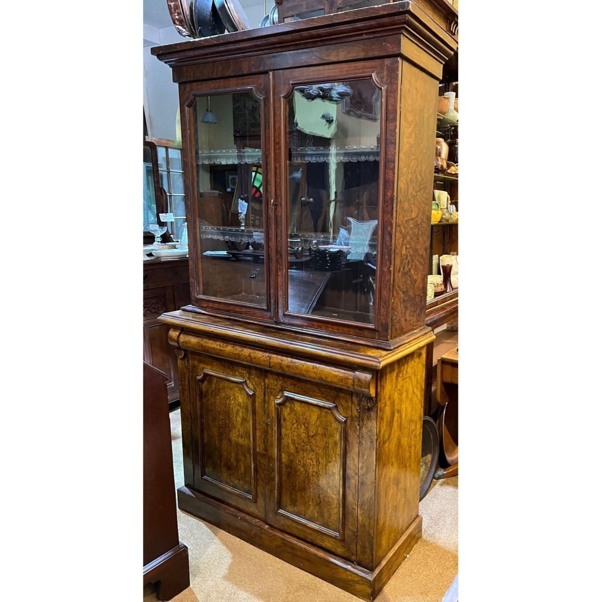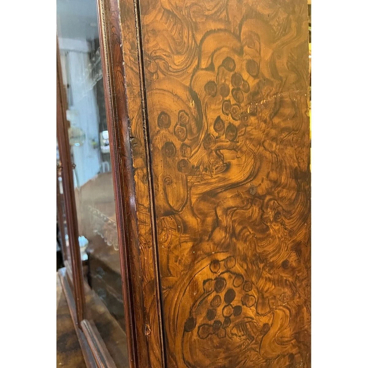 Unusual Victorian bookcase of small size, the pine body with rare painted finish simulating Burr Walnut, the shelves with gilt embossed leather scalloped edging.