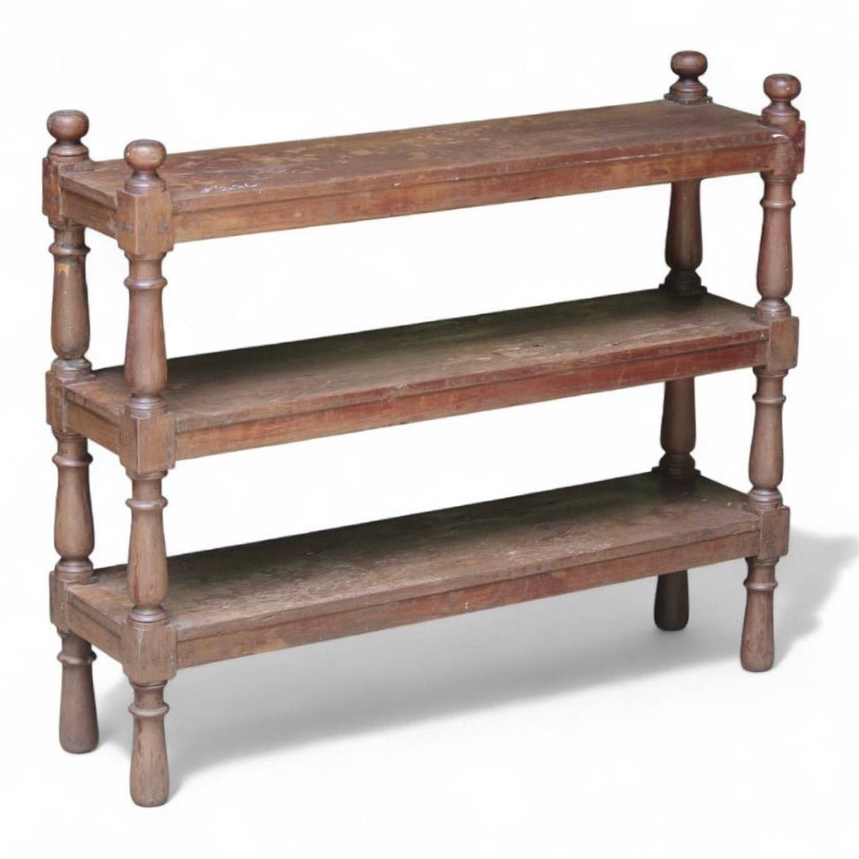 A small vintage three level teak wooden shelf combines practicality with timeless elegance. Made from premium teak wood, it showcases natural beauty and long-lasting strength. Its robust build provides dependable support for your items, perfect for enhancing any room—whether in your living area, bedroom, or workspace. Designed with versatility in mind, it fits effortlessly into a variety of interior styles.