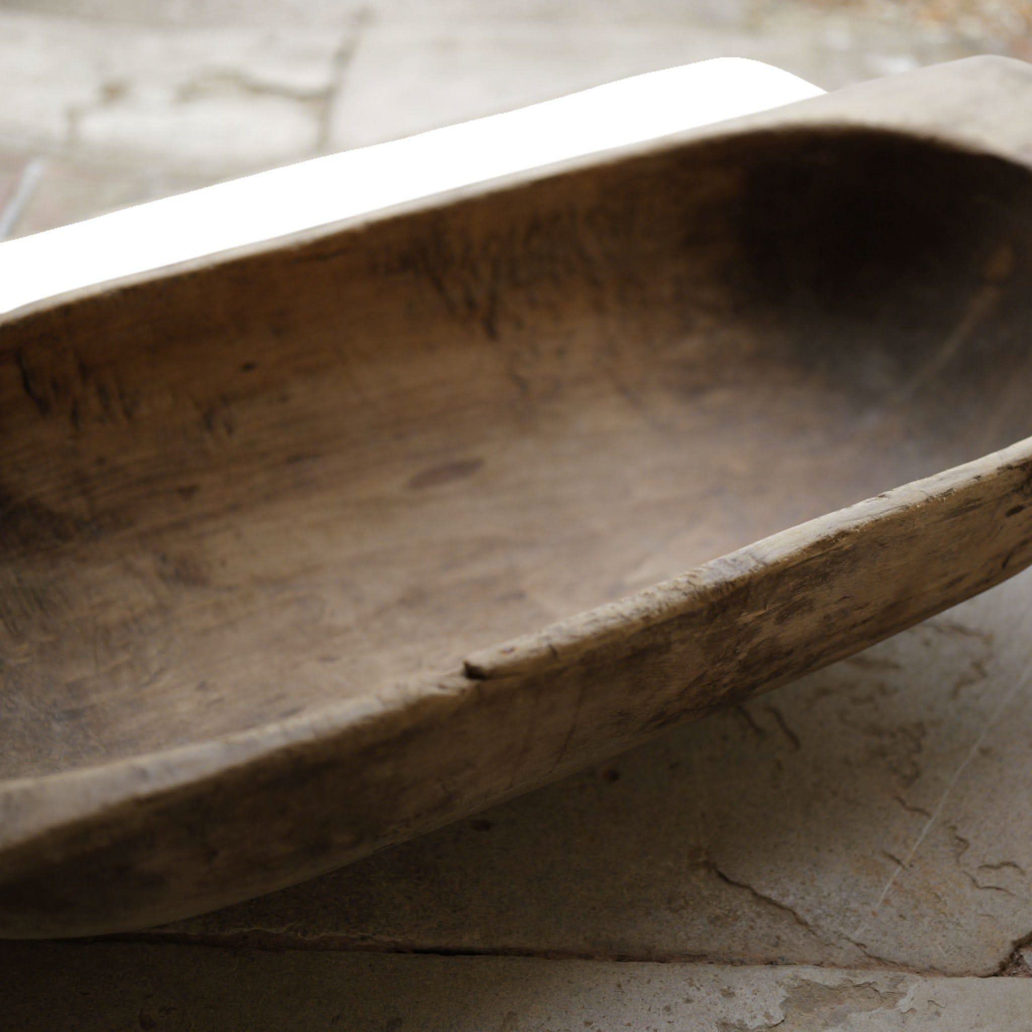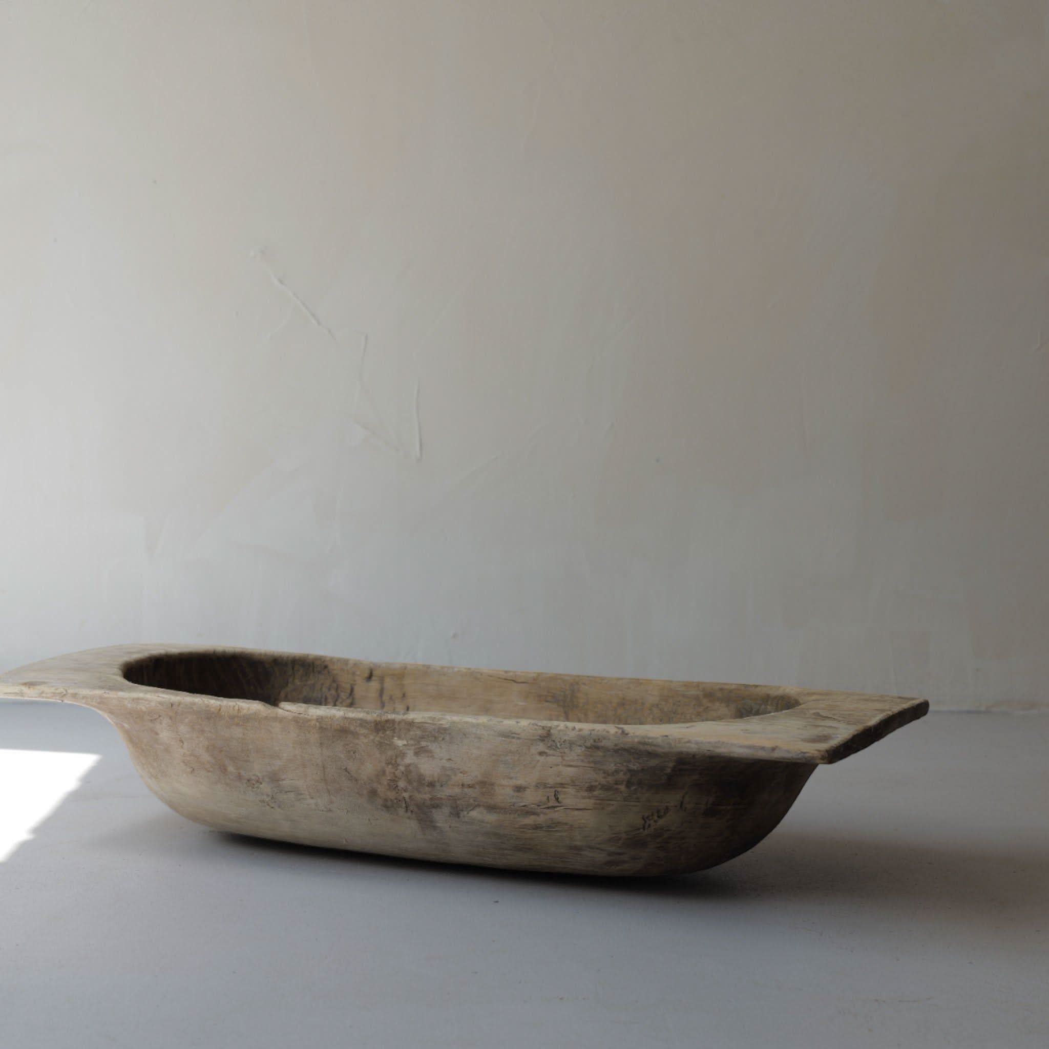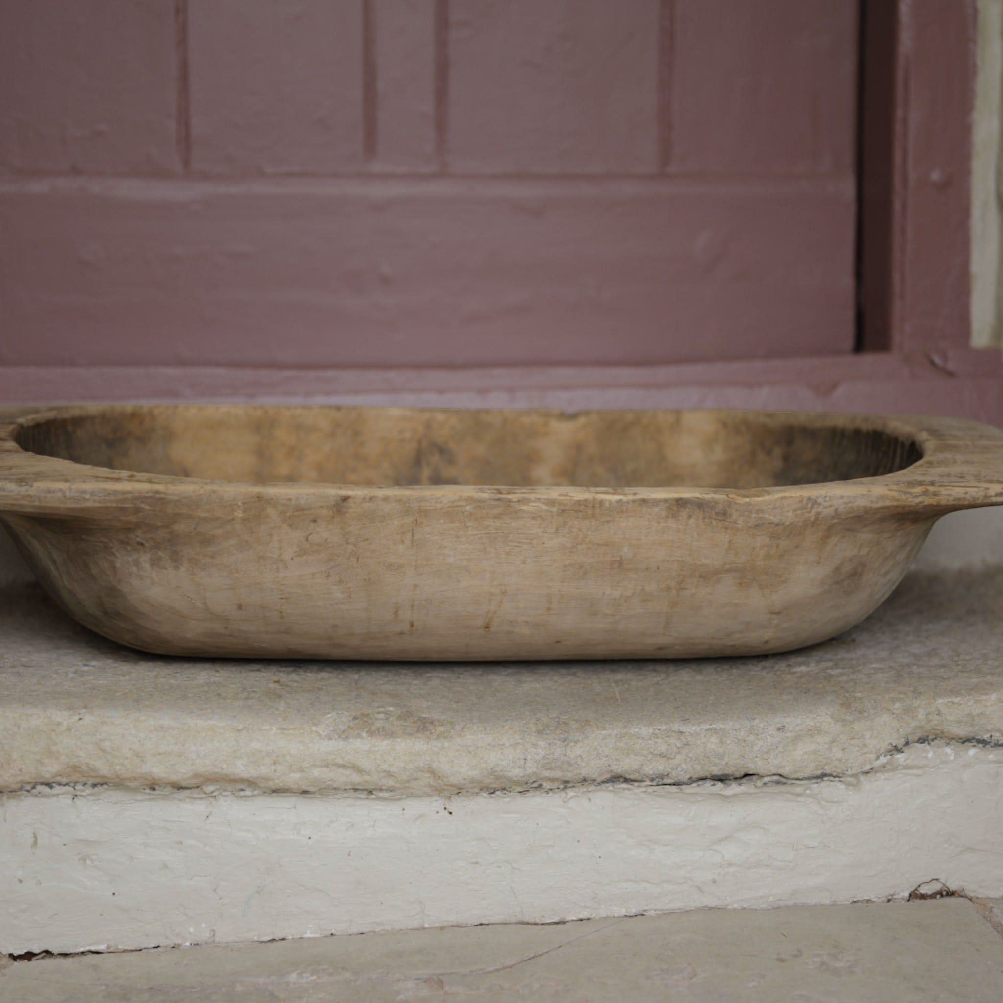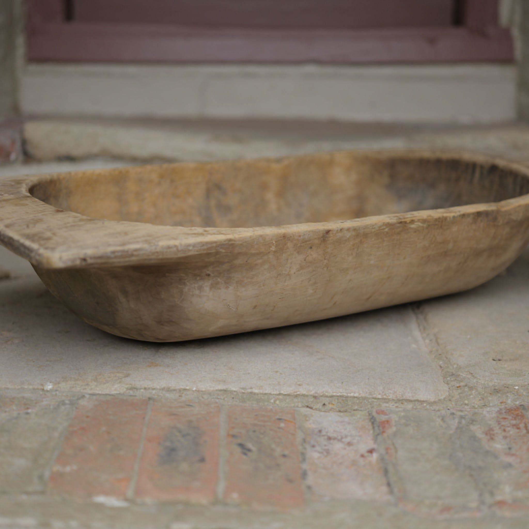 Discover this exceptional antique Hungarian dough bowl from the early 1900s - a magnificent example of traditional European folk craftsmanship that brings timeless character to modern interiors. This large hand-carved wooden bowl measures an impressive 90cm in length, making it a commanding statement piece for any home.