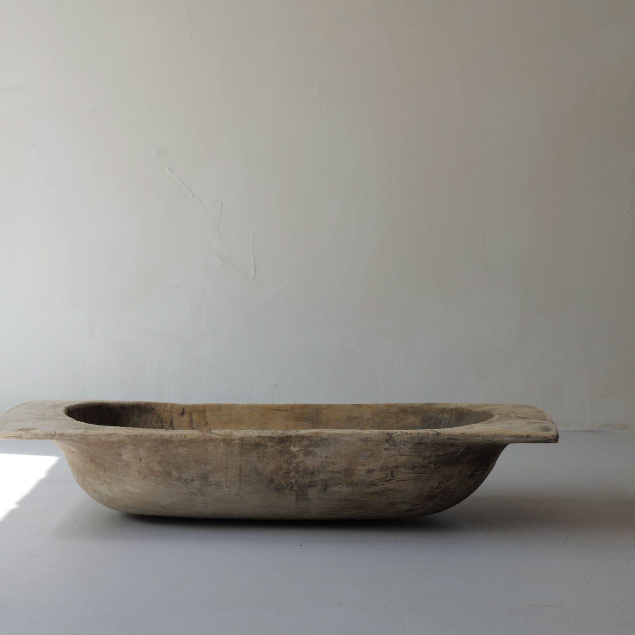Originally crafted as a functional vintage dough bowl for mixing and kneading bread in traditional Hungarian households, this primitive wooden bowl showcases the exceptional skill of early 20th-century artisans. The hand-carved construction and rich, characterful patina tell the story of over a century of history and authentic use.