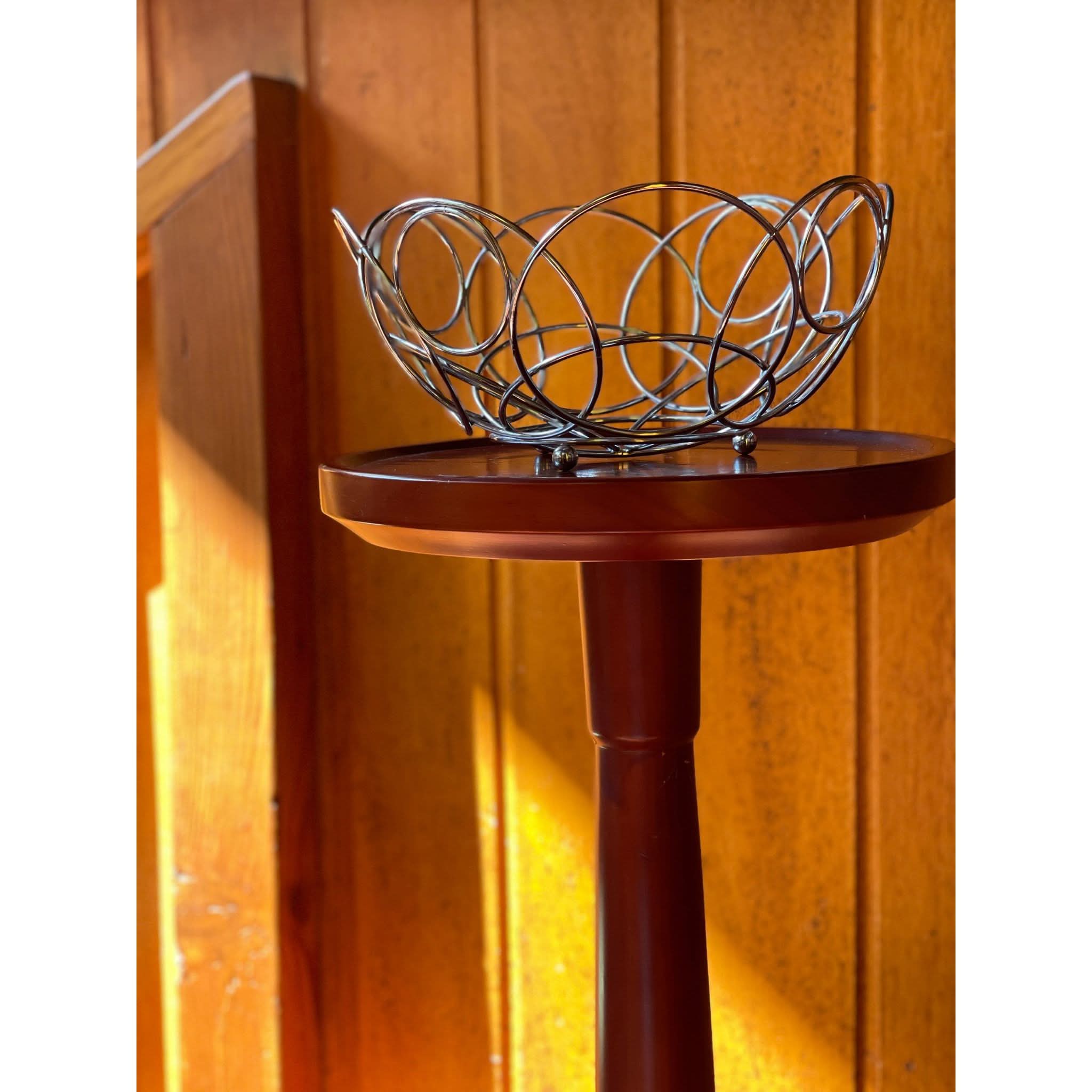 circle wire bowl on feet, perfect for a fruit bowl or as a sculptural piece