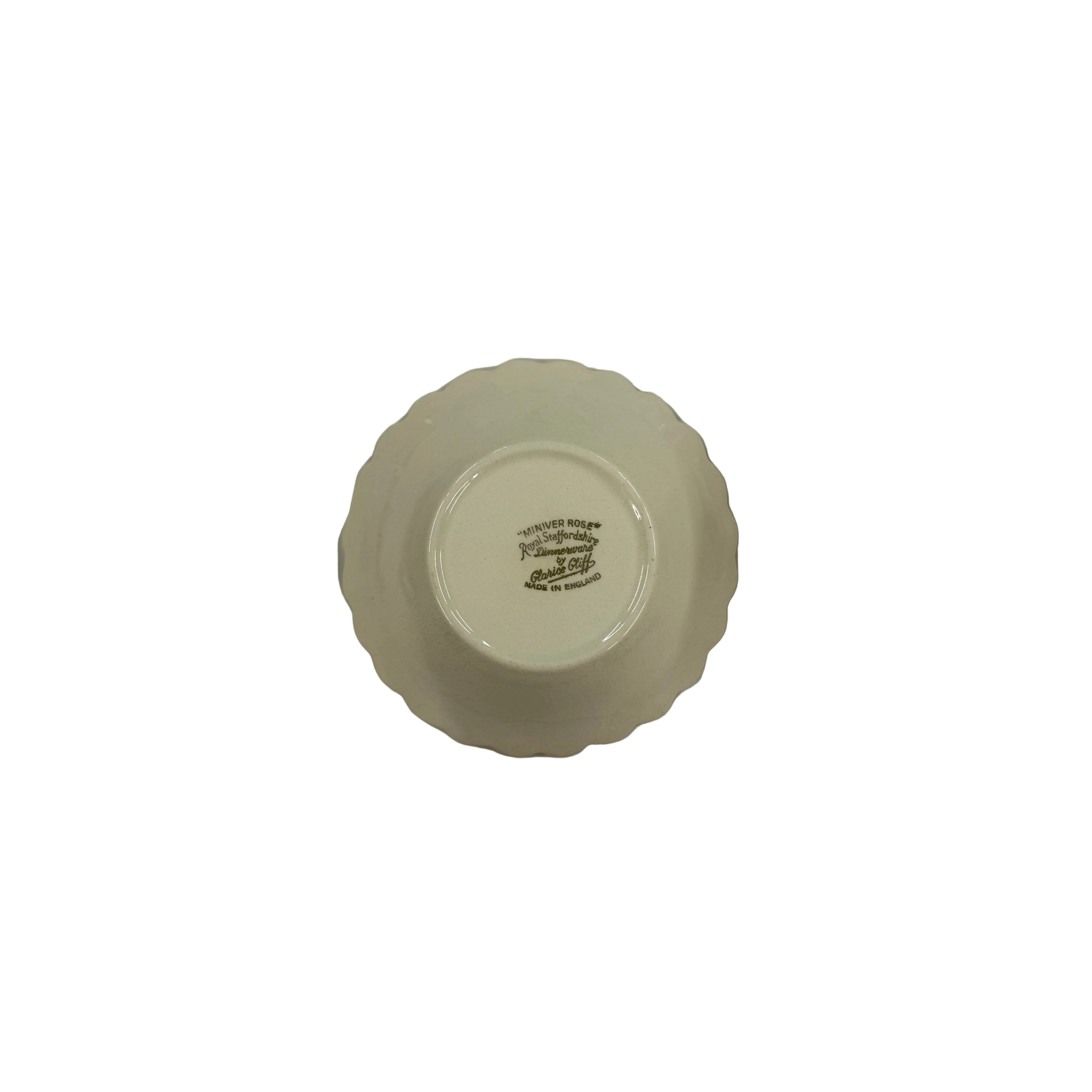 This distinguished ceramic dish set from Royal Staffordshire showcases the celebrated artistry of Clarice Cliff. Each of the two pieces features hand-painted pink roses blooming across a creamy ivory surface, complemented by an elegant gold rim. Crafted from quality ceramic, these dishes reflect the distinctive style that made Clarice Cliff a pioneer in British pottery design. Ideal for collectors and those seeking authentic vintage tableware with enduring aesthetic appeal.