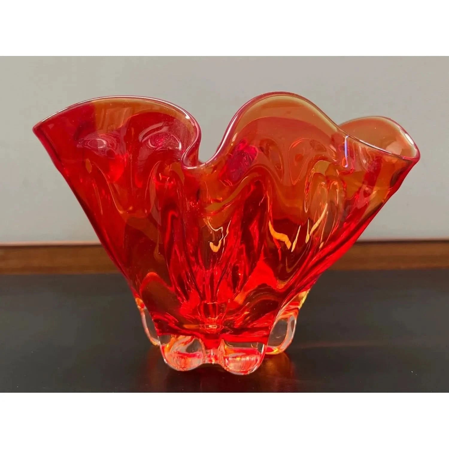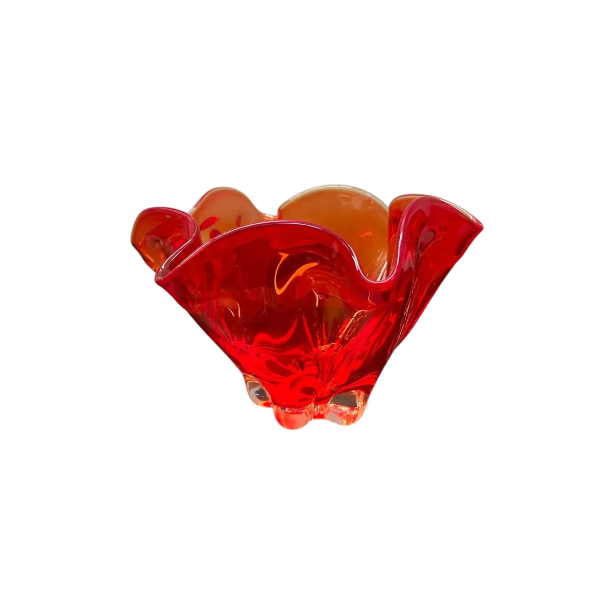 Vintage 6-Petal stretch glass bowl, often referred to as swing glass vase or handkerchief bowl.