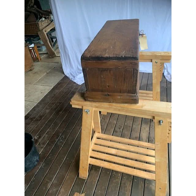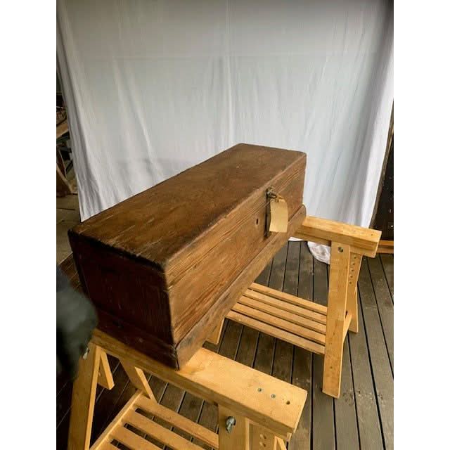 A sturdy 19THC rustic carpenter's chest complete with 5 English Beech moulding planes and 2 small beech block planes stored inside.