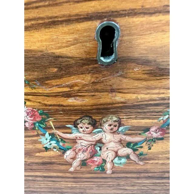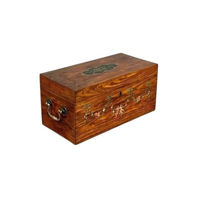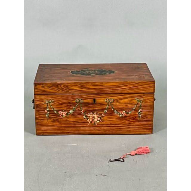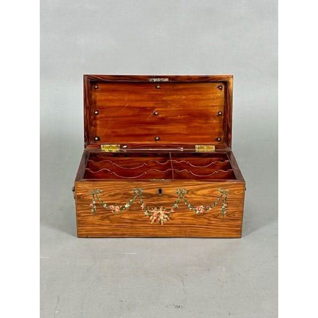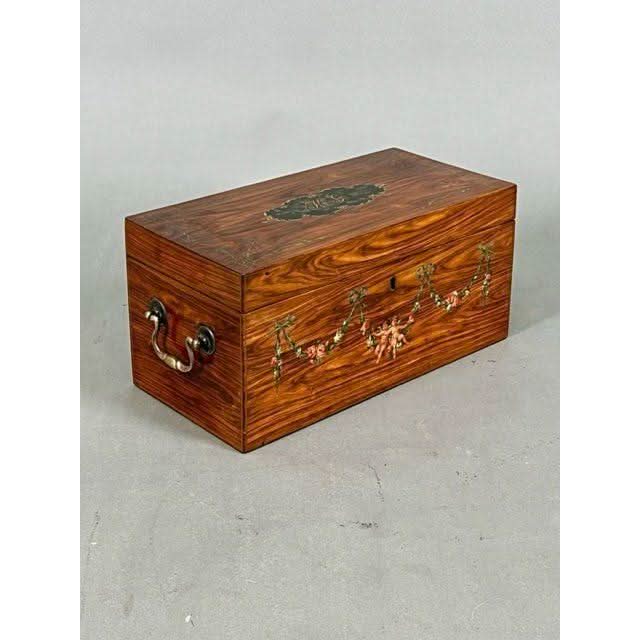 This is a beautiful Box of rectangular form in the simple Georgian later 1700s manner. It is made from attractive and prestigious imported Satinwood and then Hand Painted in the Angelica Kauffman manner.