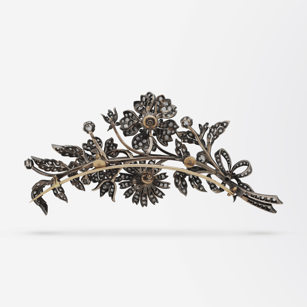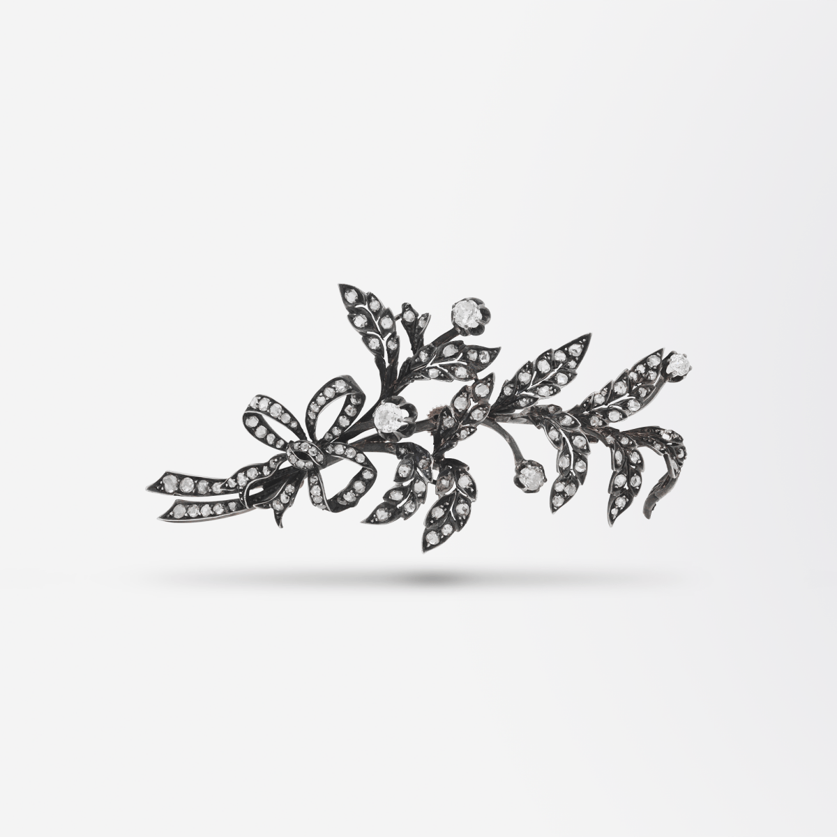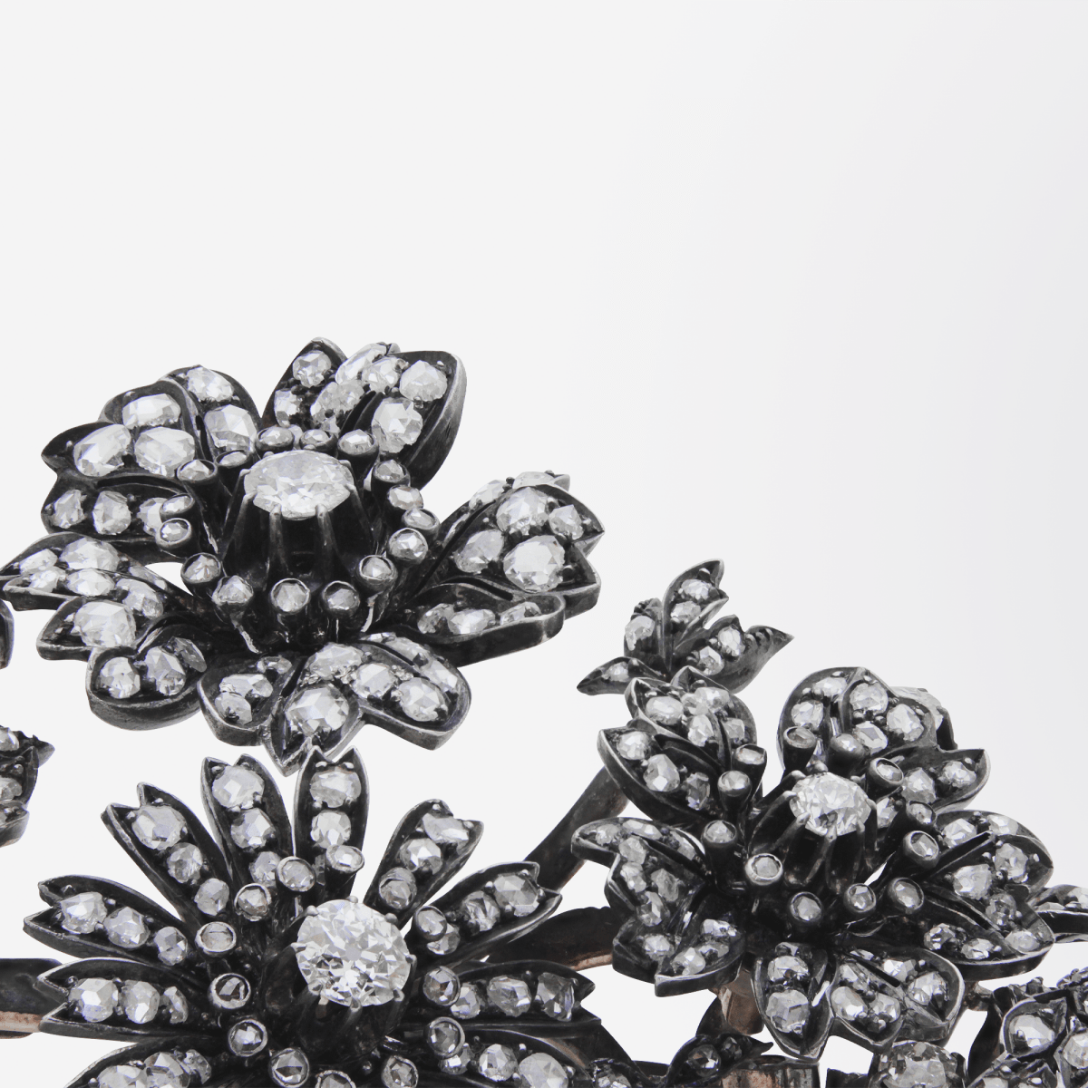 'En Tremblant', a French term meaning 'to tremble', was first used to describe 18th and 19th century jewellery where parts of the diamond set pieces were attached to a spring loaded 'trembler', to create movement in the jewel when worn. The old and rose cut diamonds with the addition of movement would have reflected candlelight in the 18th and 19th century beautifully.