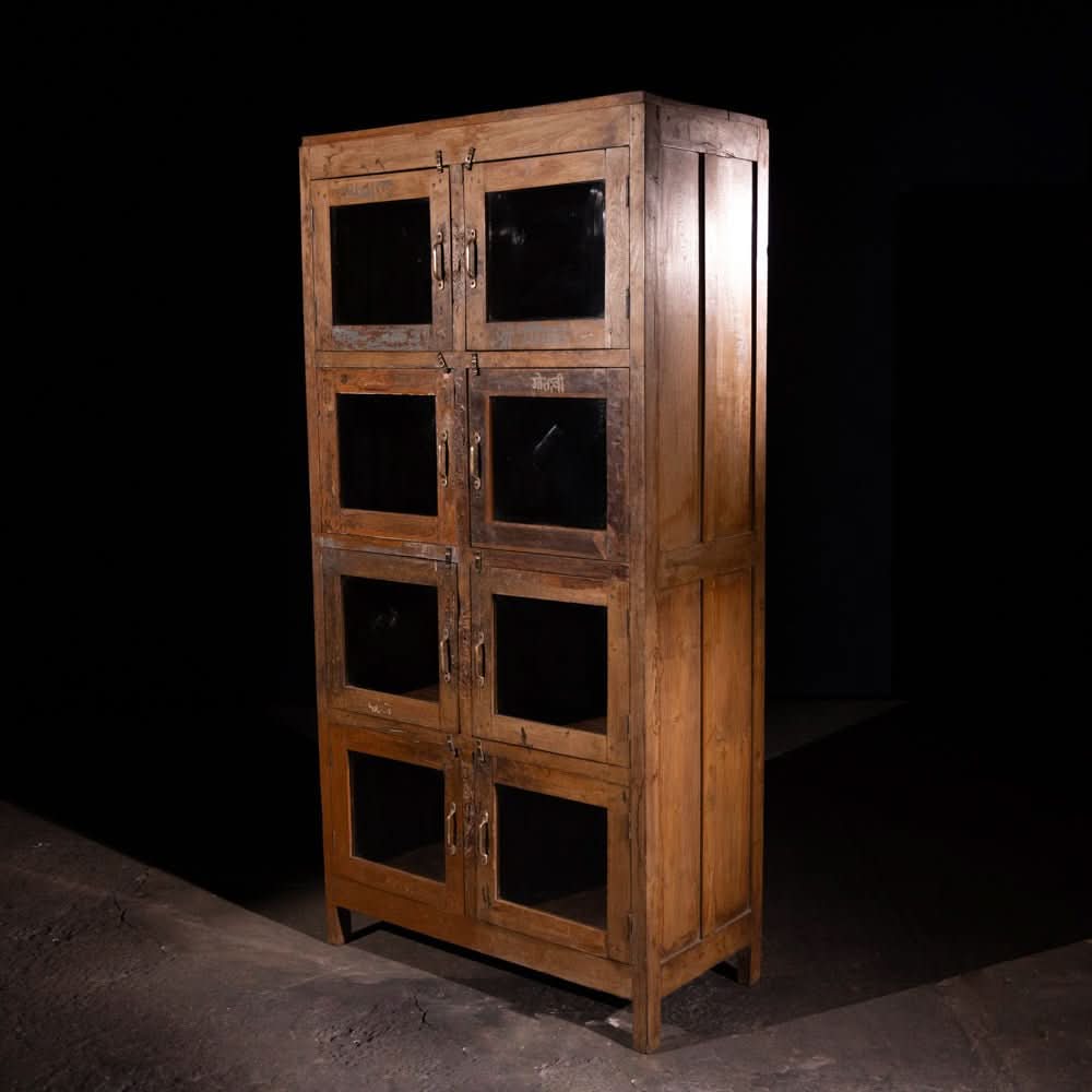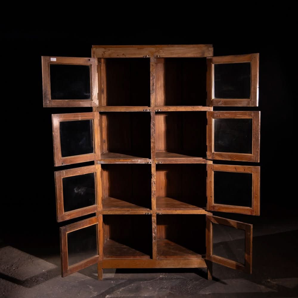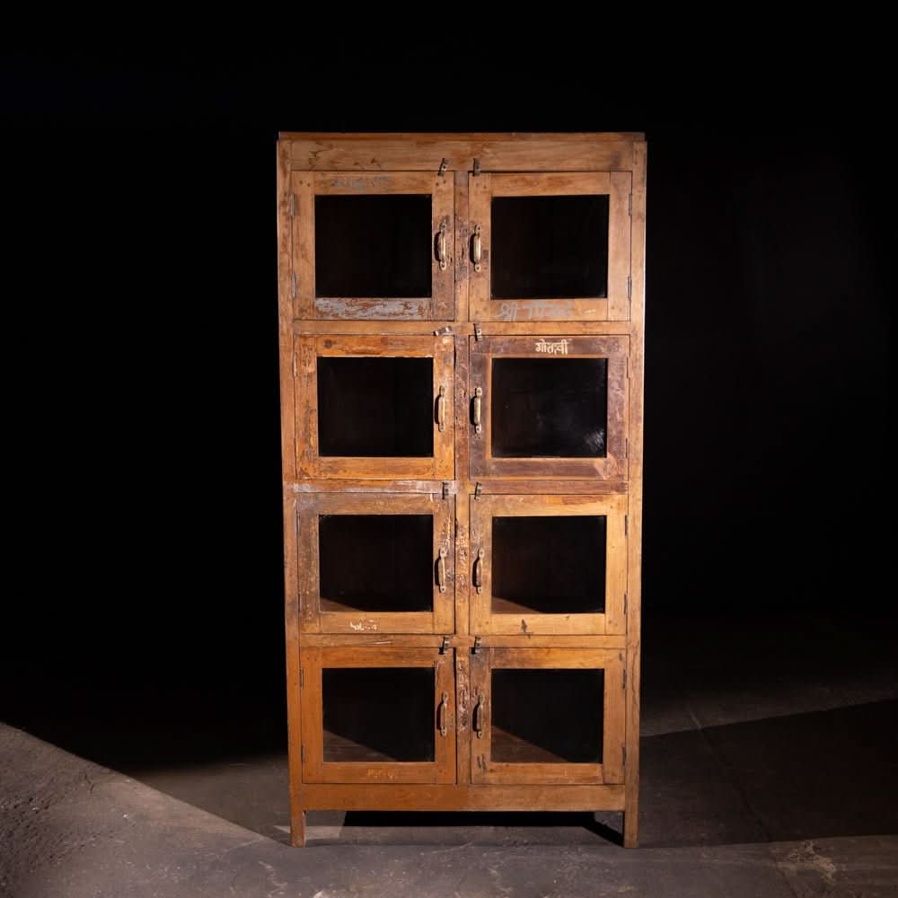 Gorgeous vintage wooden cabinet with eight glass fronted doors.