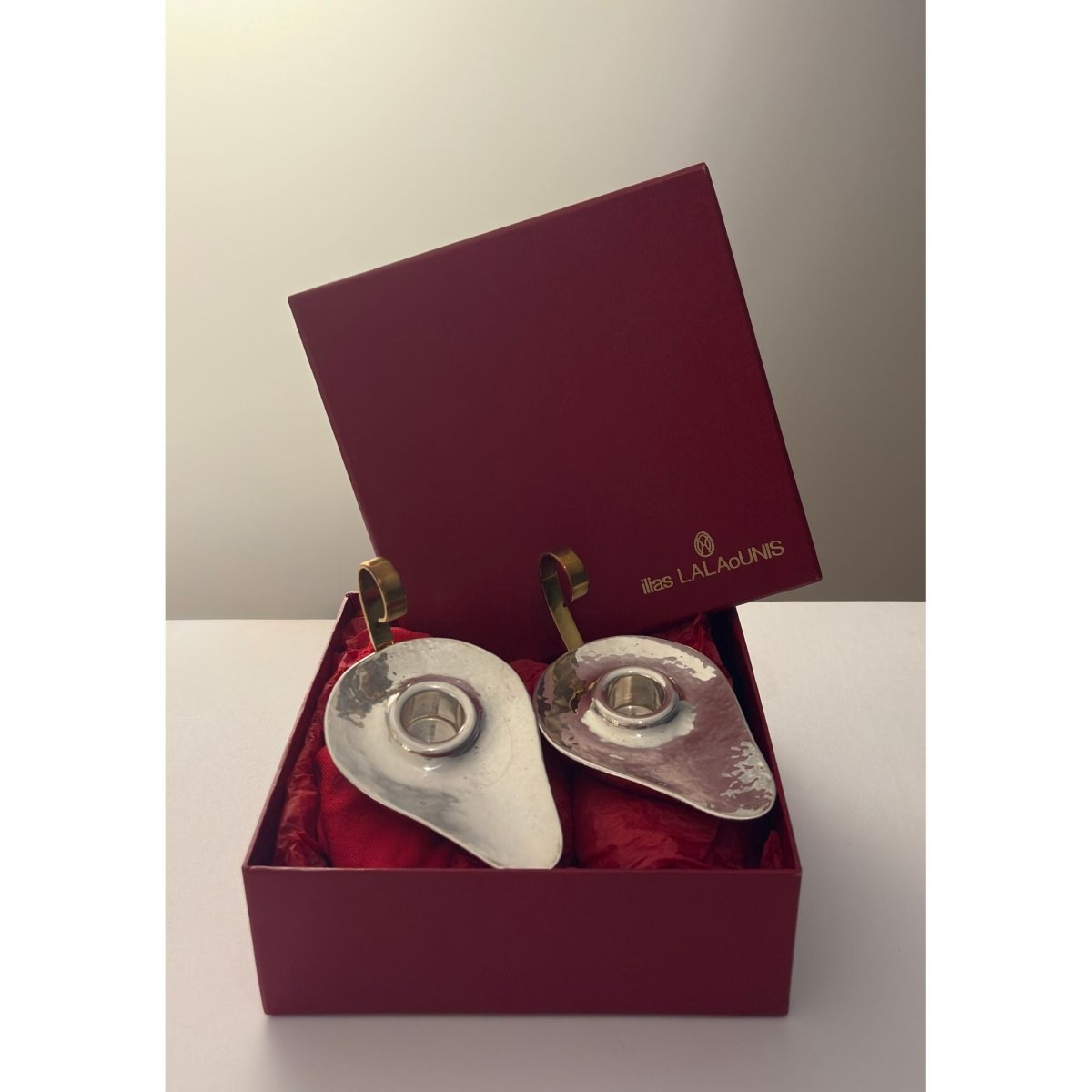 This particular antiquity inspired model appears uncommon in the secondary market, especially as a matched boxed pair. While Lalaounis candlesticks are documented, this exact model is seldom encountered.
