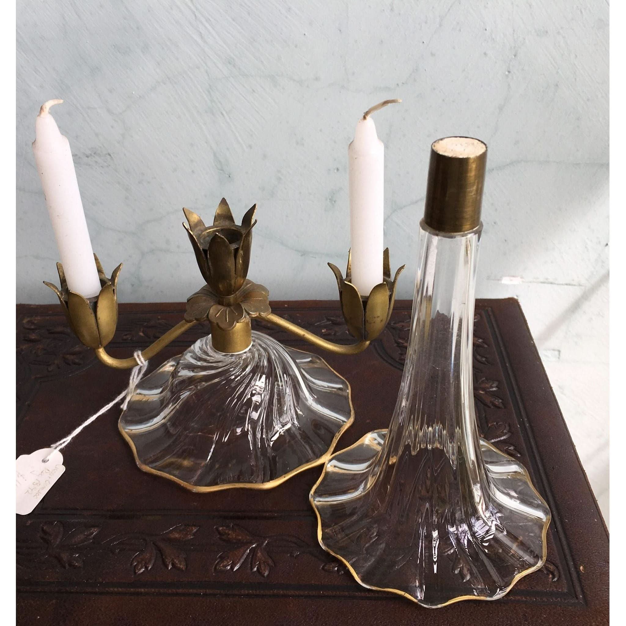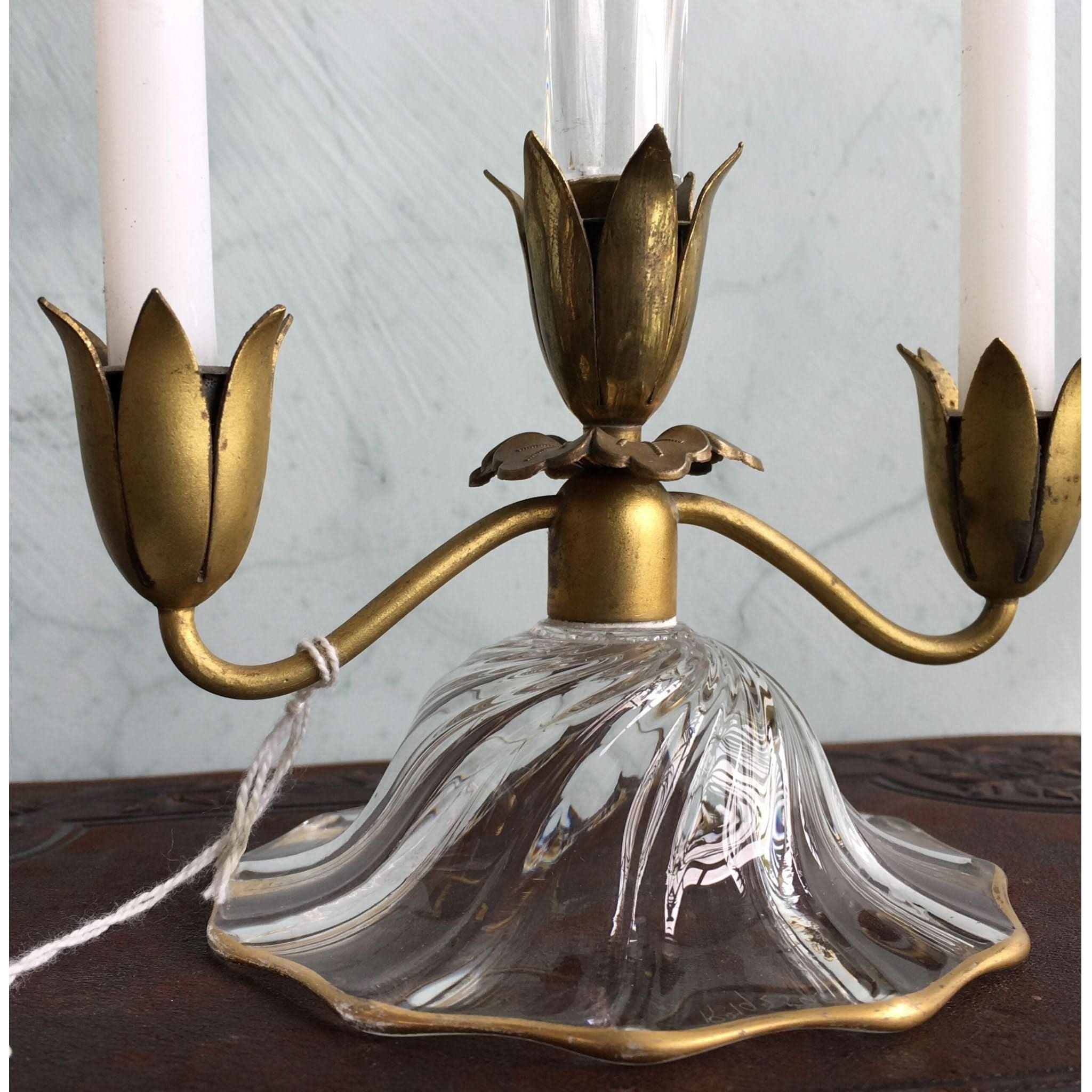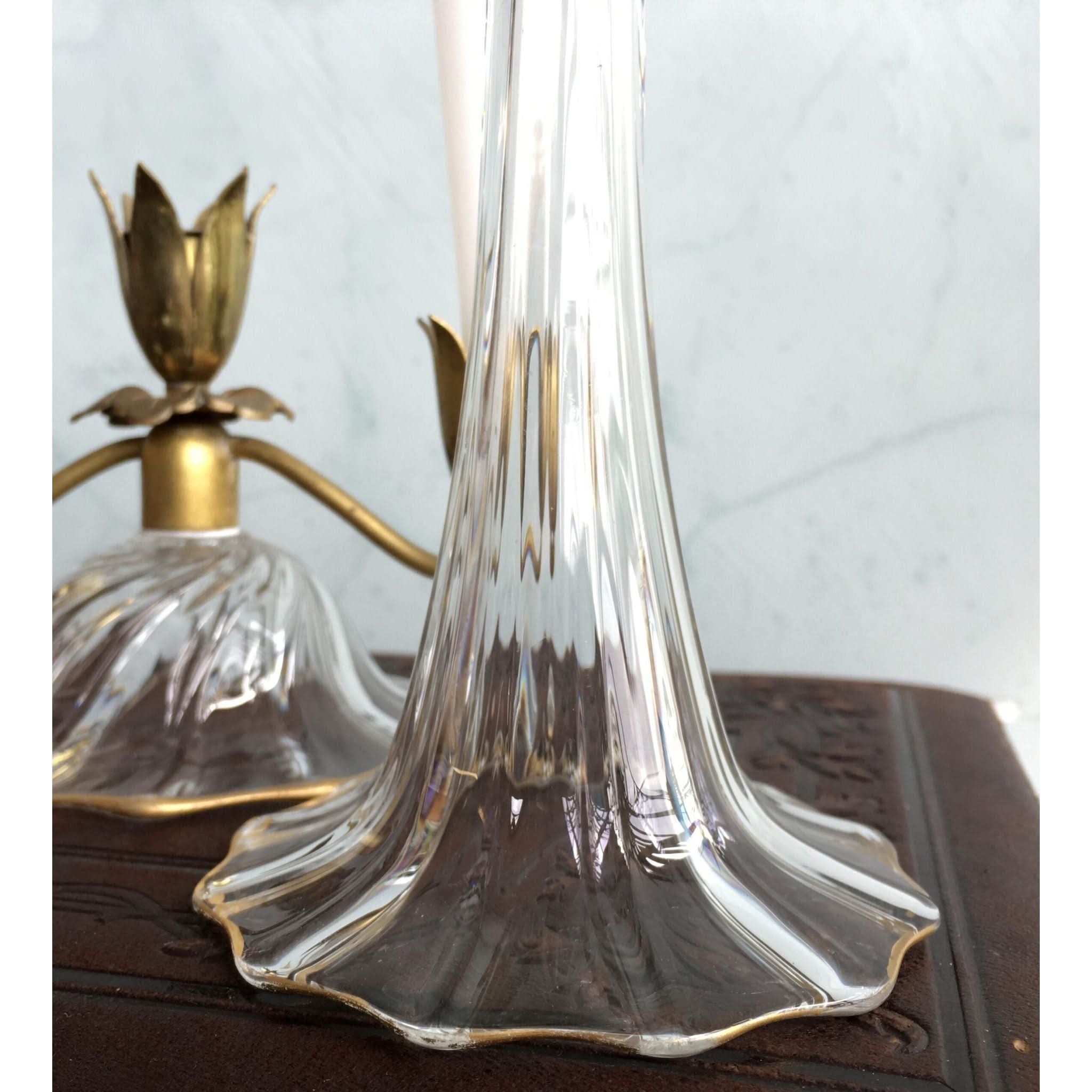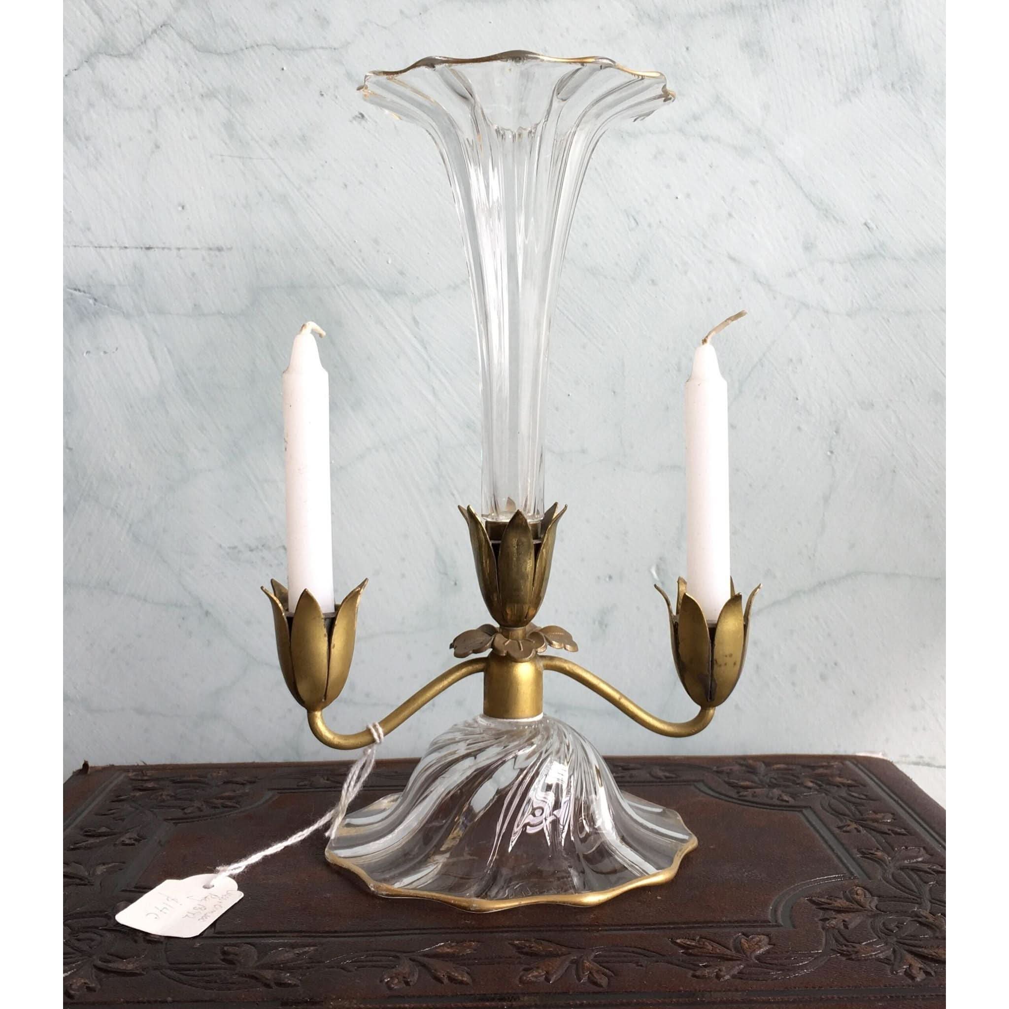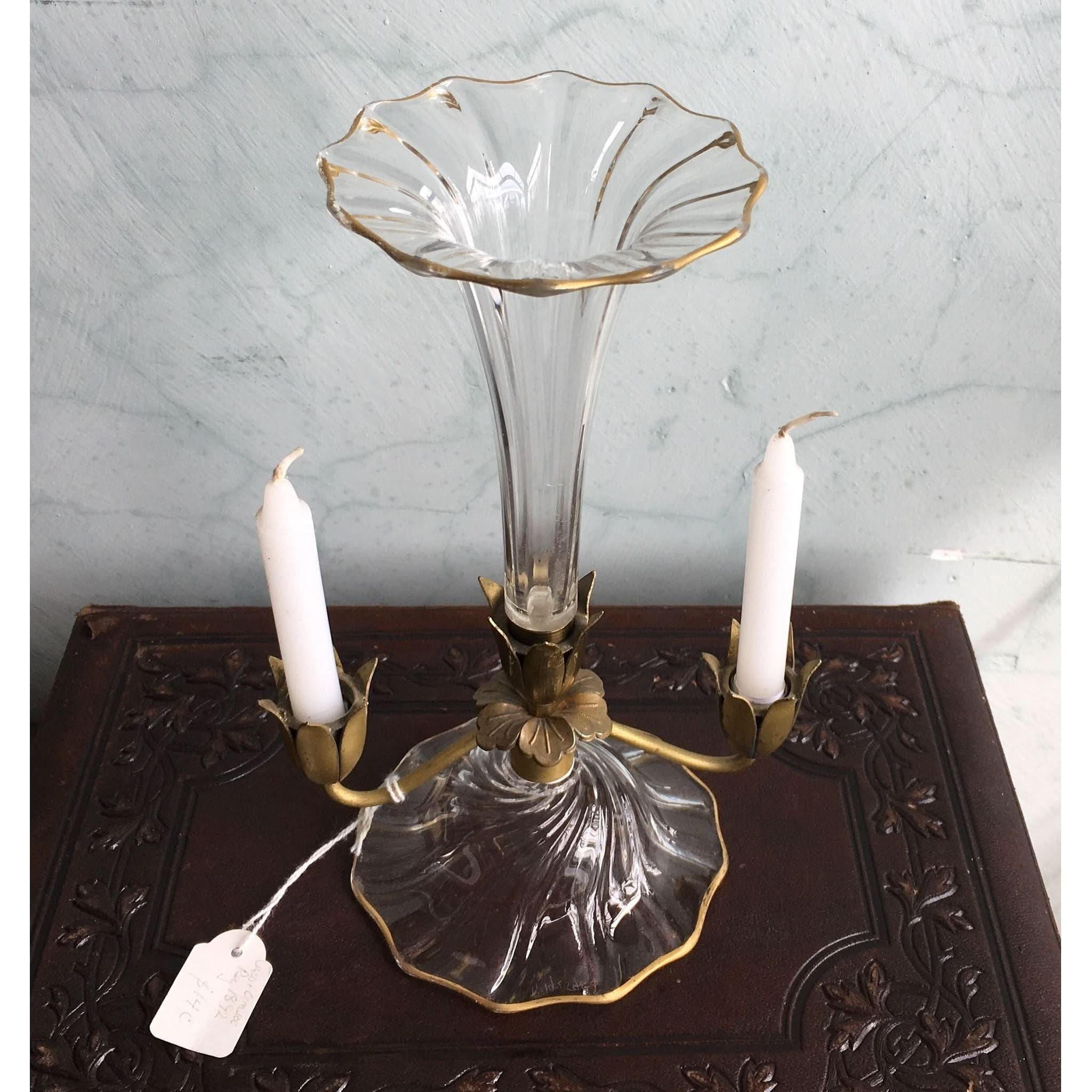 Unusual Victorian specimen vase, the glass foot & trunk fluted with gilt rim, mounted midway with a three branch ormolu fitting consisting a double candlestick with flower sconces. Registration no. 192595, for 1892