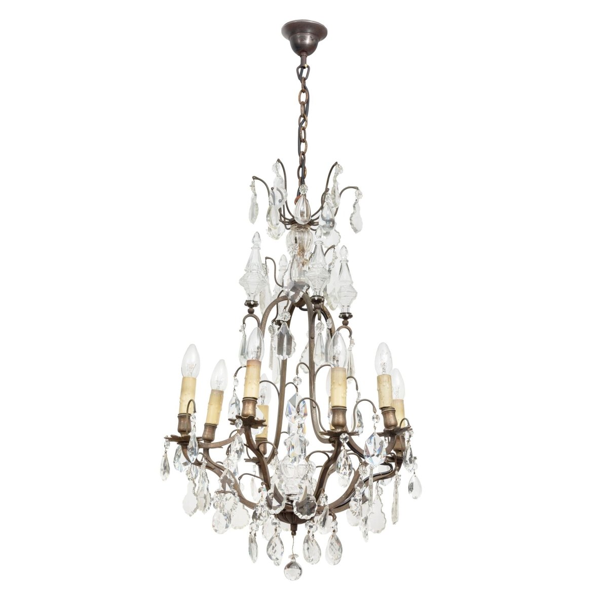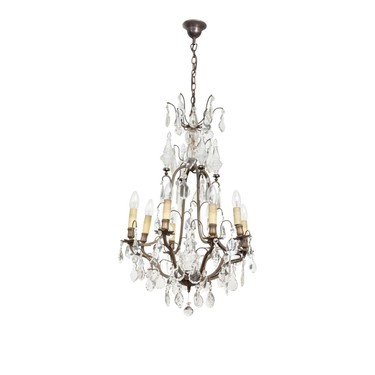 An elegant eight branch Parisian chandelier, French 19th Century with 5 glass obelisks, restored and re-wired to Australian Standard