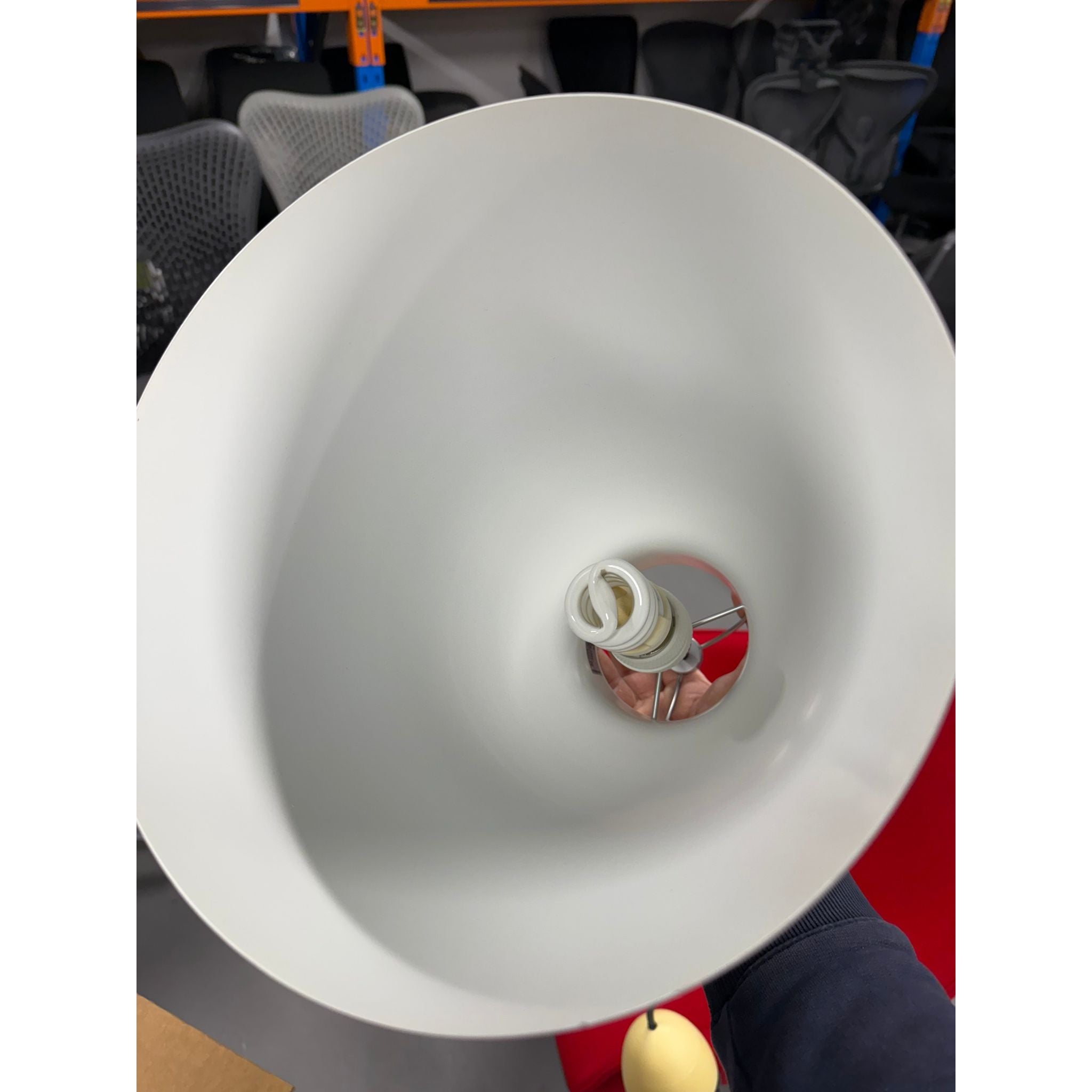 The high-gloss lacquered aluminium shade provides directed, glare-free downward light, while a subtle opening at the top allows light to glow upwards, adding ambience and depth to the room.