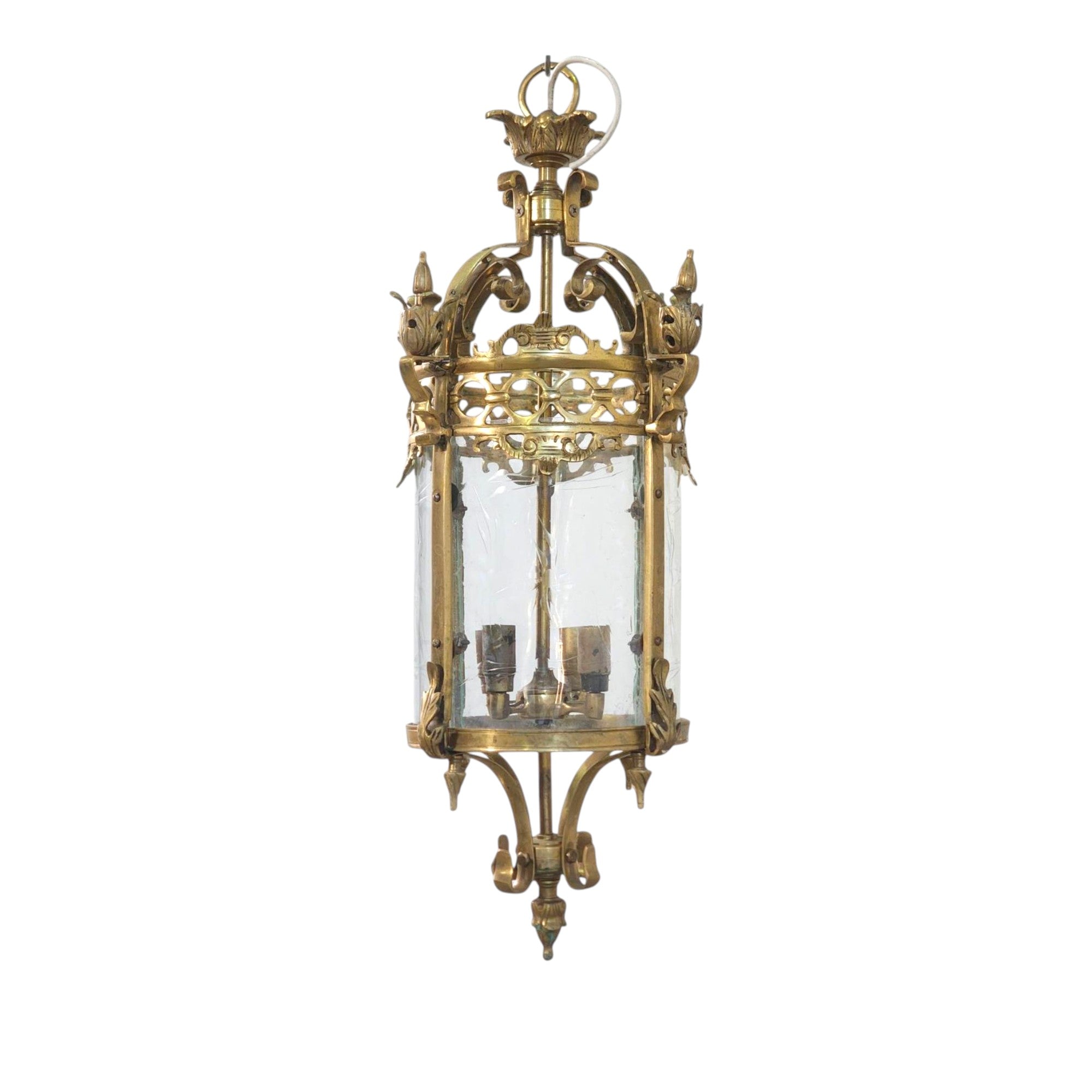 French Gothic Stair Vault Lantern Chandelier with decorative etched glass.