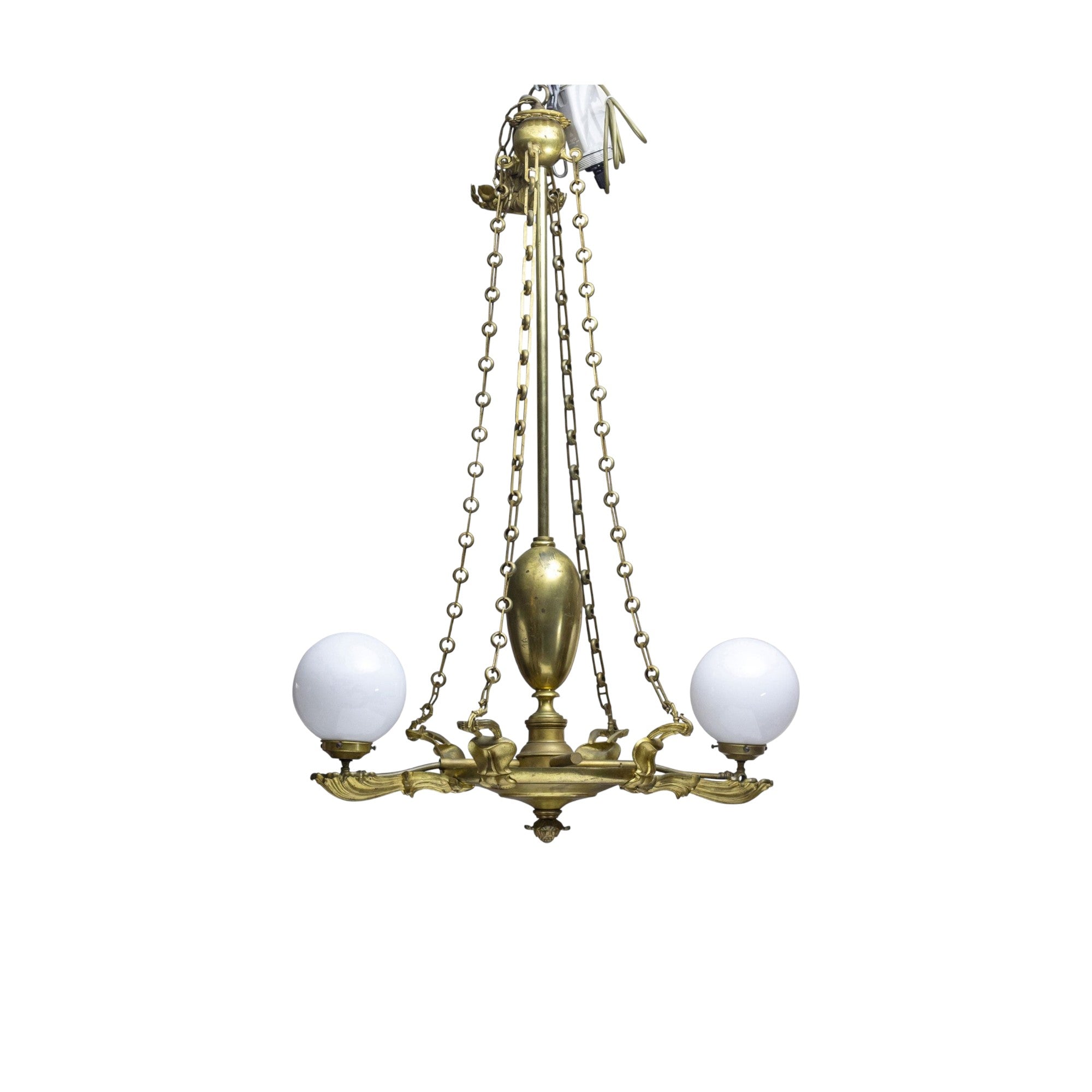An elegant Georgian period brass gasolier lamp that has been converted to a ceiling light with Australian standard wiring. As much of the original piece has been left intact as possible including the gas pipes mounted to the frame, circa 1830s.