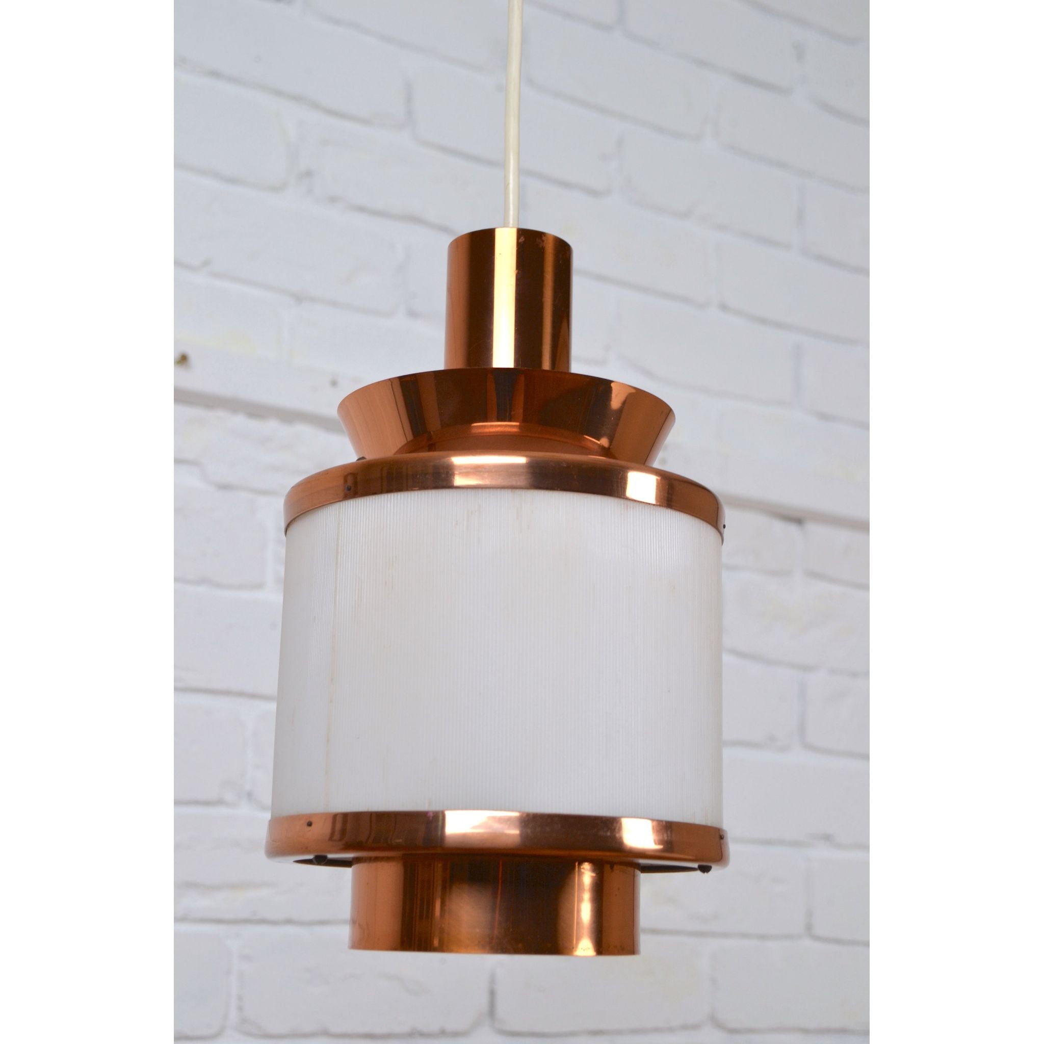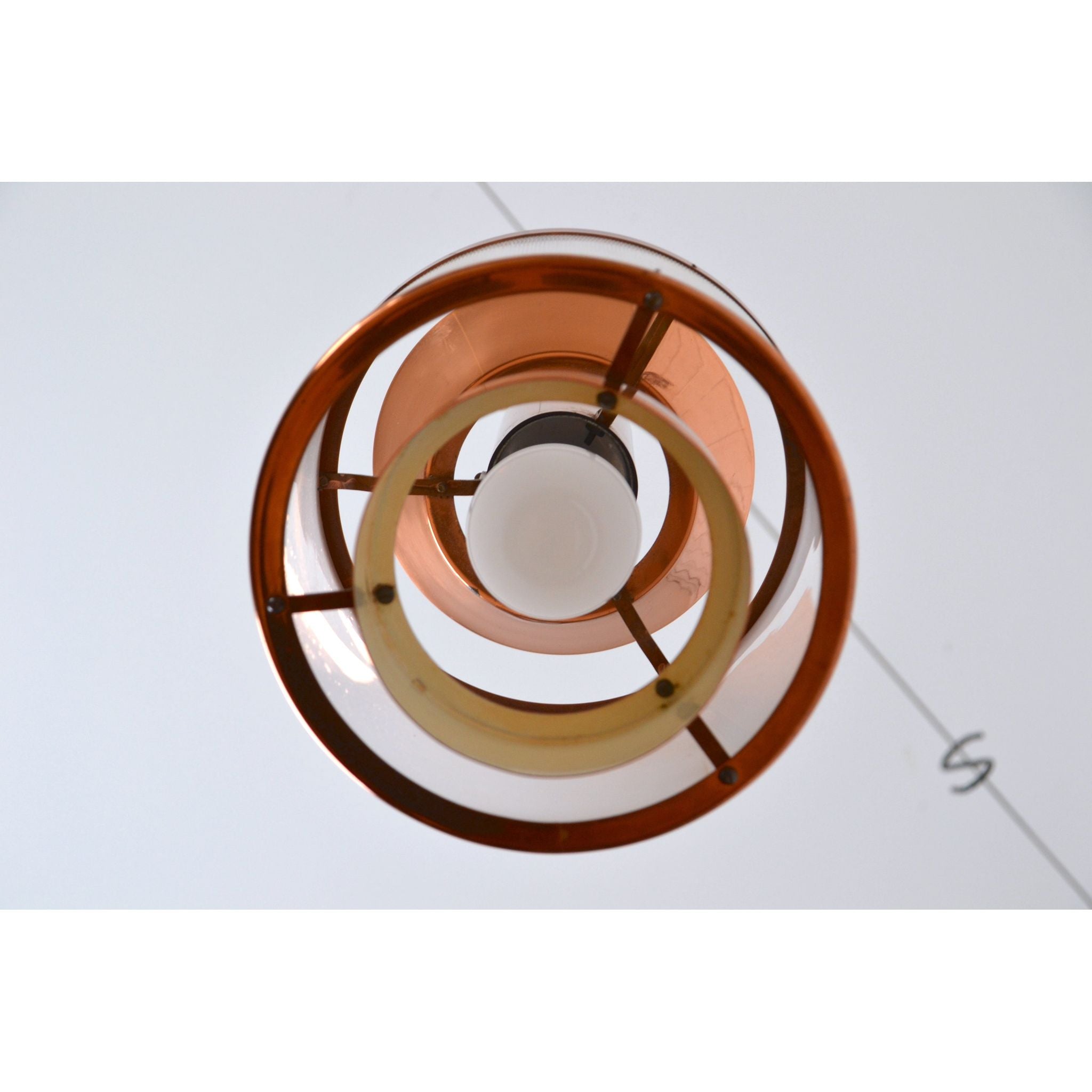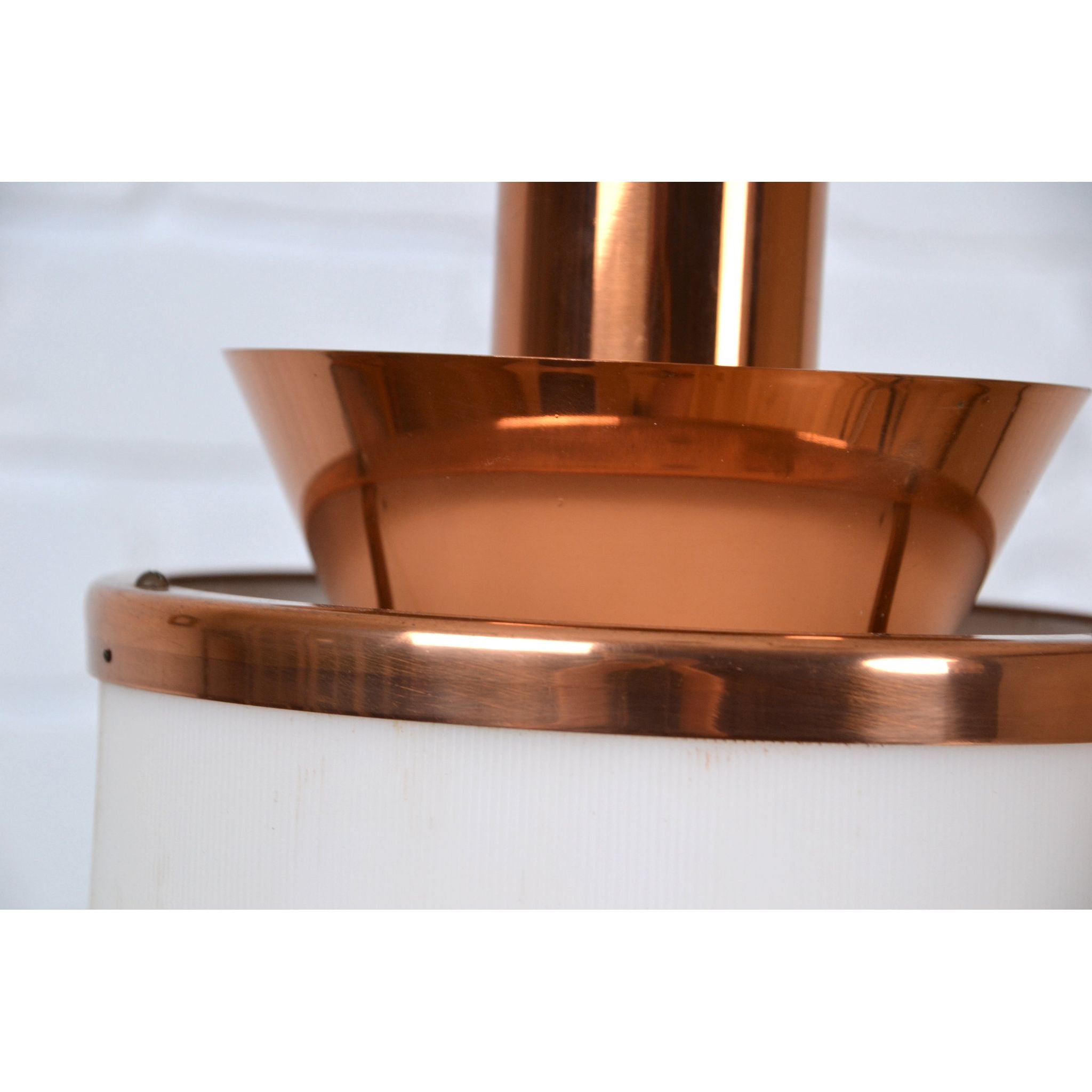 Vintage medium layered pendant light by Teknika, Denmark. Cooper construction with Plexiglass shade.