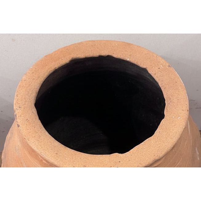 This original, solid and heavy vessel is exactly as shown. Originally used to store olive oil, it’s a one-of-a-kind piece that has weathered uniquely over time. Gathered layers of sediment paint and patina make it a stunning display piece.