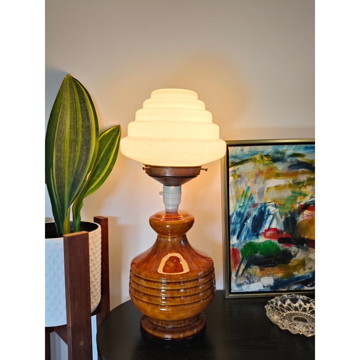 Excellent condition. No chips or cracks on base and shade is great condition. The shade is free. Sale includes choice of one glass shade as shown.