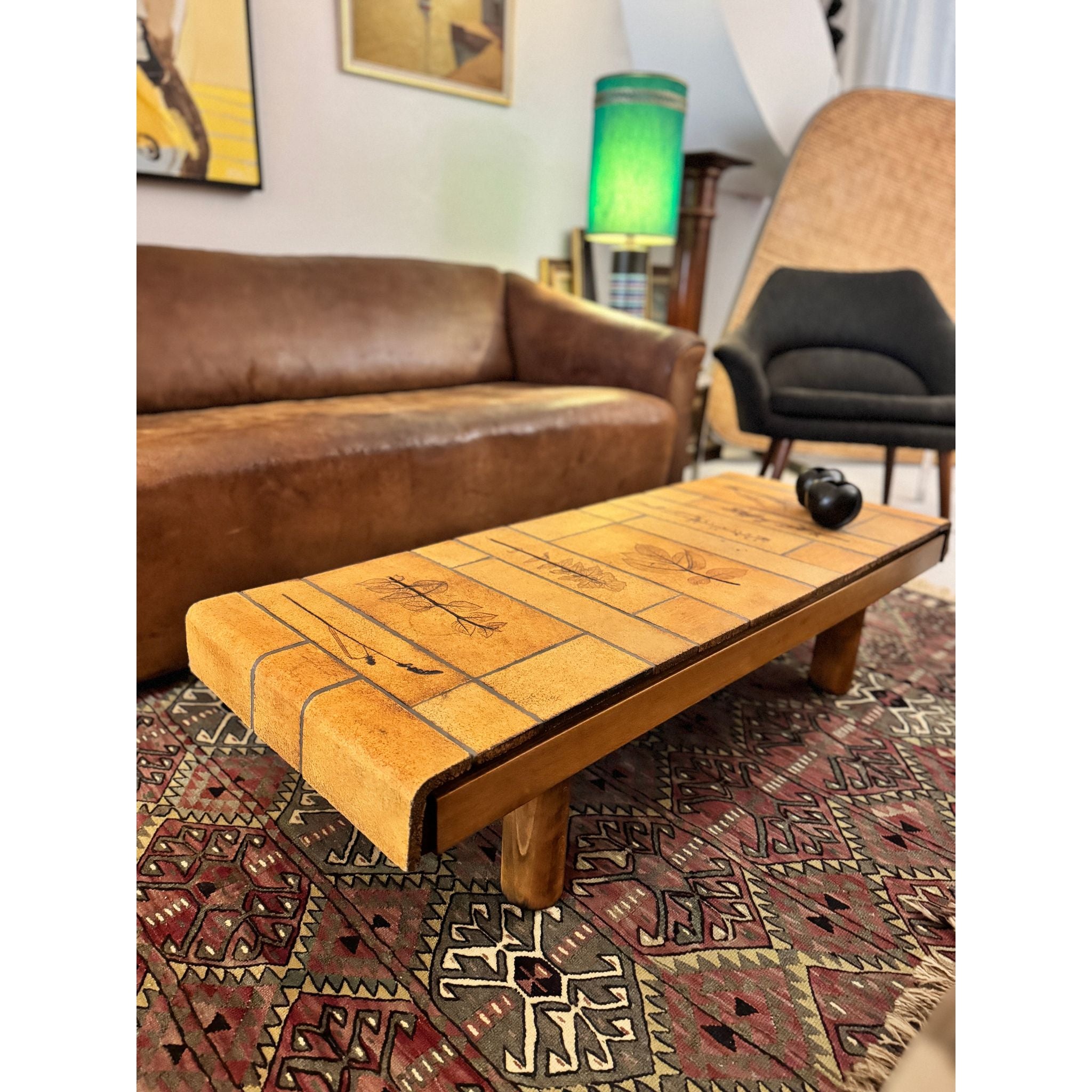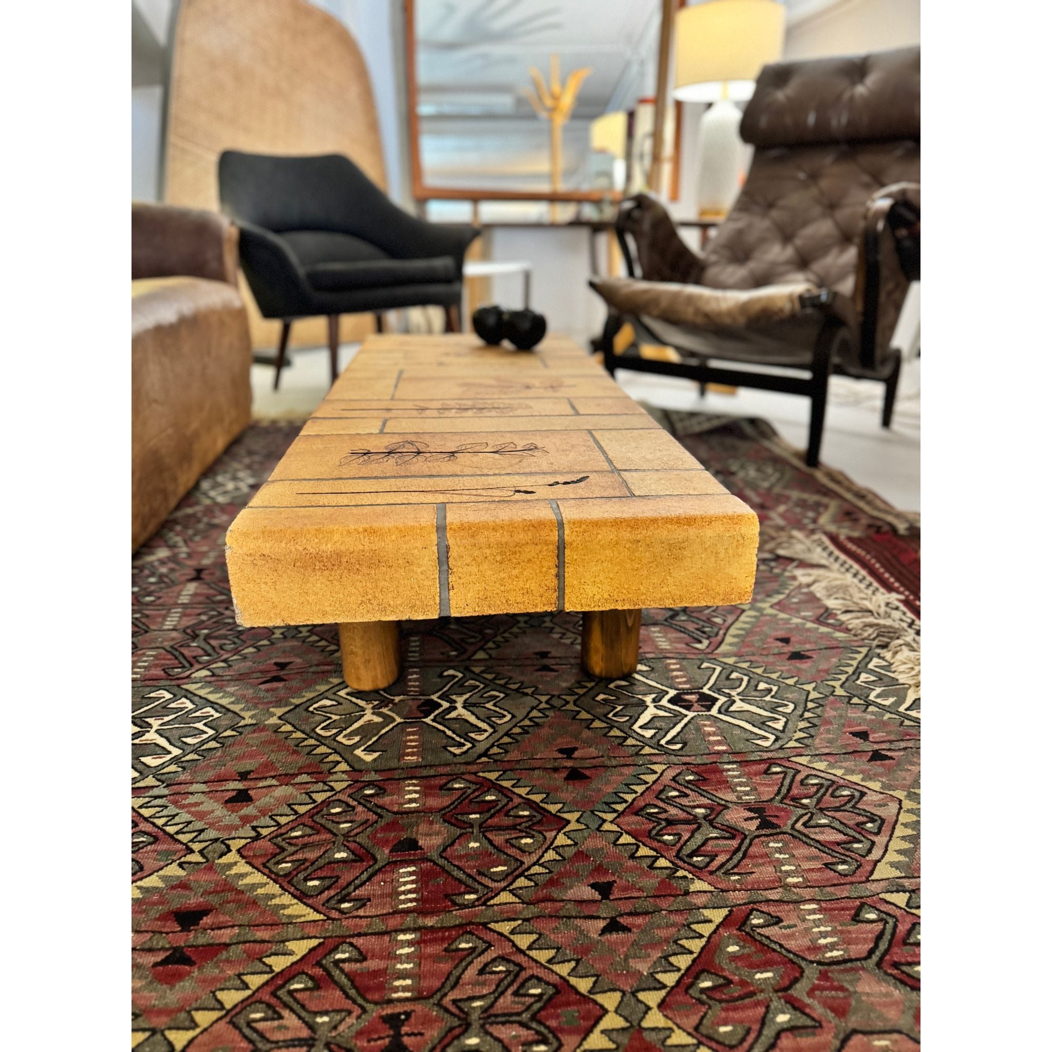 A rare and highly collectible piece of French mid-century design, this low coffee table by Roger Capron showcases the master ceramicist’s signature style, blending artistry with function.