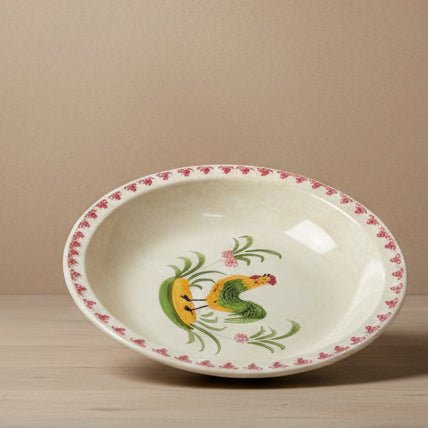 Authentic vintage French earthenware rooster plate by Moulin Des Loups & Hamage. Timeless ceramic craftsmanship with rustic charm, perfect for collectors of antique French pottery.