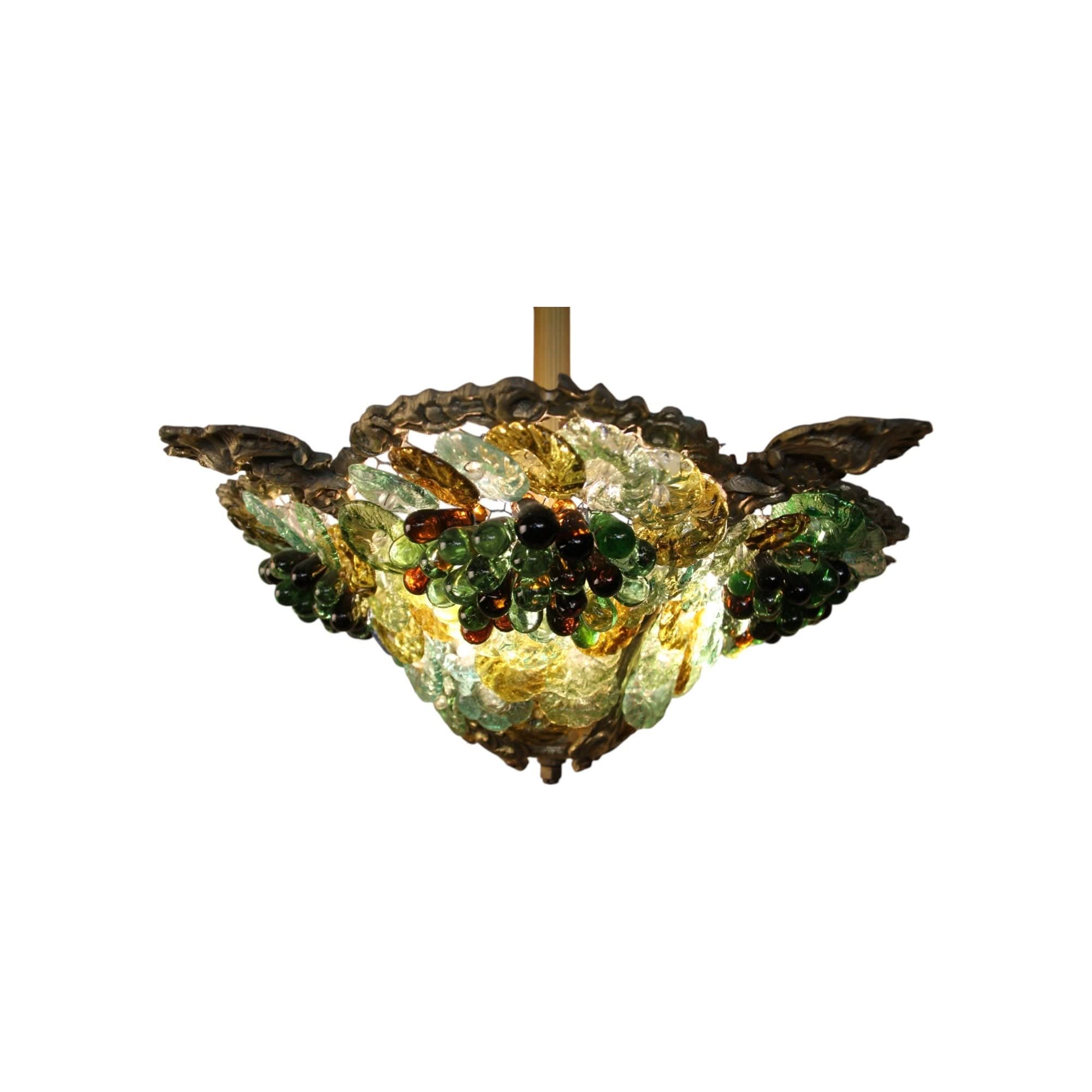 Art Nouveau Brass and Murano Grape Pendant chandelier. This piece dates back to 1920 and will become a statement piece in your home and will offer elevation to any space. Rewired to comply with Australian standards.