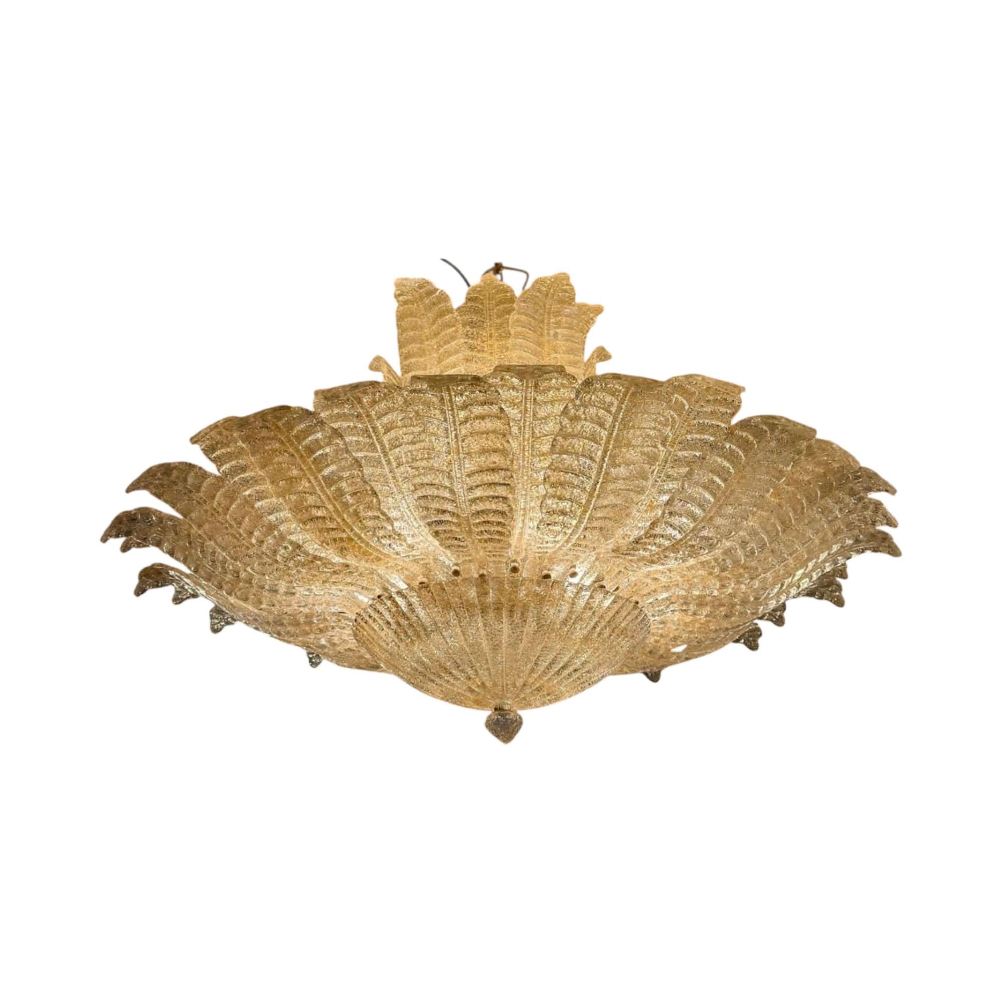 Galvanised gold finish Murano glass ceiling lamp with precious leaves.