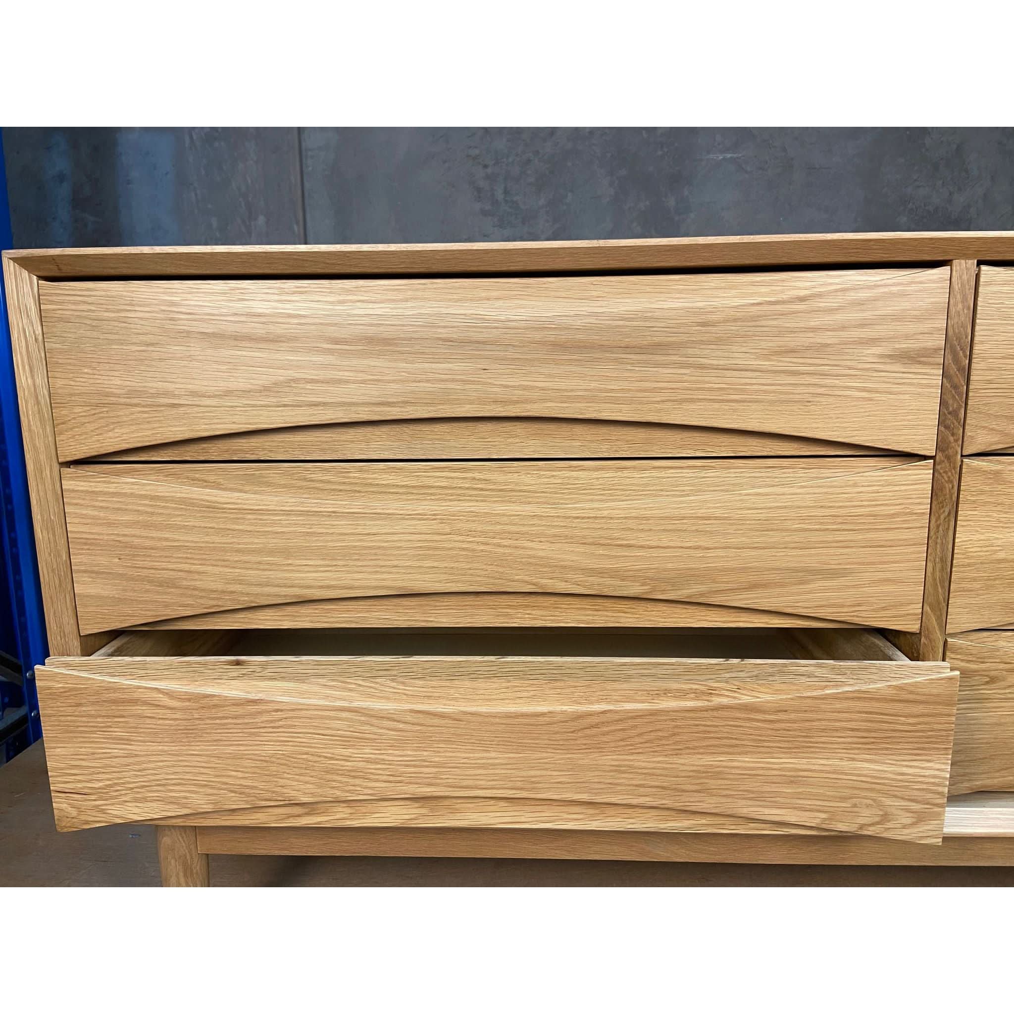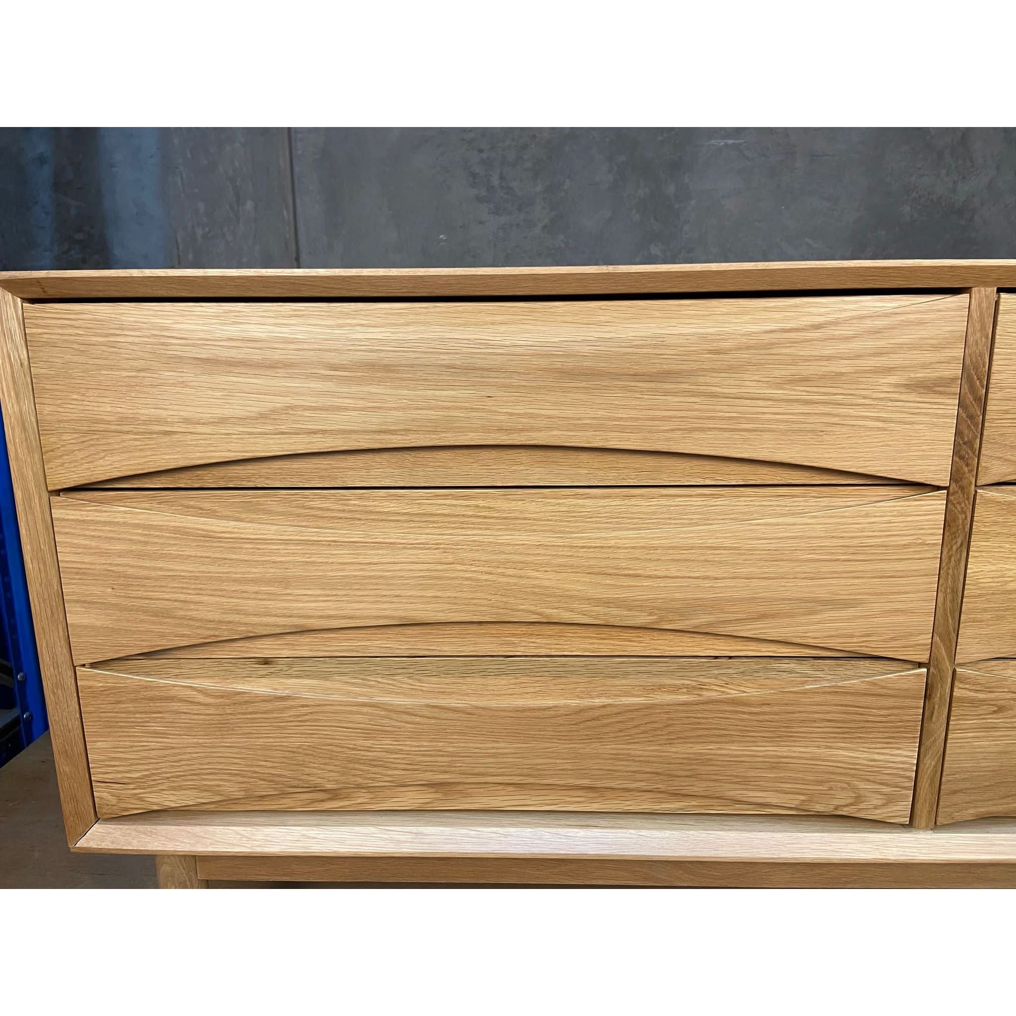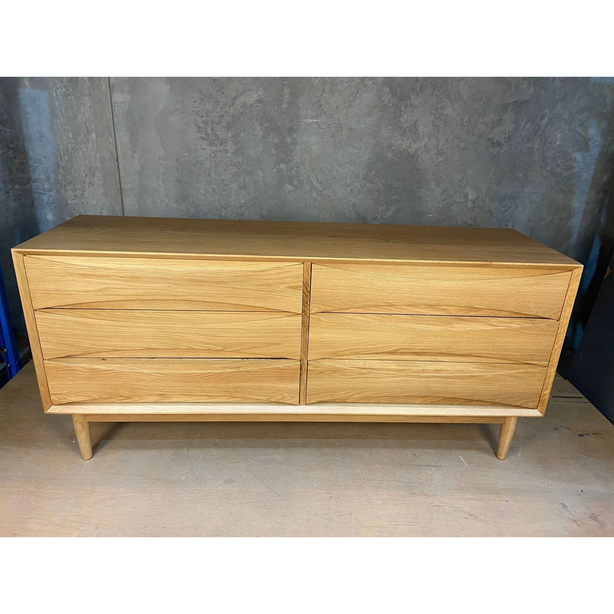 This solid American Oak chest which provides ample storage draws on elements of classic Nordic design. The refined minimalism combined with geometric detail creates an artful statement piece for any living or bedroom space.